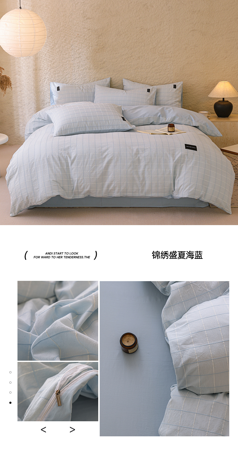 商品名称:呗旺鹿 2025新款静奢风-锦绣系列全棉色织提花小方格四件套 锦绣盛夏海蓝