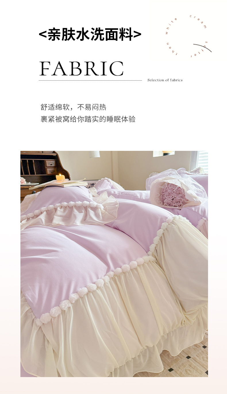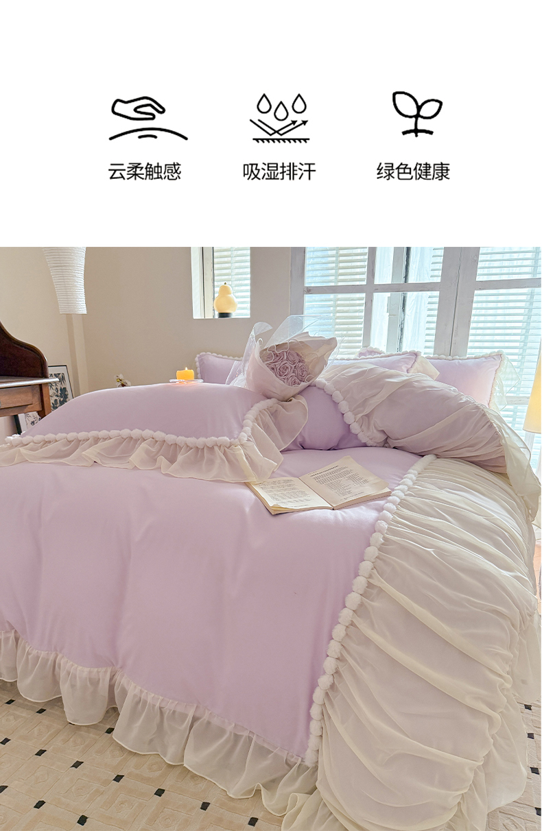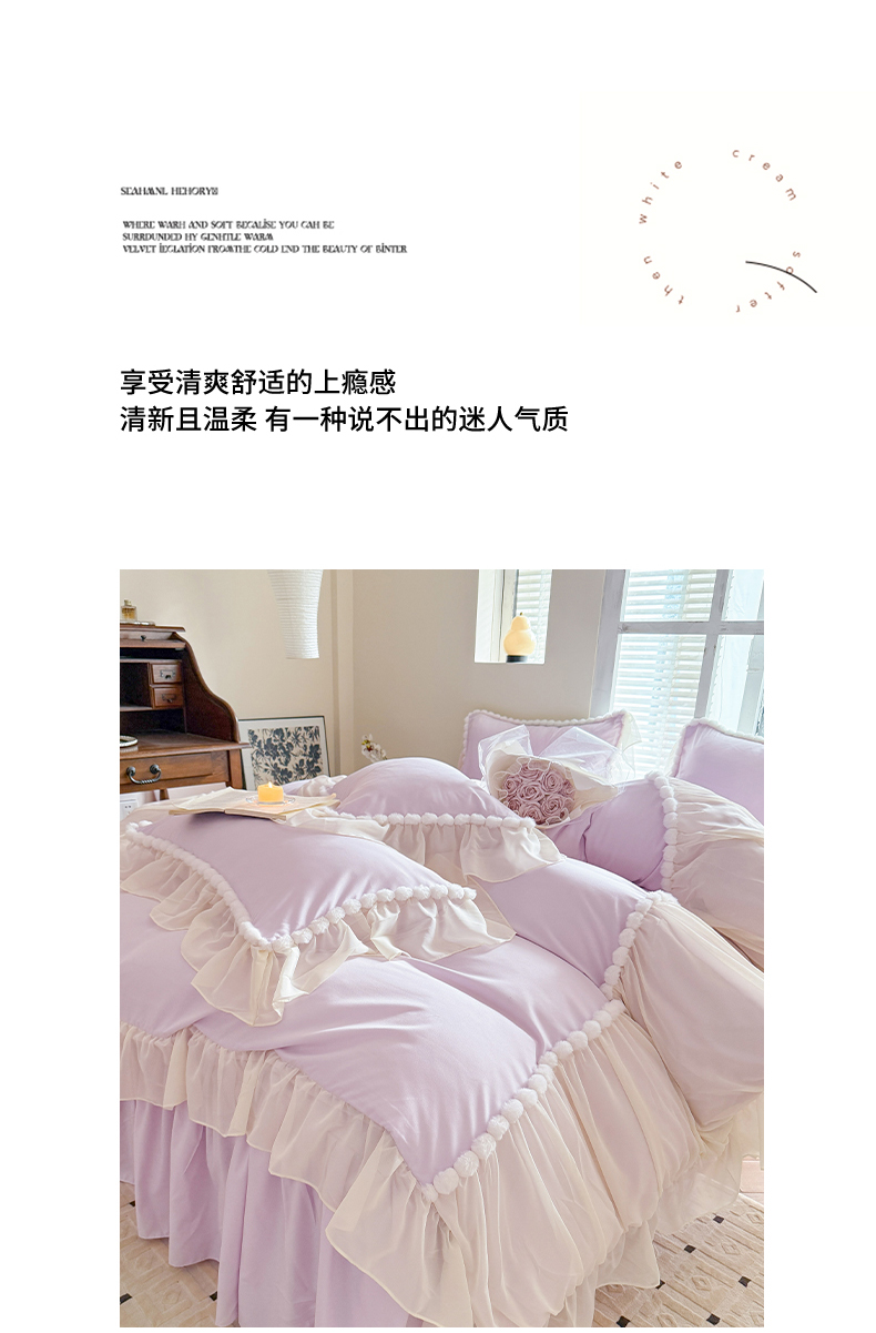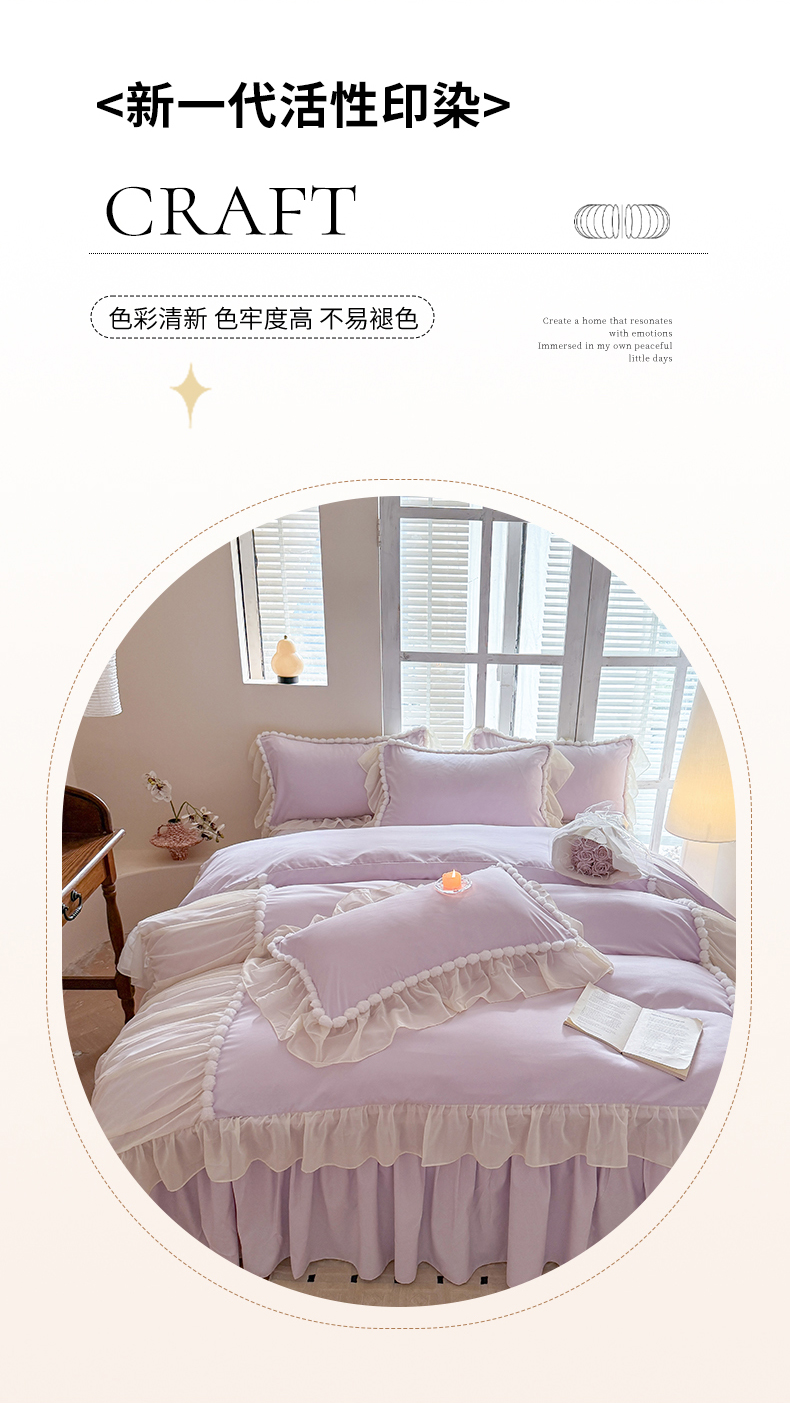 当前位置: 91家纺网 > 商品网购 > 床品套件 > 四件套 > 水洗棉四件套 > 富盛家纺 2025新款水洗亲肤棉床裙款四件套公主风四件套 仙仙子—紫