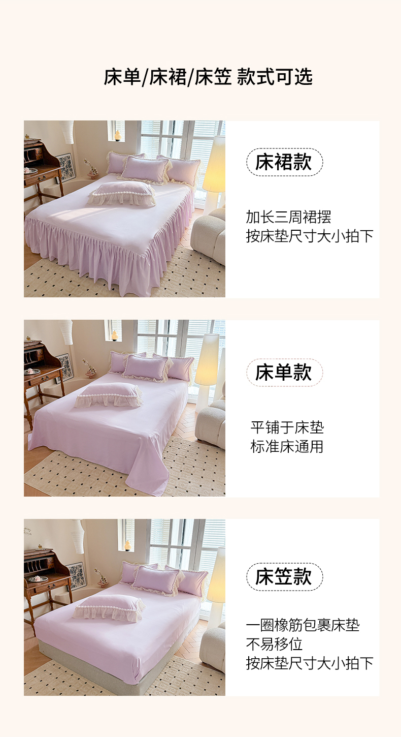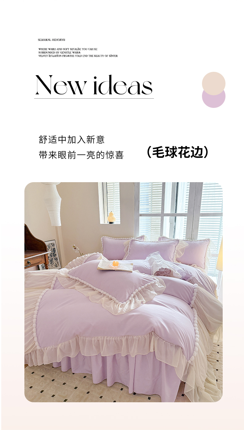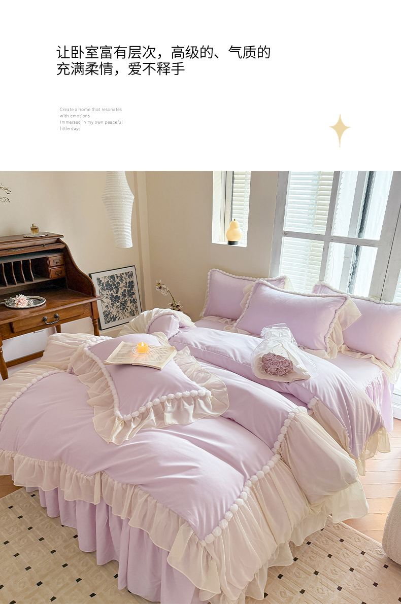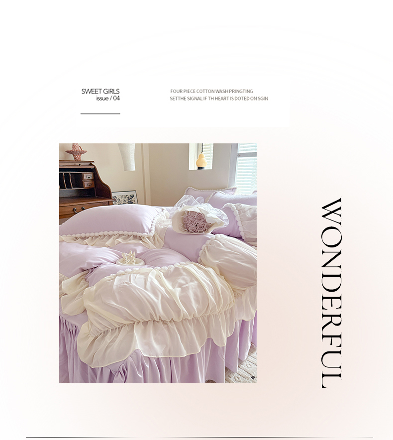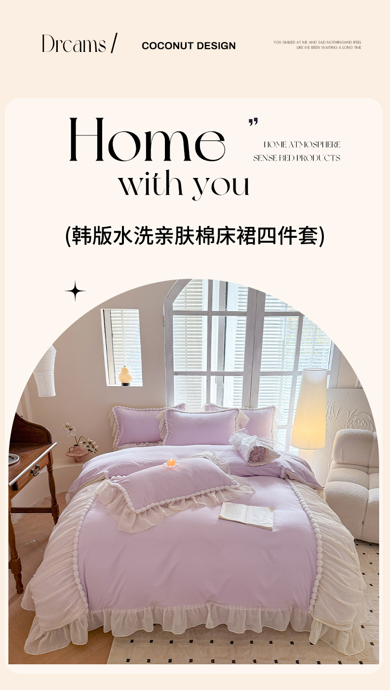当前位置: 91家纺网 > 商品网购 > 床品套件 > 四件套 > 水洗棉四件套 > 富盛家纺 2025新款水洗亲肤棉床裙款四件套公主风四件套 仙仙子—紫