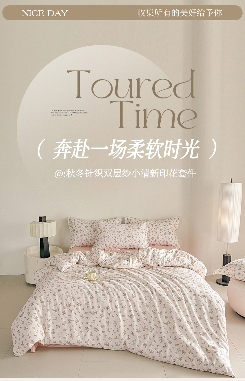 商品名称:壹号库 2025秋冬新款针织双层纱小清新印花四件套(专版花型) 枕边童话