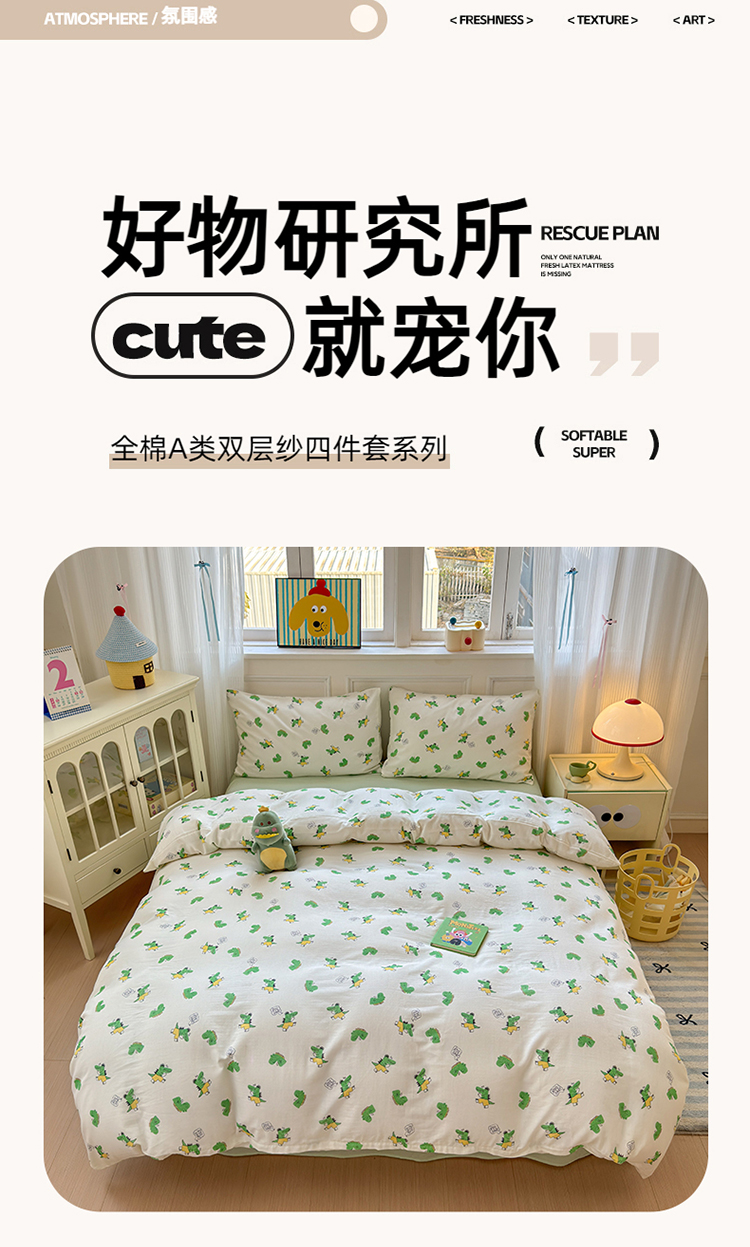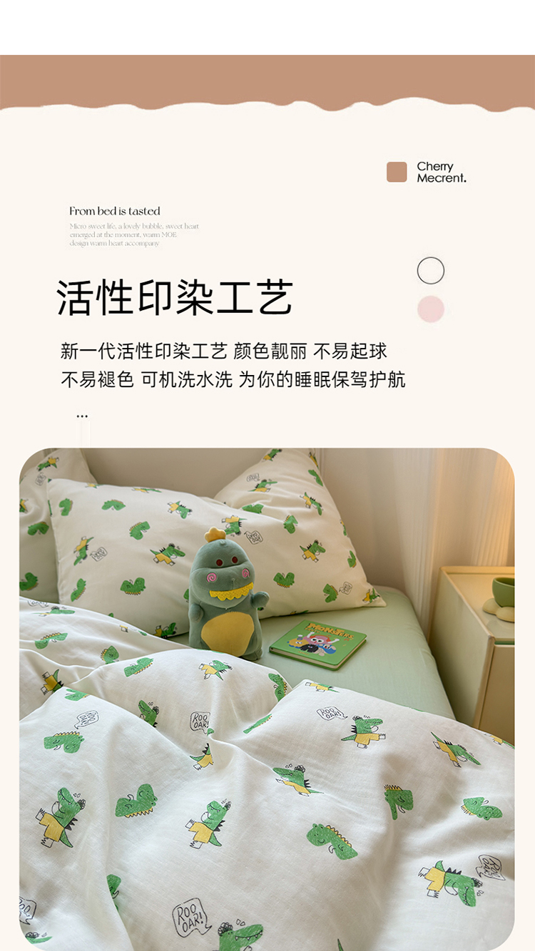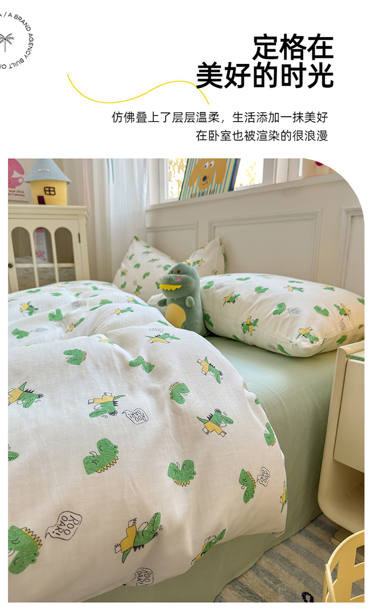商品名称:2025新款全棉A类双层纱四件套系列-叠拍 酷酷龙