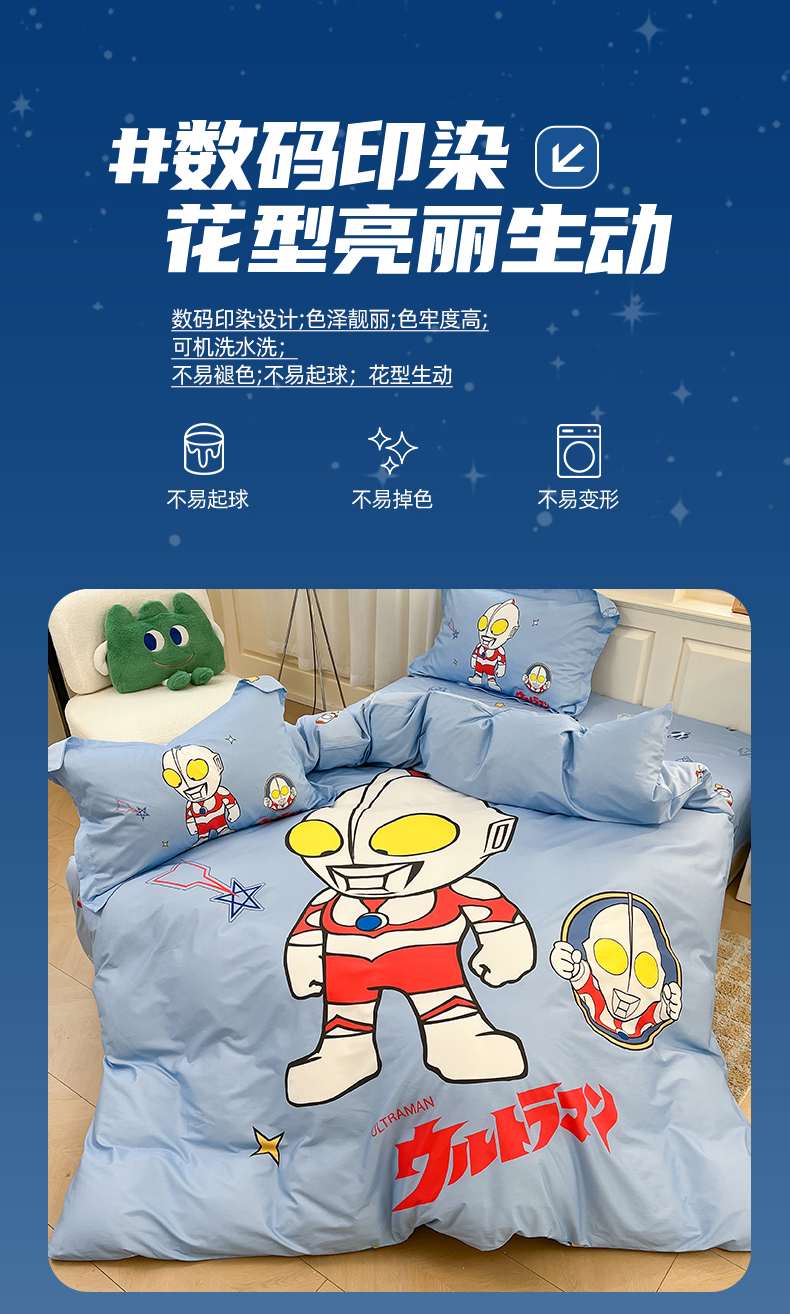 当前位置: 91家纺网 > 商品网购 > 床品套件 > 四件套 > 全棉普通四件套 > 蘭菲家纺 2025新款奥特曼全棉四件套 成功