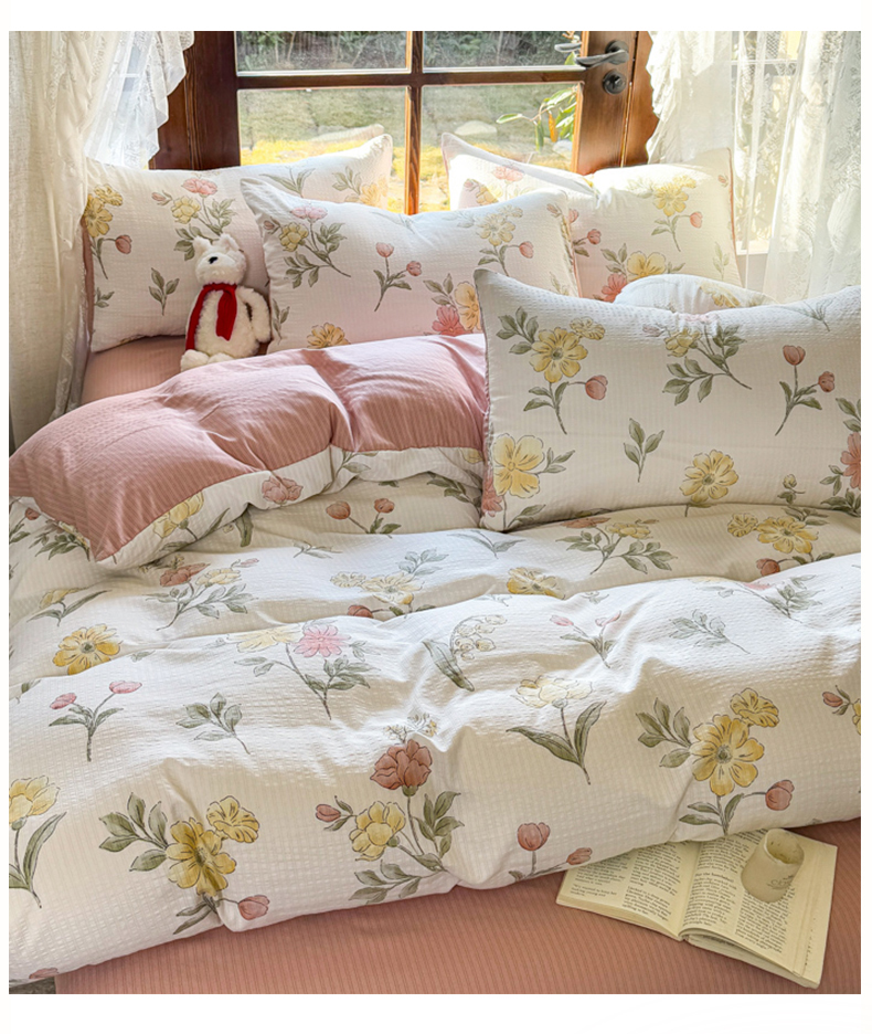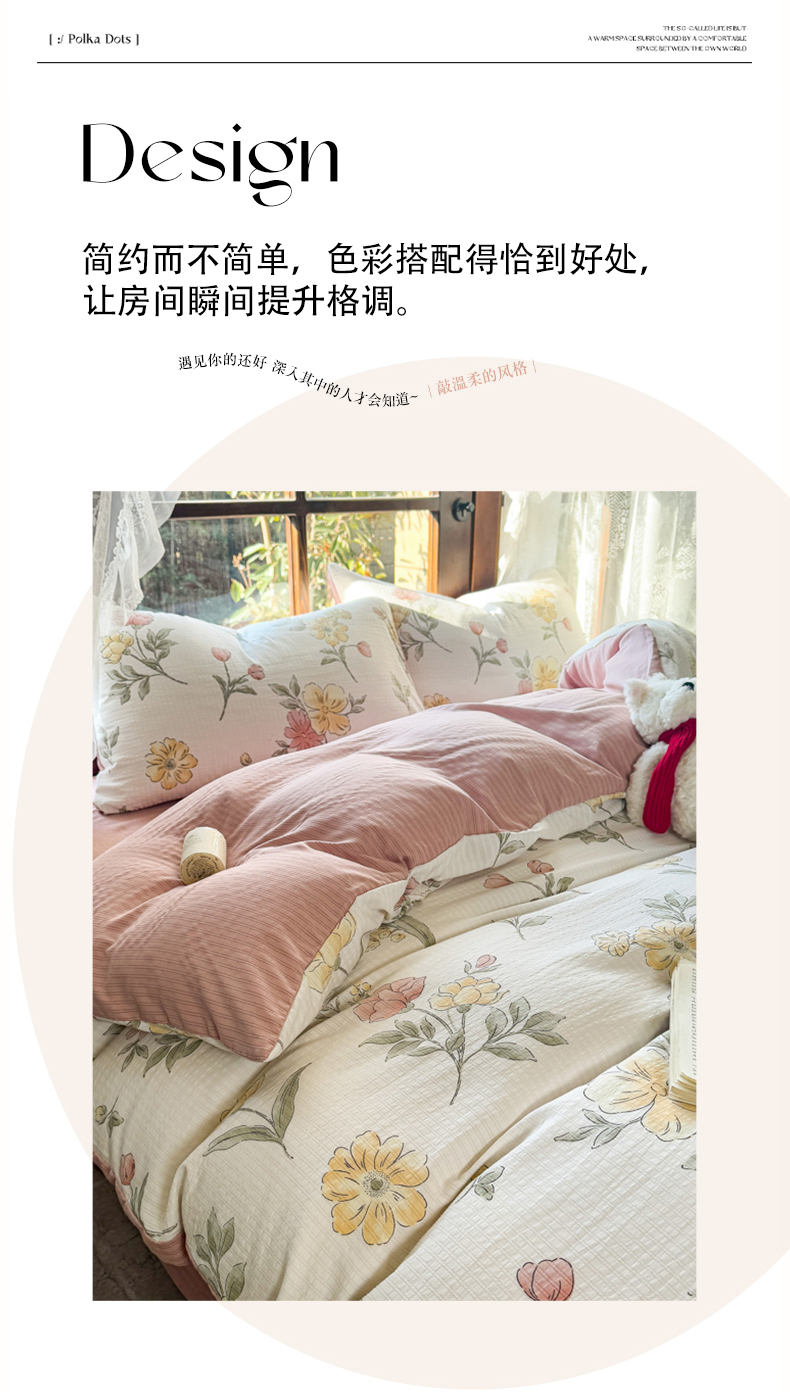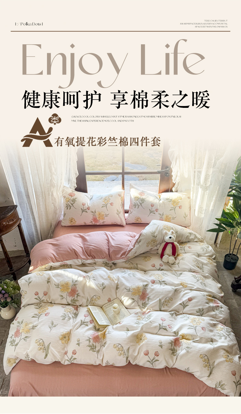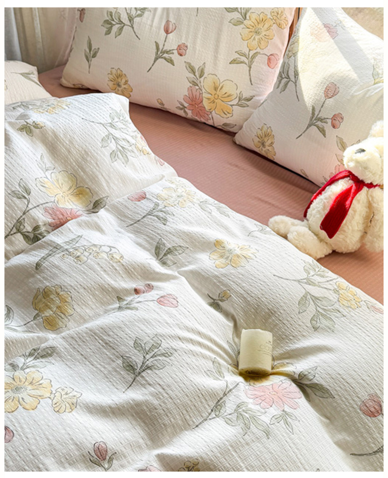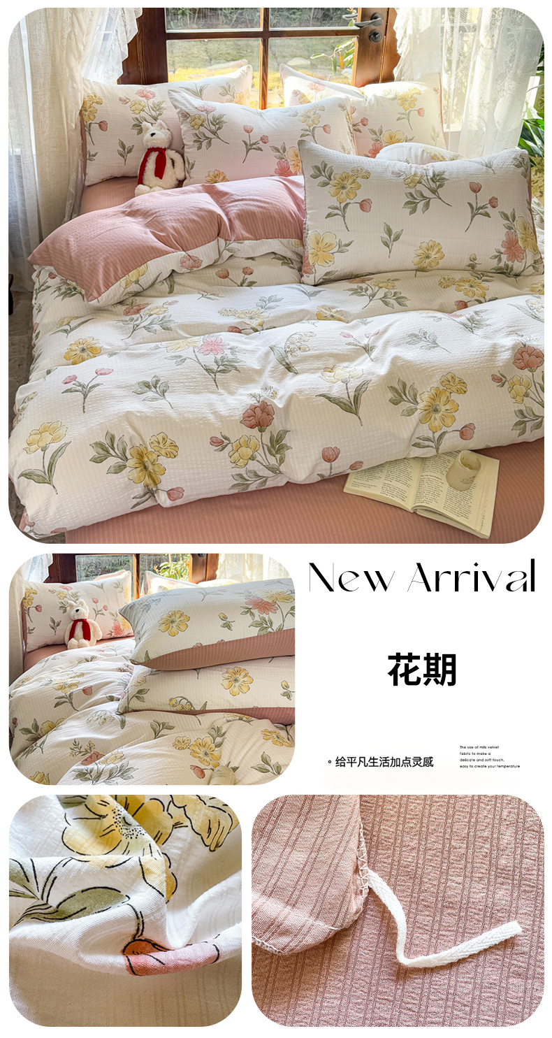 当前位置: 91家纺网 > 商品网购 > 床品套件 > 四件套 > 其它四件套 > 晚爱家纺(原晚安家居) 2025新款A类双层纱有氧提花彩竺棉小竺棉四件套 花期