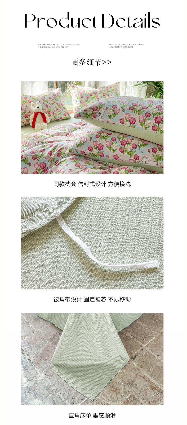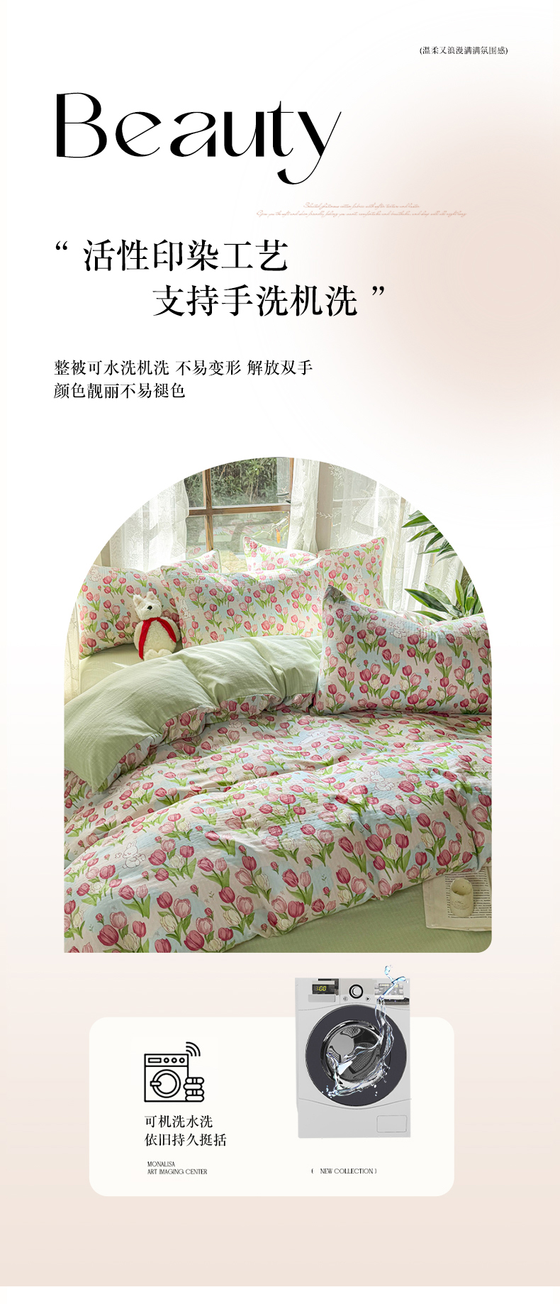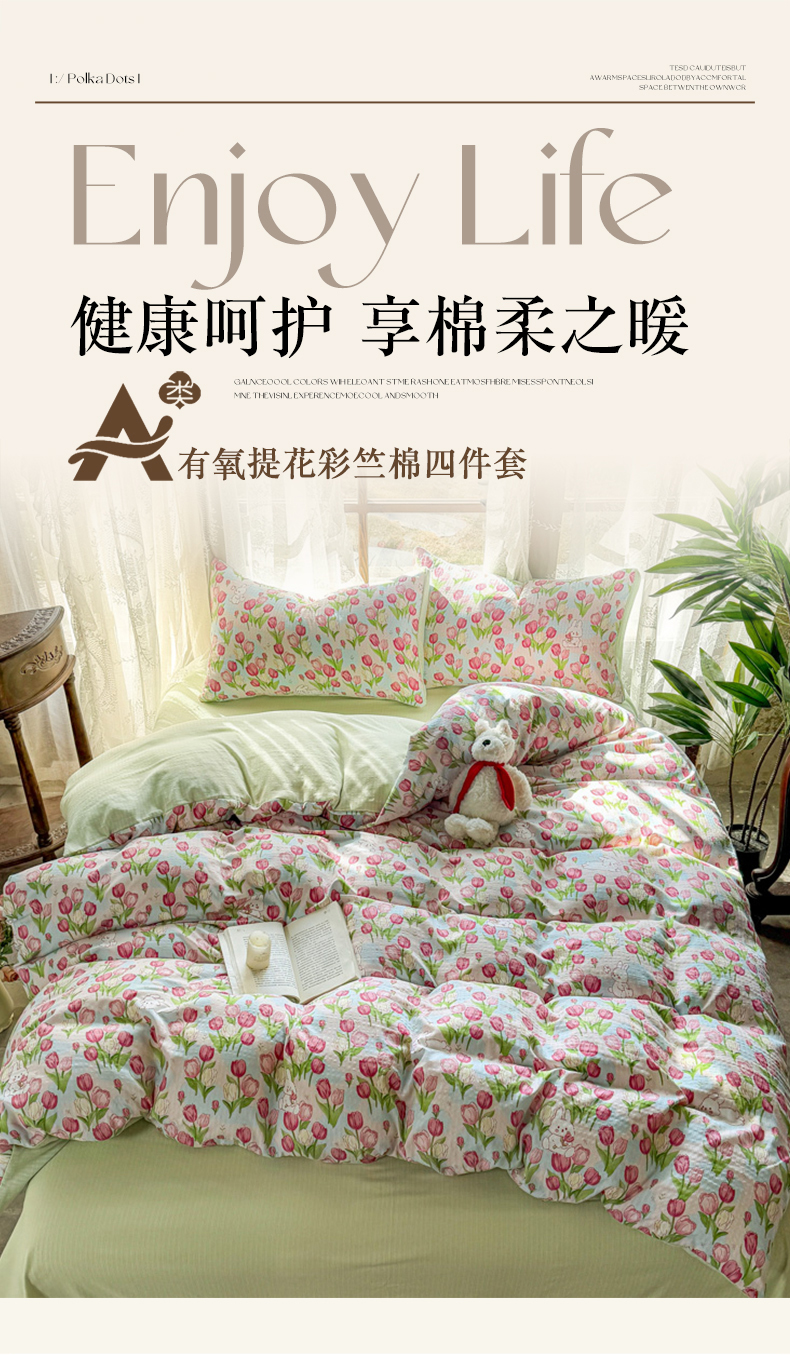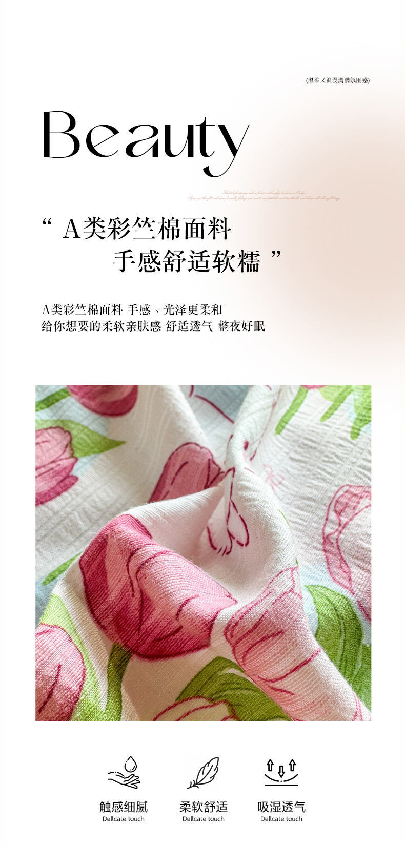 当前位置: 91家纺网 > 商品网购 > 床品套件 > 四件套 > 其它四件套 > 晚爱家纺(原晚安家居) 2025新款A类双层纱有氧提花彩竺棉小竺棉四件套 郁金香