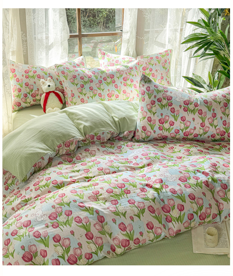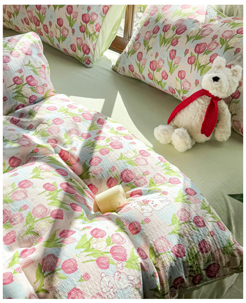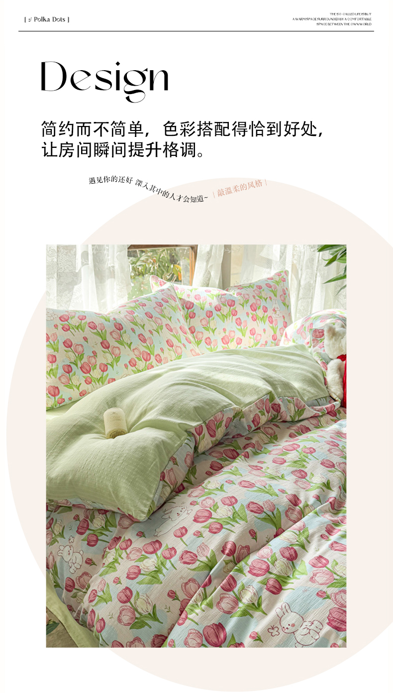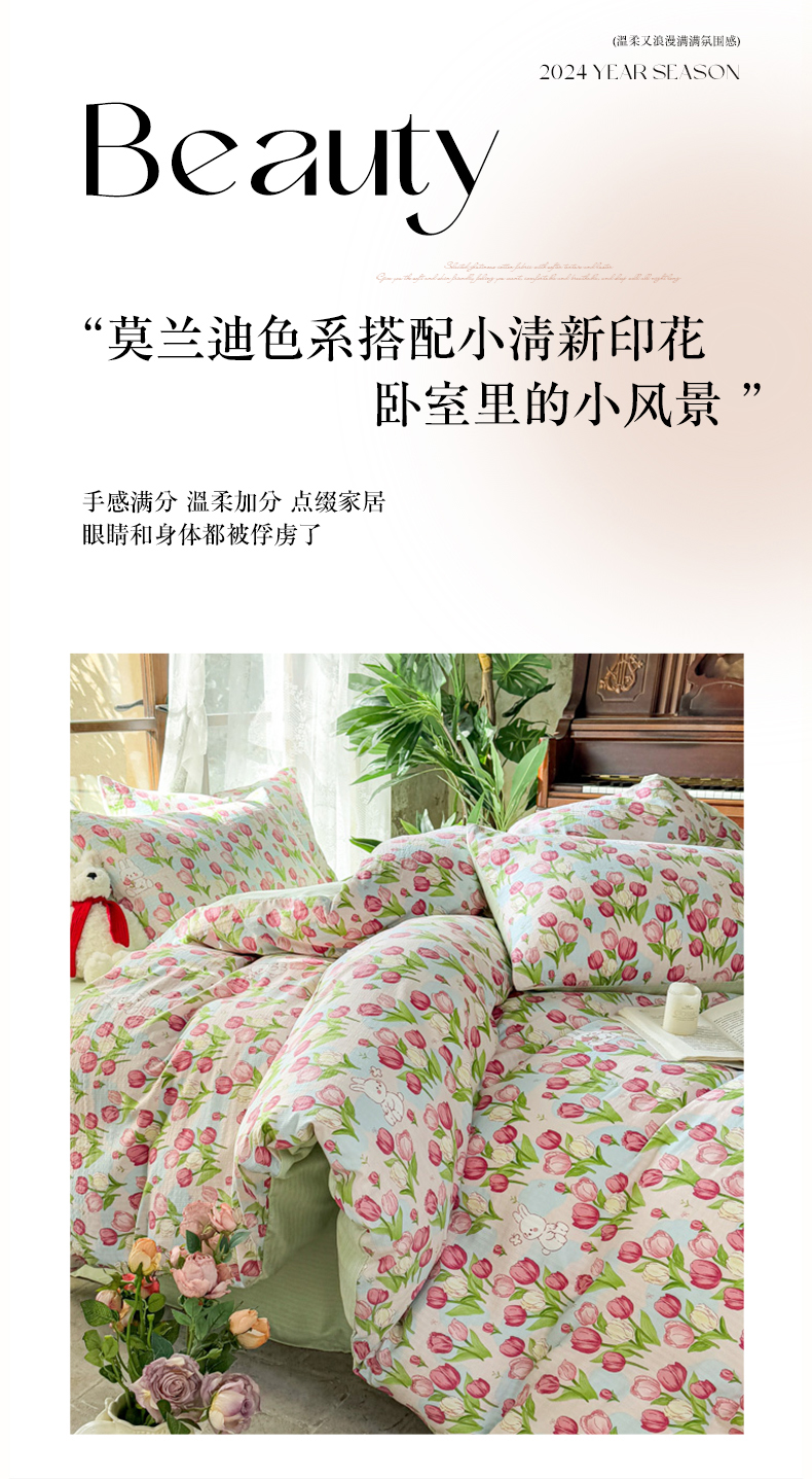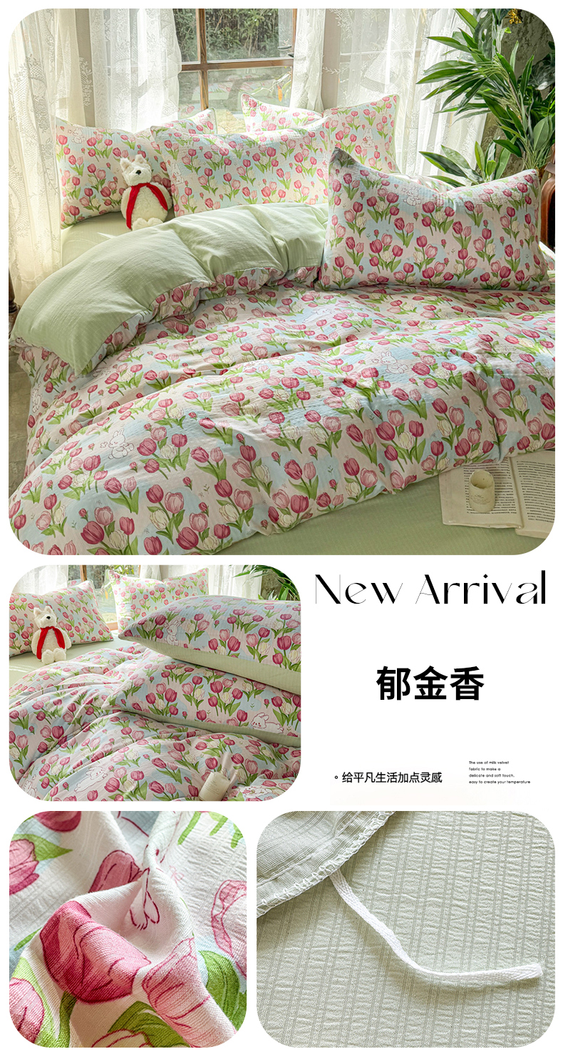 当前位置: 91家纺网 > 商品网购 > 床品套件 > 四件套 > 其它四件套 > 晚爱家纺(原晚安家居) 2025新款A类双层纱有氧提花彩竺棉小竺棉四件套 郁金香