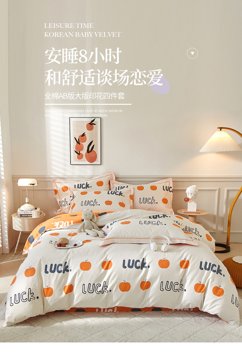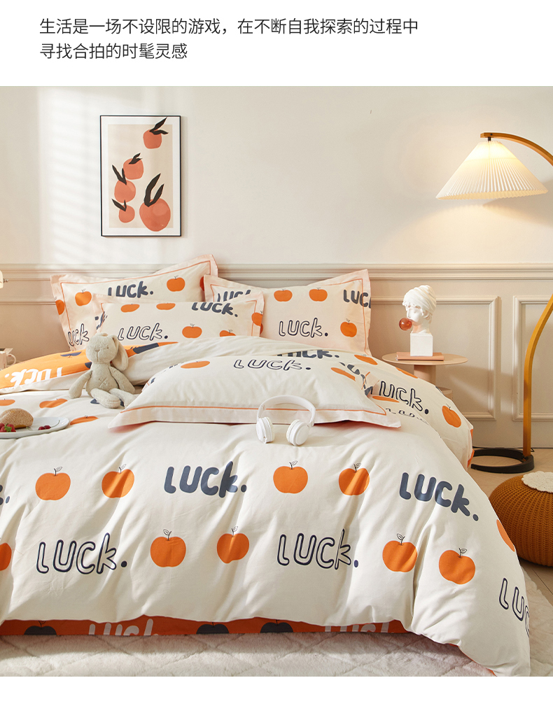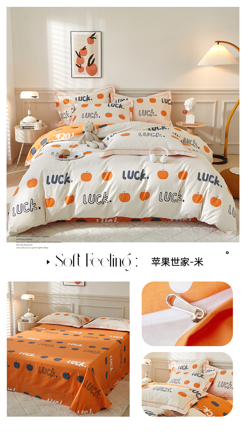 金纱玉纺家纺 2025新款全棉13376数码印花四件套(礼盒包装) 苹果世家-米
