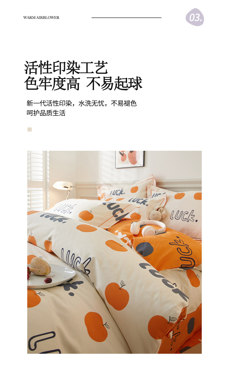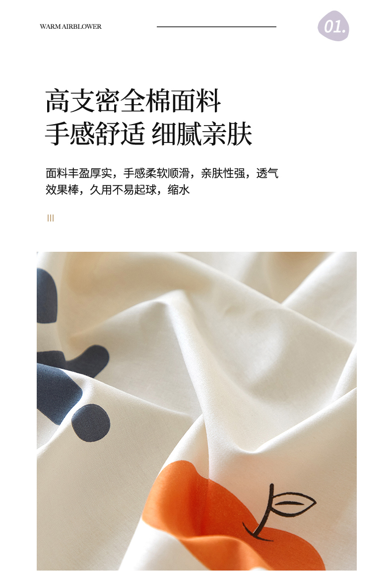 商品名称:金纱玉纺家纺 2025新款全棉13376数码印花四件套(礼盒包装) 苹果世家-米