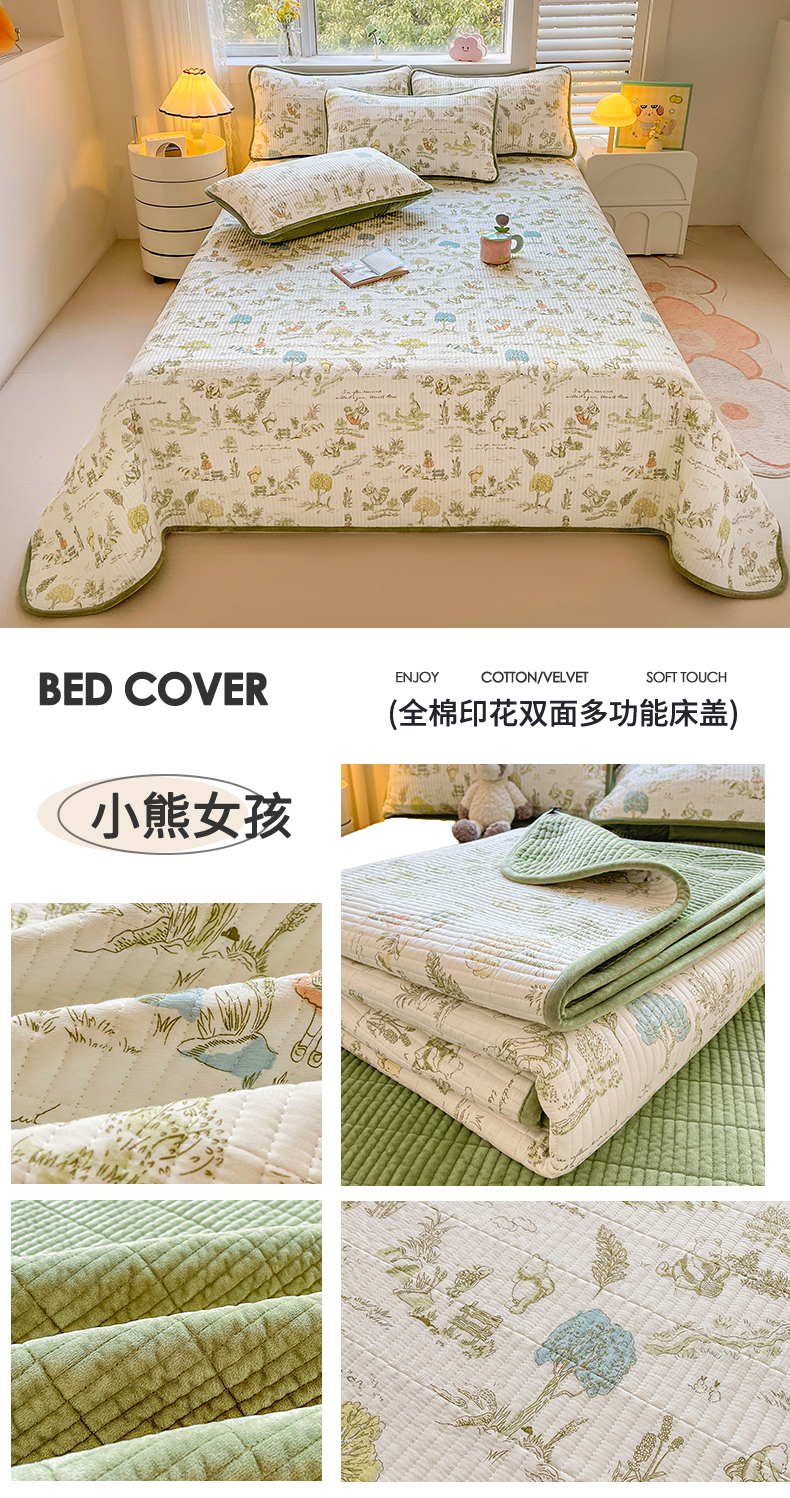 柔品 2025新款全棉印花双面多功能床盖 小熊女孩