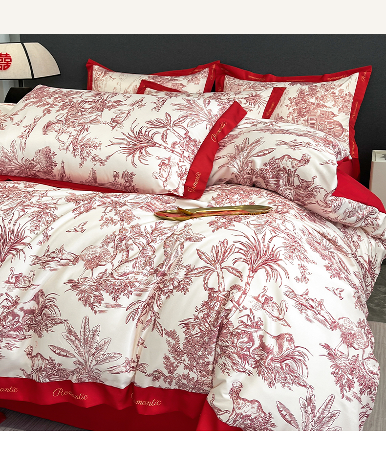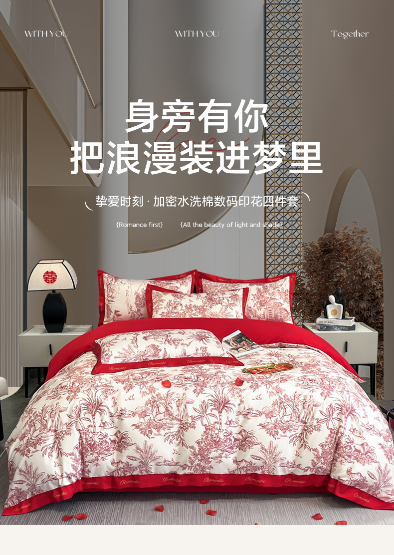 (总)花愿(原花纪) 2025新款水洗棉数码印花婚庆款四件套