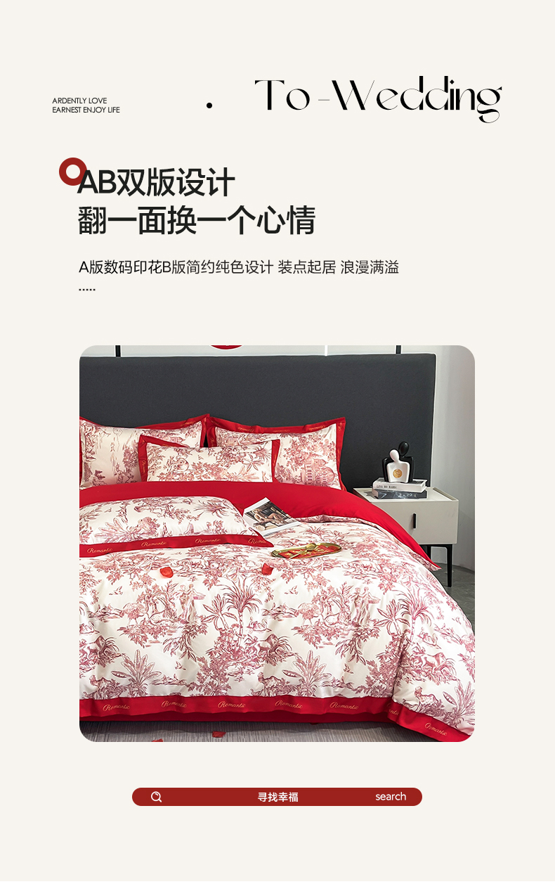 (总)花愿(原花纪) 2025新款水洗棉刺绣婚庆四件套系列,丹枫迎喜,欢喜,良缘,龙凤欢喜,玫瑰之恋,美满,如意,天禧,唯一,喜爱,心心相印,幸福,永恒之恋,钟爱一生