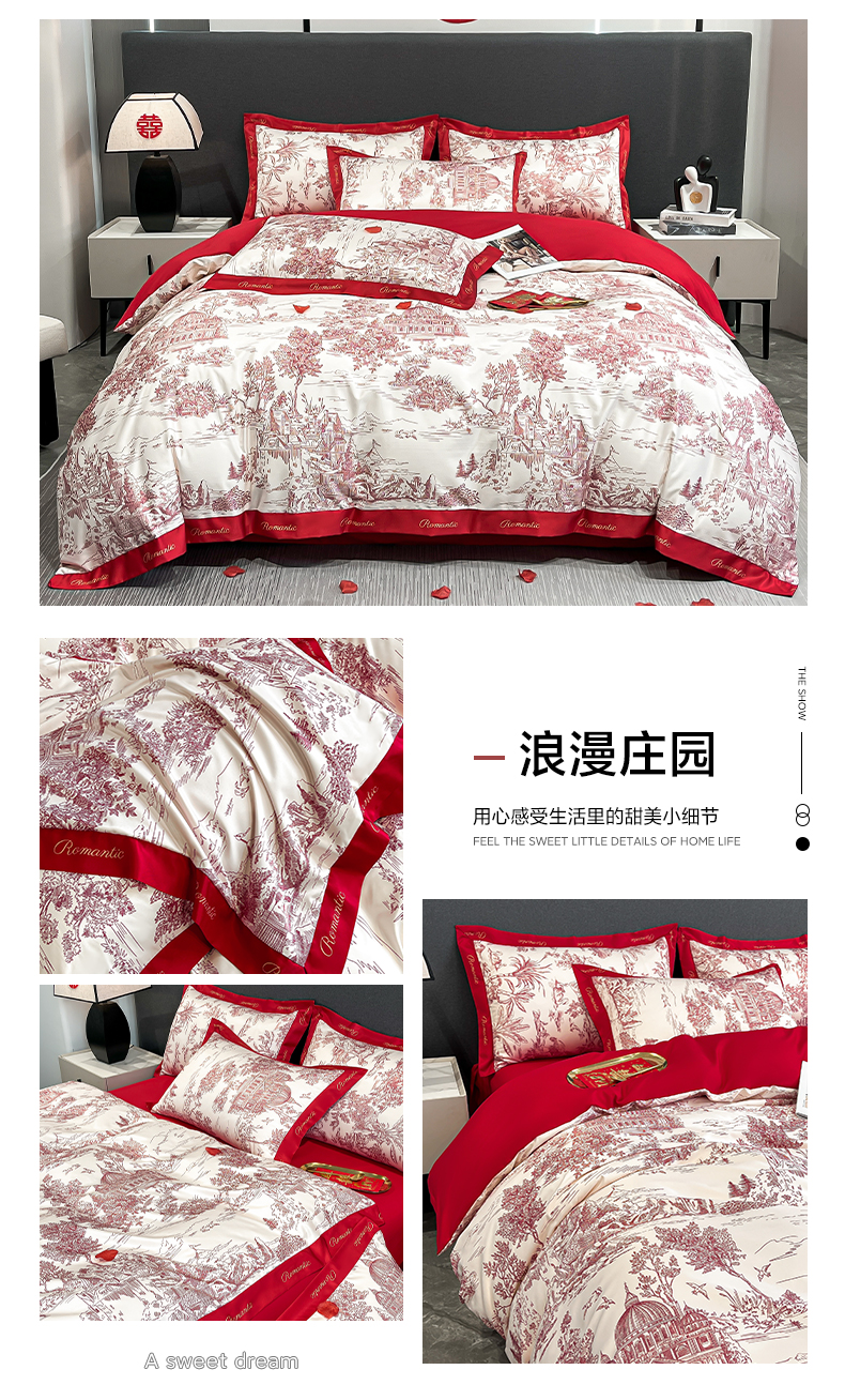 商品名称:(总)花愿(原花纪) 2025新款水洗棉数码印花婚庆款四件套