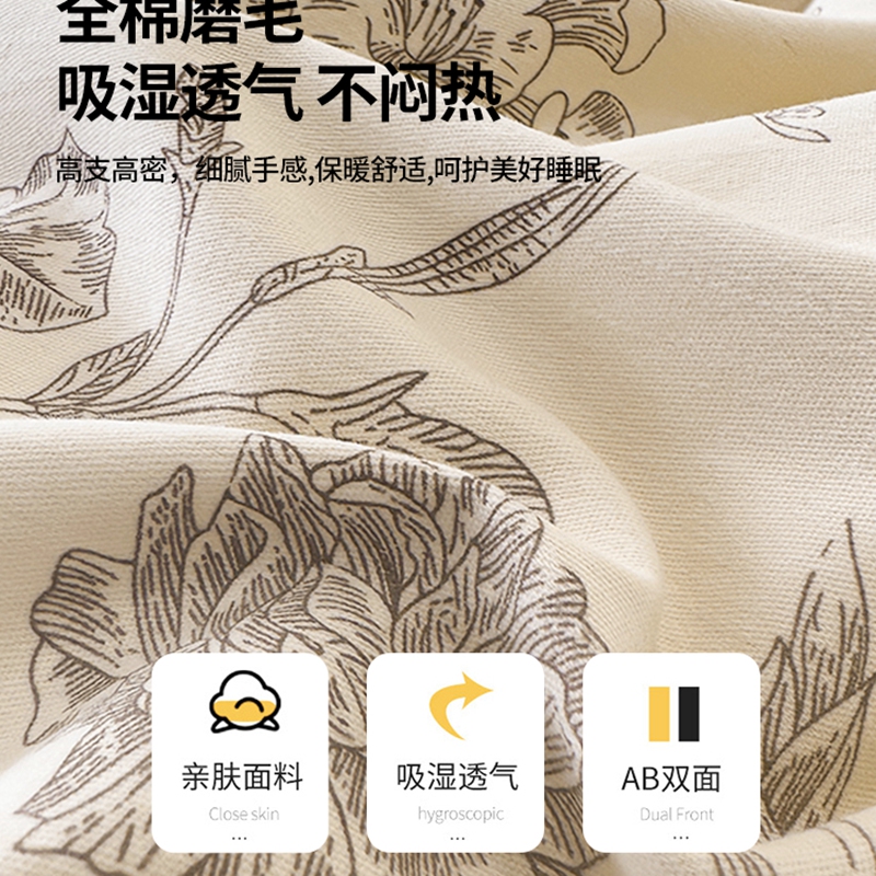 商品名称:(买家秀 爆款花色不断货)A类母婴级纯棉磨毛四件套简约纯棉全棉磨毛四件套纯棉四件套全棉四件套花卉磨毛 展示图