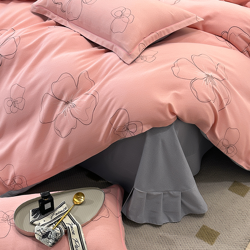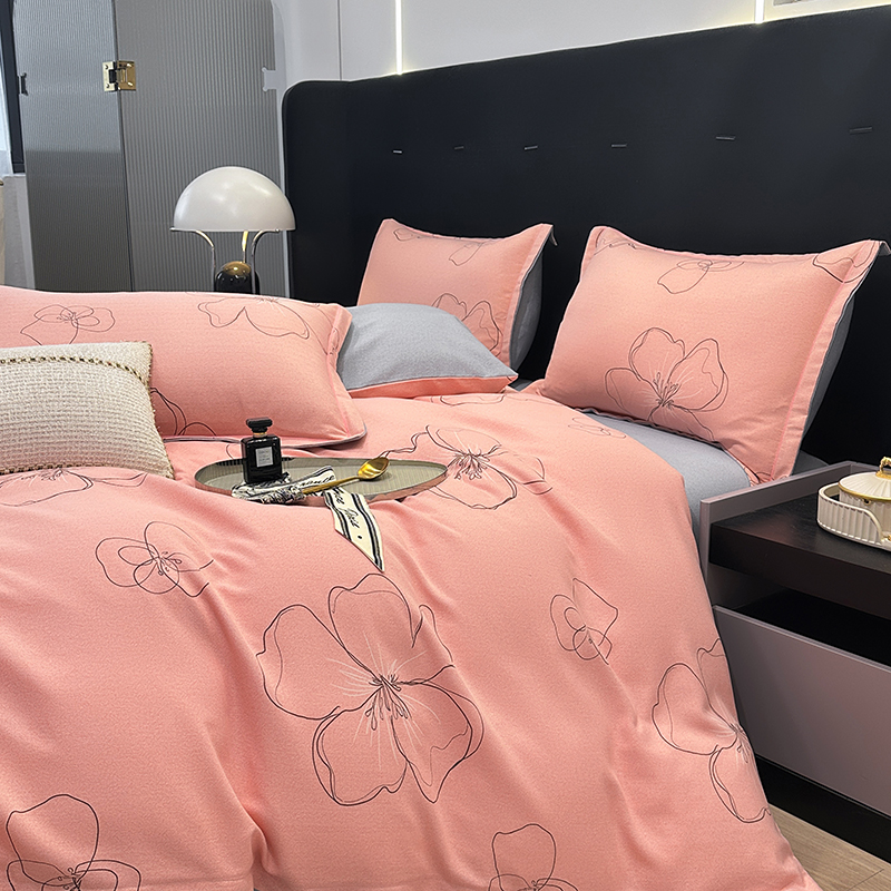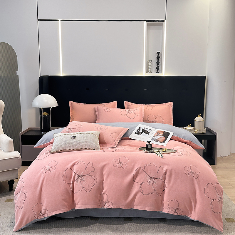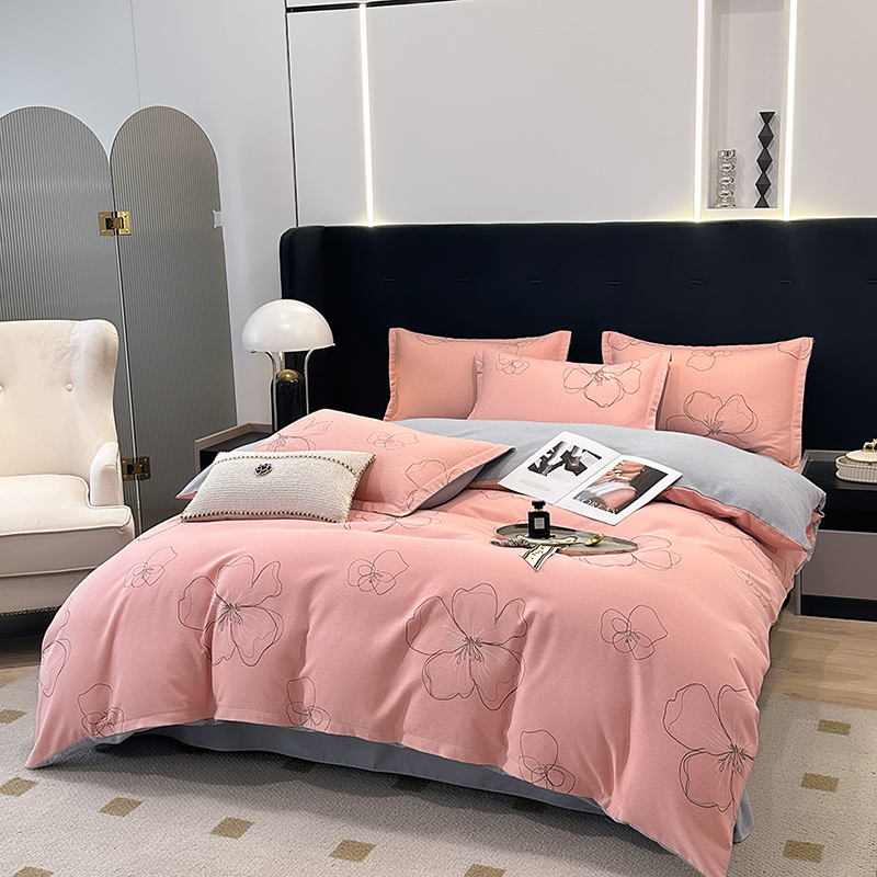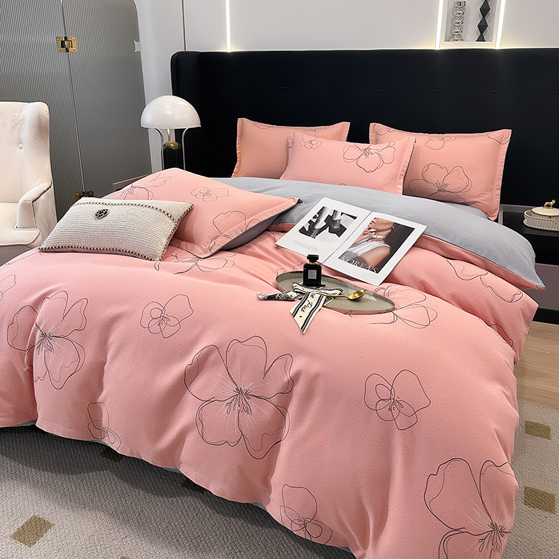 (买家秀 爆款花色不断货)A类母婴级纯棉磨毛四件套简约纯棉全棉磨毛四件套纯棉四件套全棉四件套花卉磨毛 预谋邂逅-粉