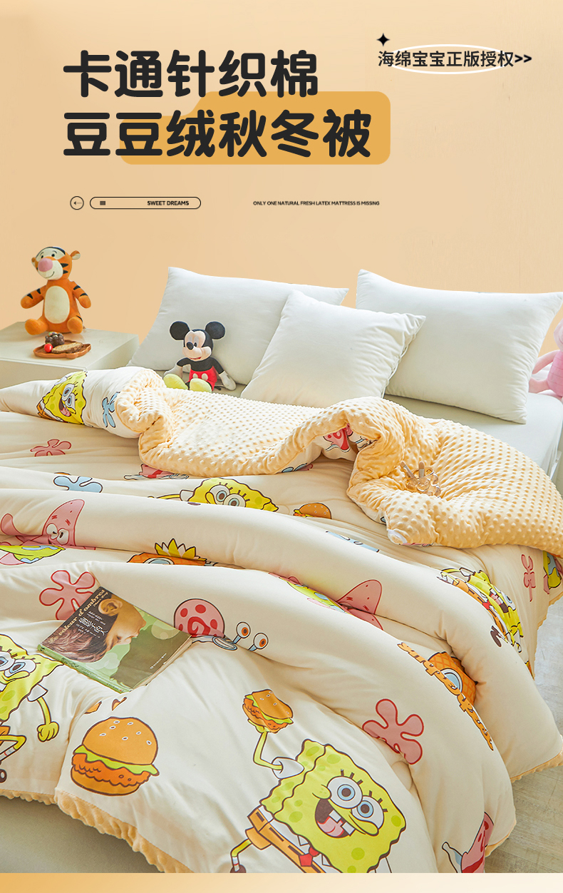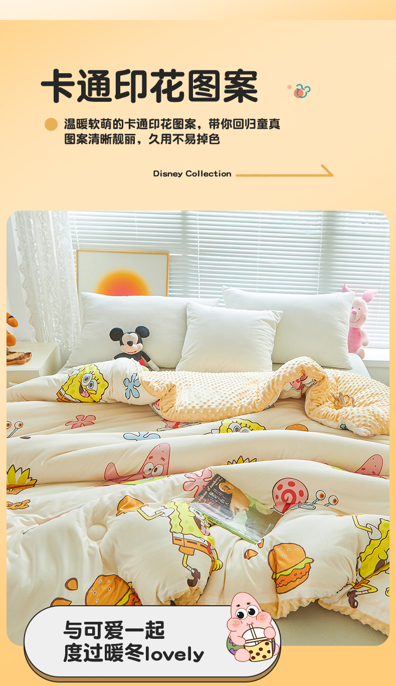• 91家纺网 家纺一手货源 找家纺 (买家秀 爆款花型长期款不断货)迪士尼豆豆被针织棉被子针织棉豆豆被迪士尼正版授权豆豆被春冬被-学生被 贪吃的派大星