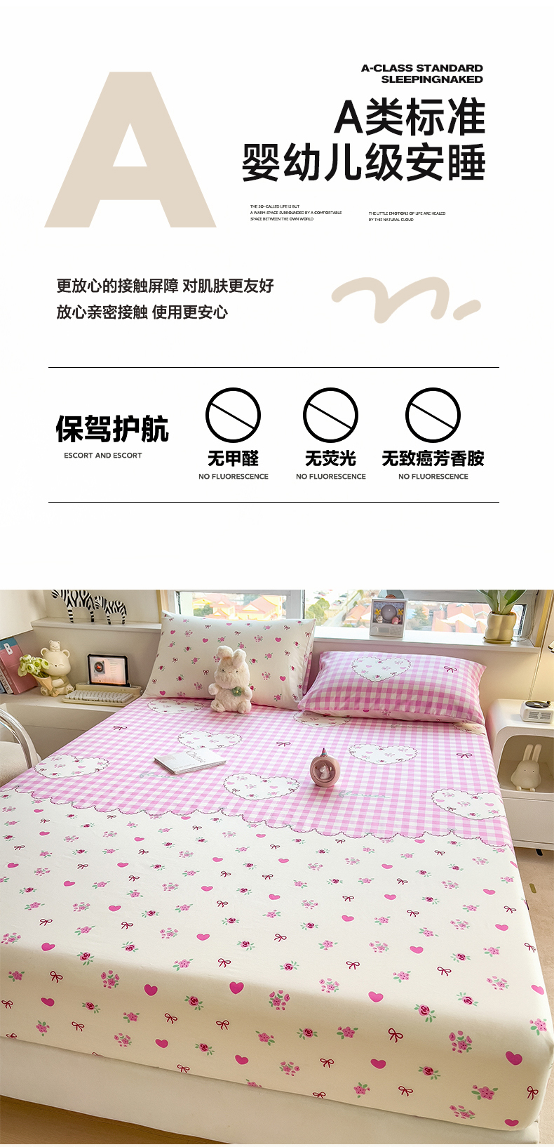 摩妮卡 2025新款A类裸睡级全棉印花床笠系列 花裙边