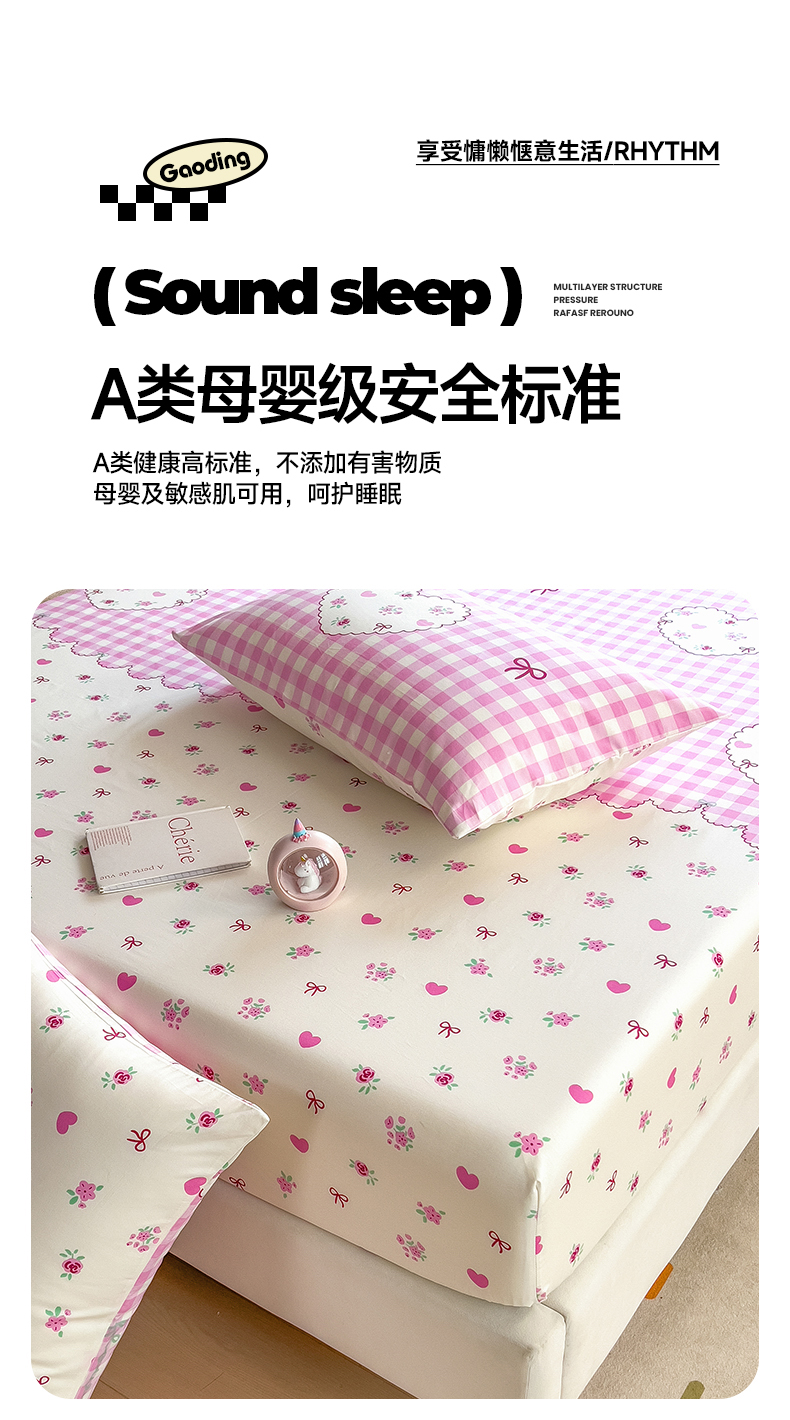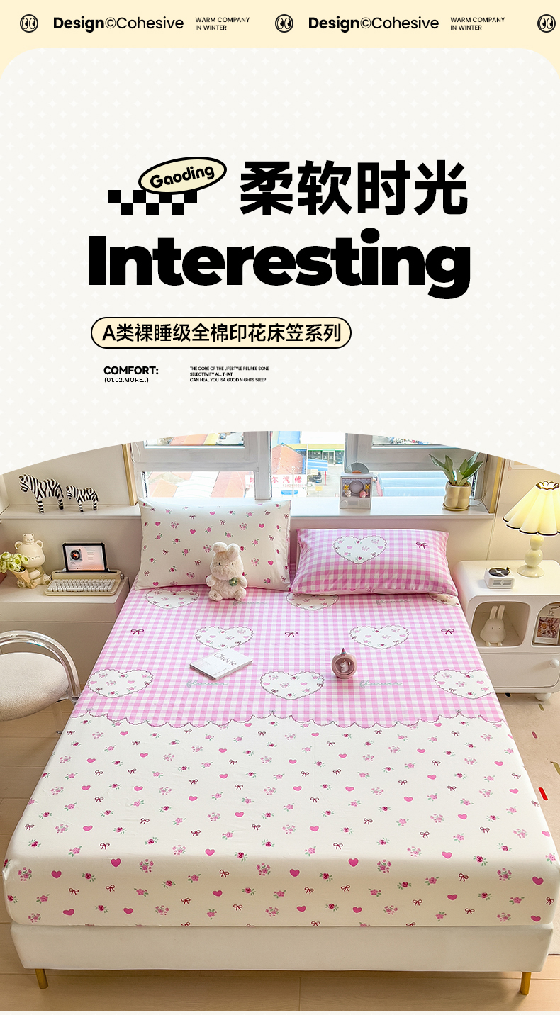 • 91家纺网 家纺一手货源 找家纺 摩妮卡 2025新款A类裸睡级全棉印花床笠系列 花裙边