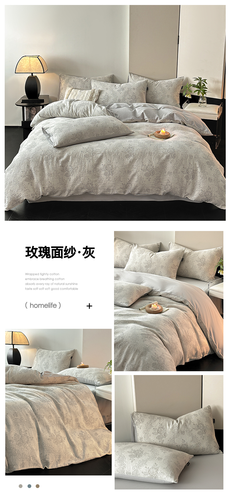 (总)(买家秀爆款花色不断货)纯棉磨毛四件套纯棉全棉磨毛四件套全棉三层纱磨毛四件套加厚磨毛A类大提花四件套