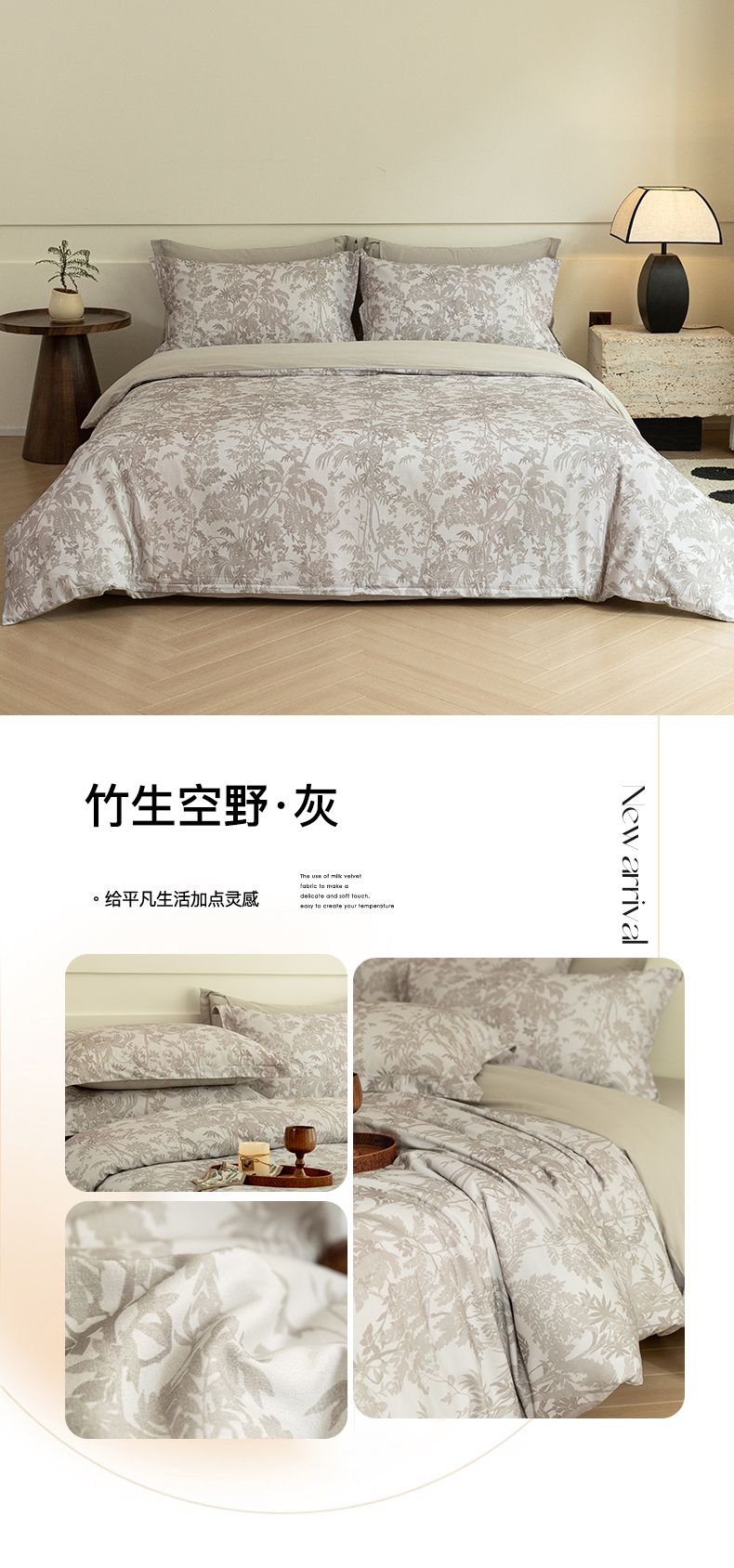 商品名称:(买家秀爆款花色不断货)A类母婴级纯棉磨毛四件套简约纯棉全棉磨毛四件套纯棉四件套全棉四件套磨毛三件套 竹生空野-灰
