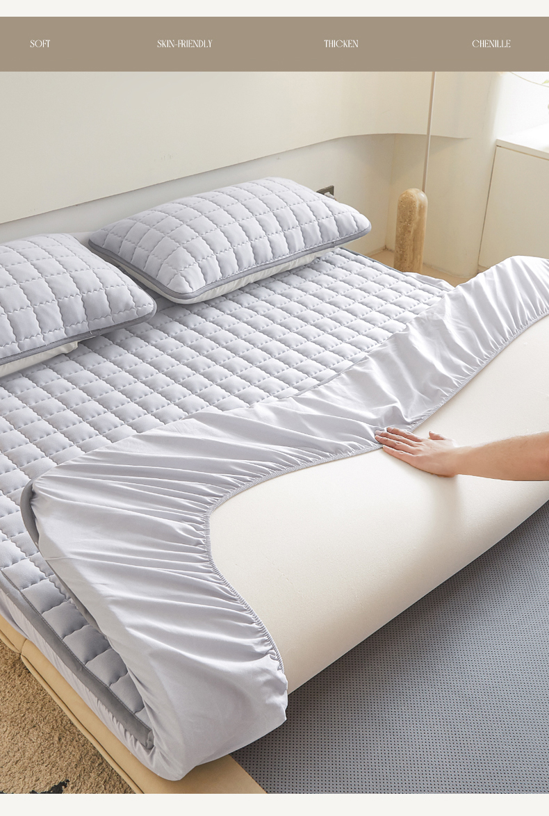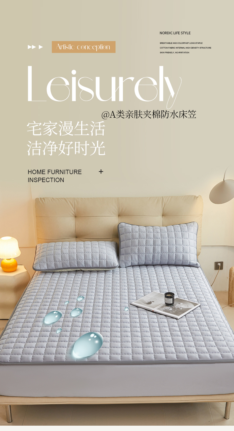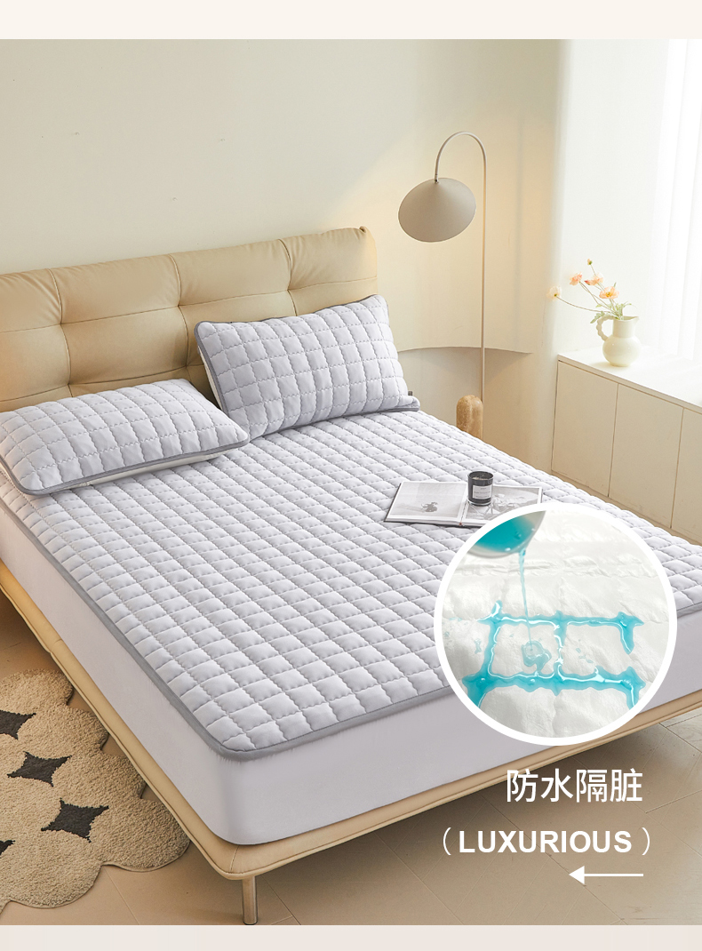 (买家秀长期款不断货)A类母婴级防水床笠防水隔尿床笠大豆夹棉床笠夹棉床垫子防水隔尿垫褥子单床笠 防水床笠-曲线格浅灰【A类隔尿防滑】