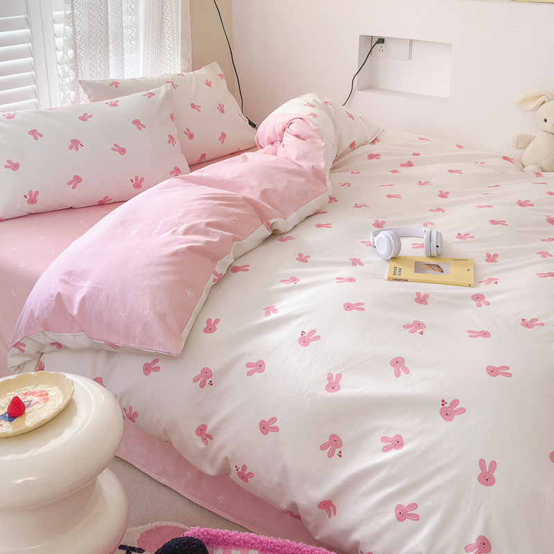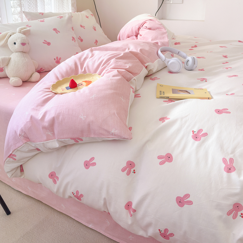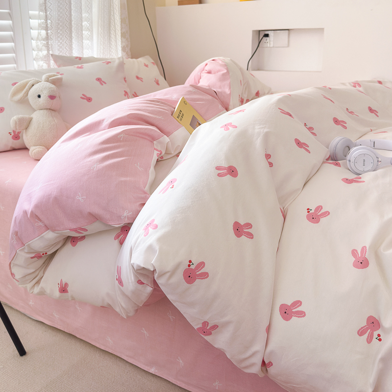 当前位置: 91家纺网 > 商品网购 > 床品套件 > 四件套 > 全棉普通四件套 > (买家秀爆款花型长期款不断货)A类母婴级13372纯棉四件套40支全棉四件套学生三件套宿舍萌趣卡通 甜甜兔
