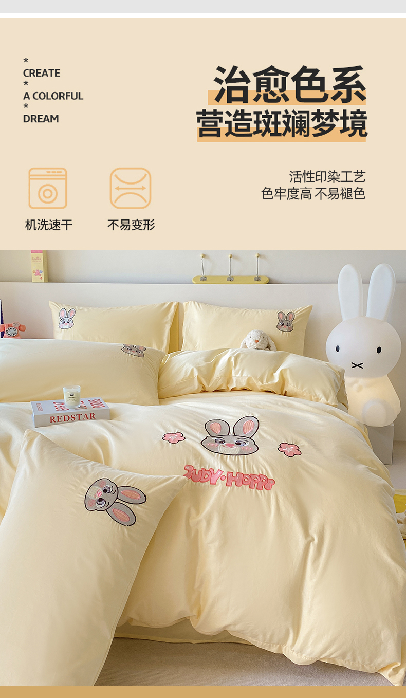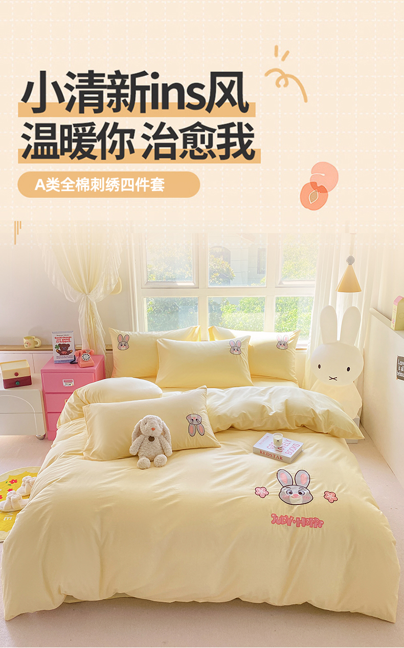 (总)买家秀热款花型不断货 母婴级A类ins风水洗棉四件套水洗棉毛巾绣四件套水洗棉床笠四件套提花绣花四件套,恐龙宝贝,花朵兔兔,面包小狗,奶油小甜甜,奶油芝士,兔伙伴,樱桃兔,优雅