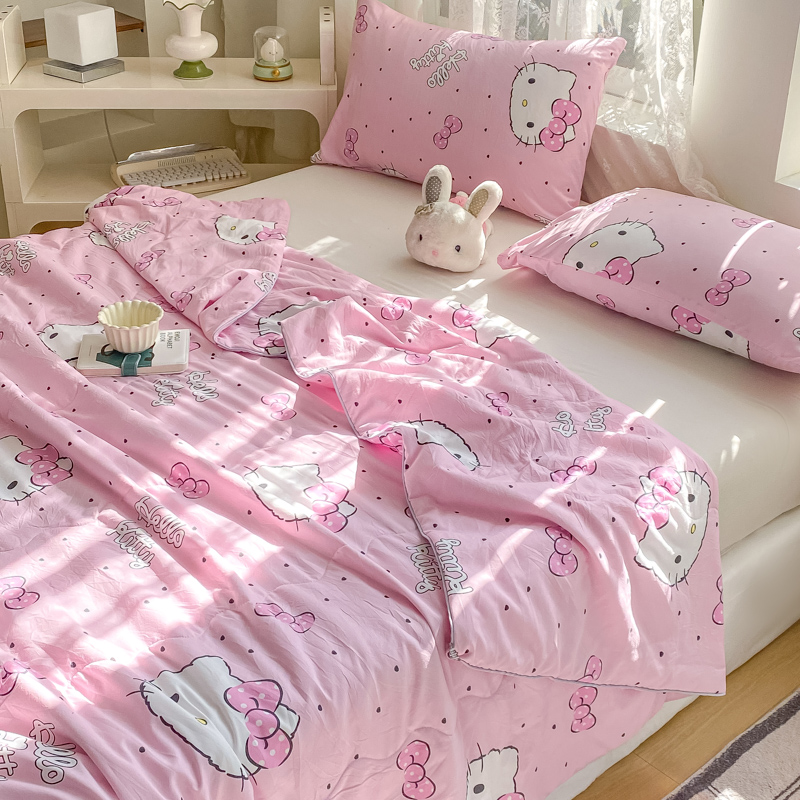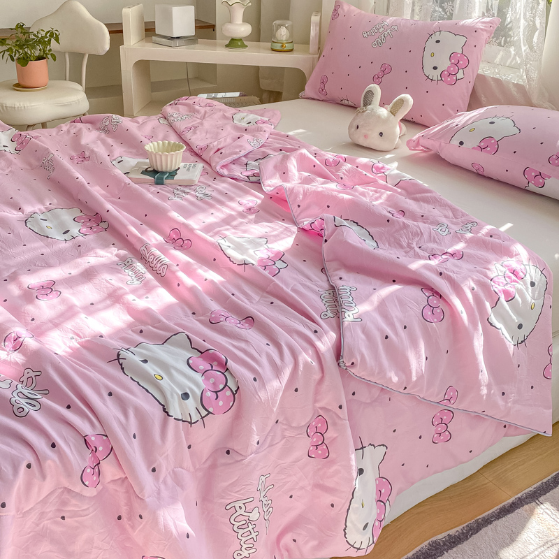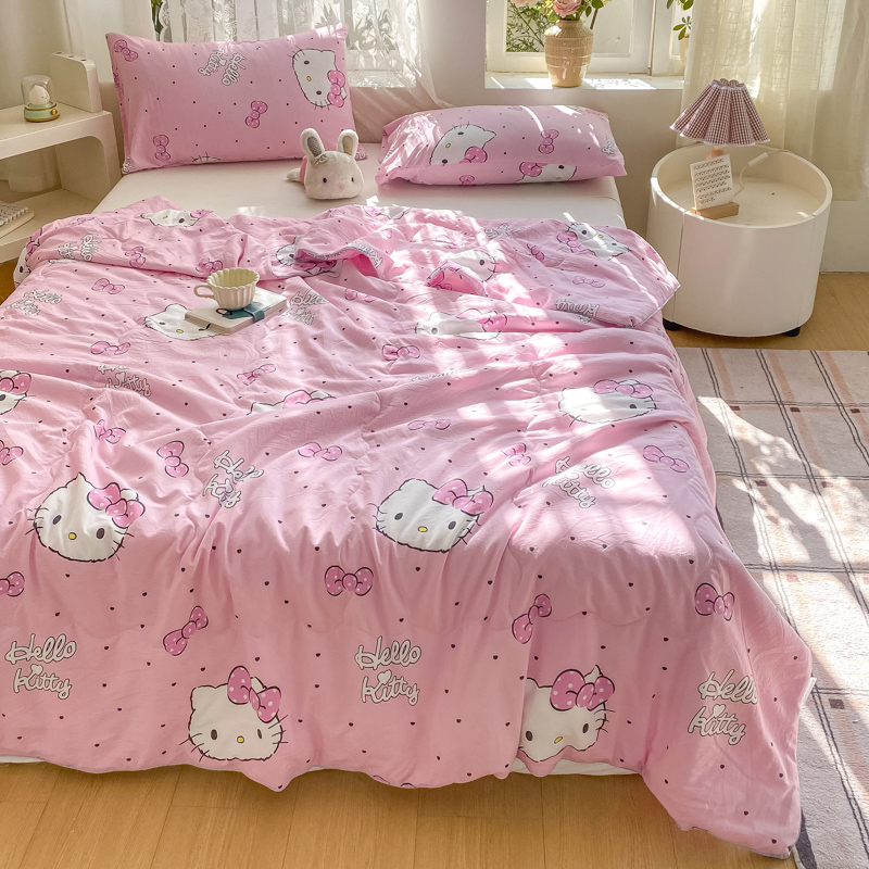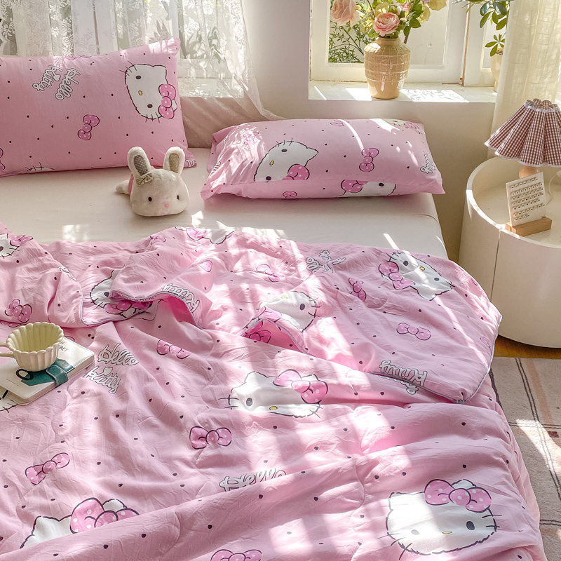 • 91家纺网 家纺一手货源 找家纺 尊妙被业 2025新款三丽鸥水洗棉夏被 奶油 kt 粉