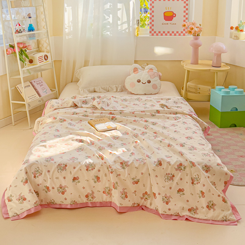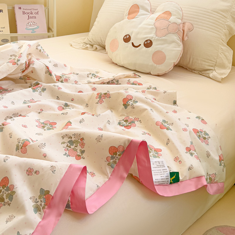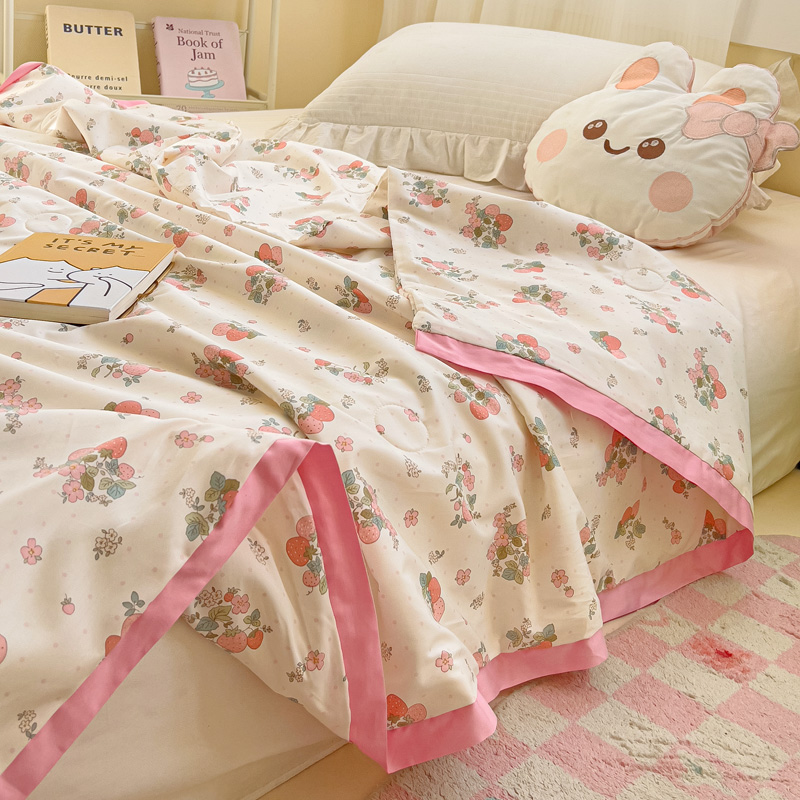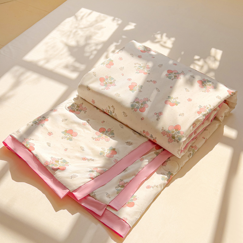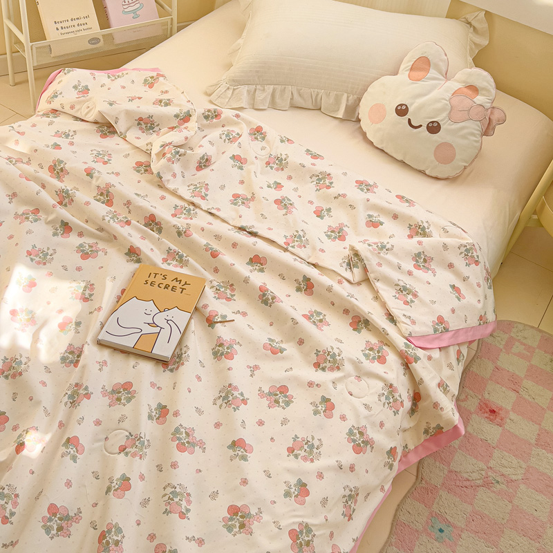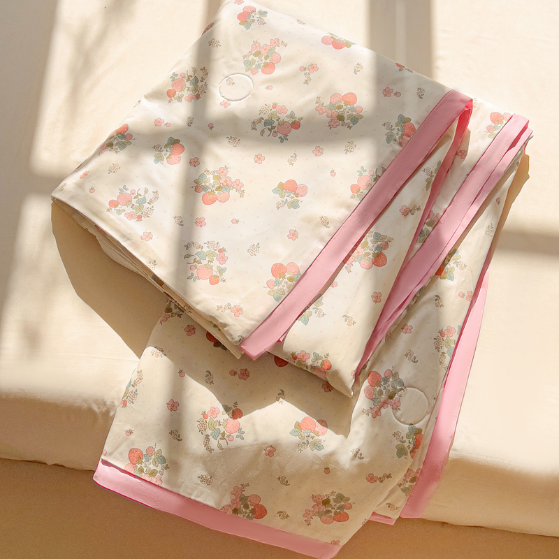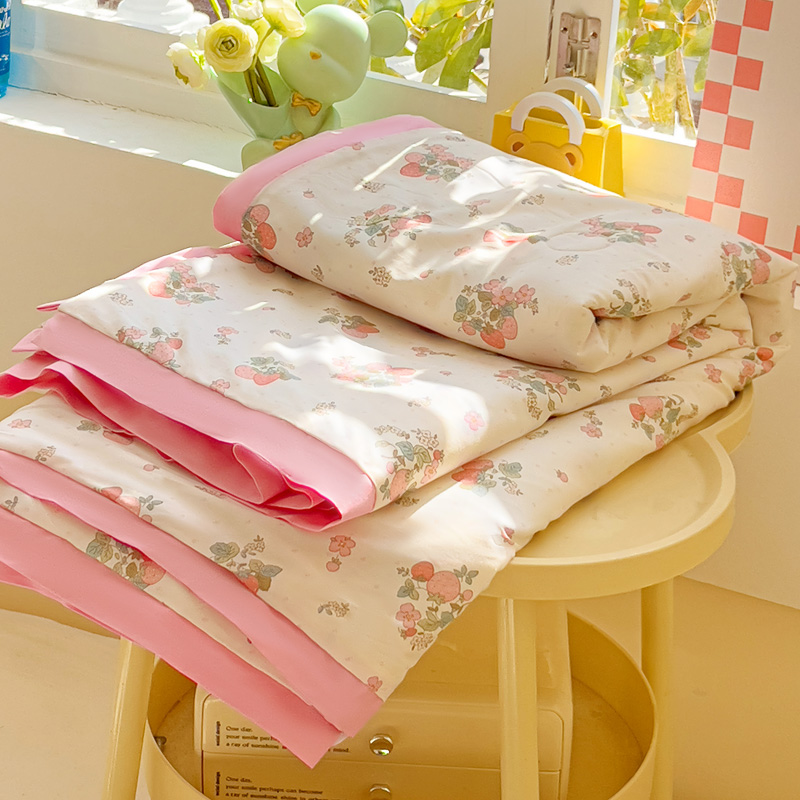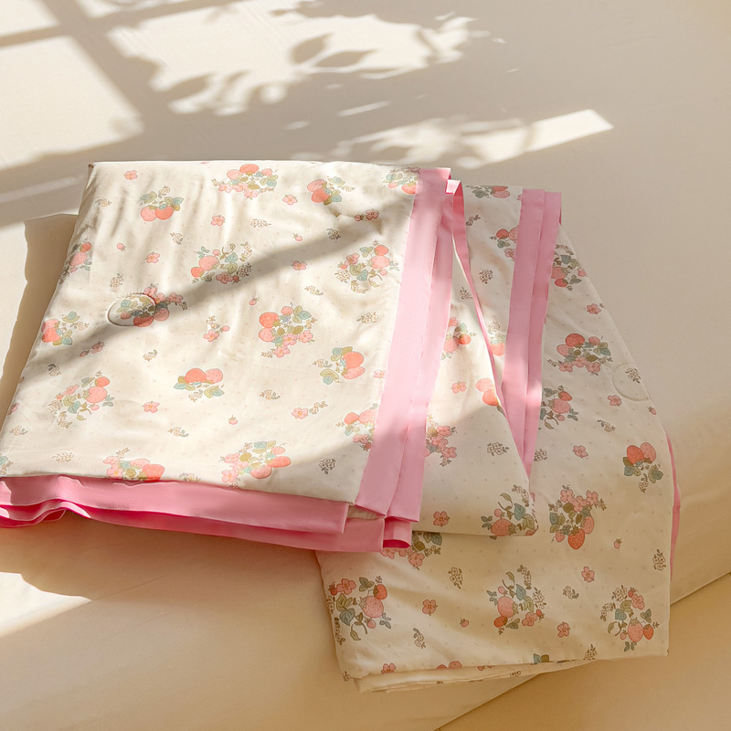 商品名称:十九色 2025新款液态硅胶飞边凉感奶嘴同源硅胶微重力贴身凉爽儿童夏被 草莓多多
