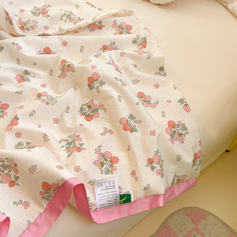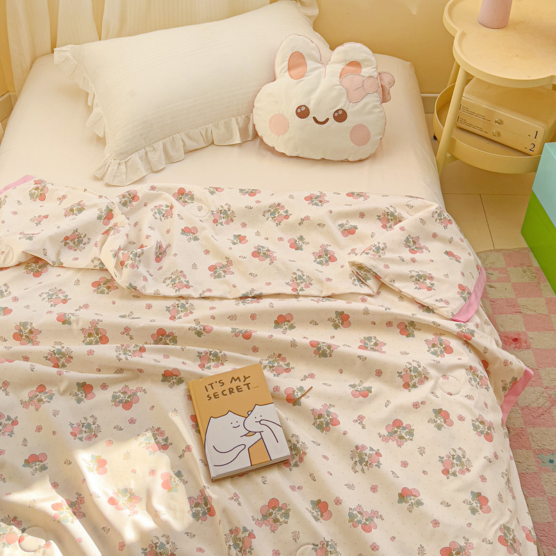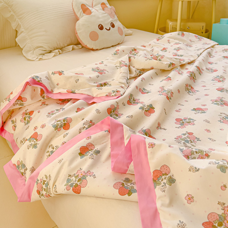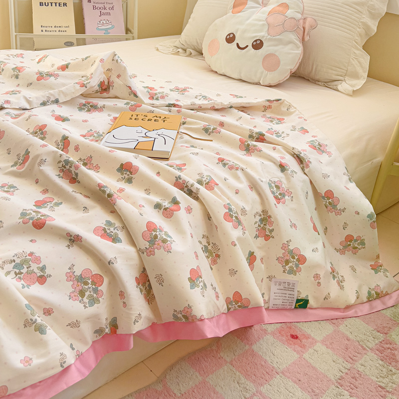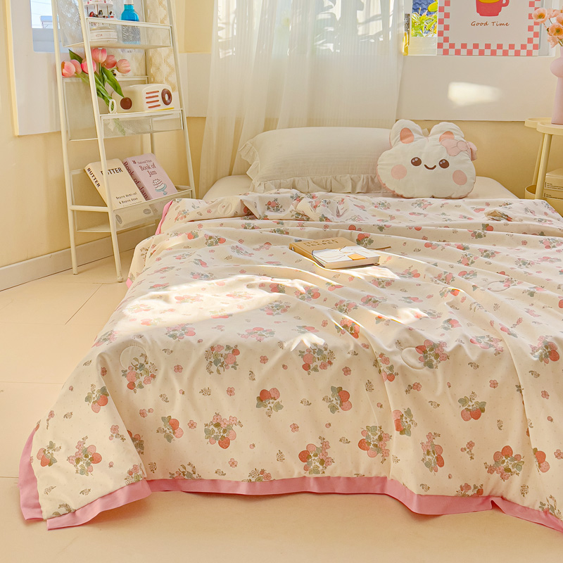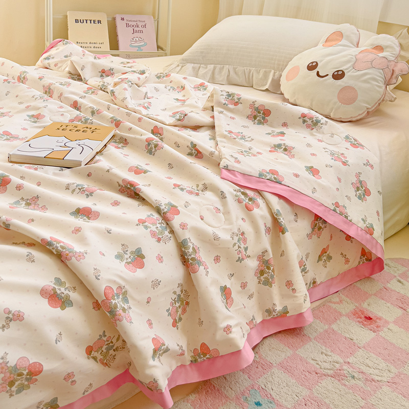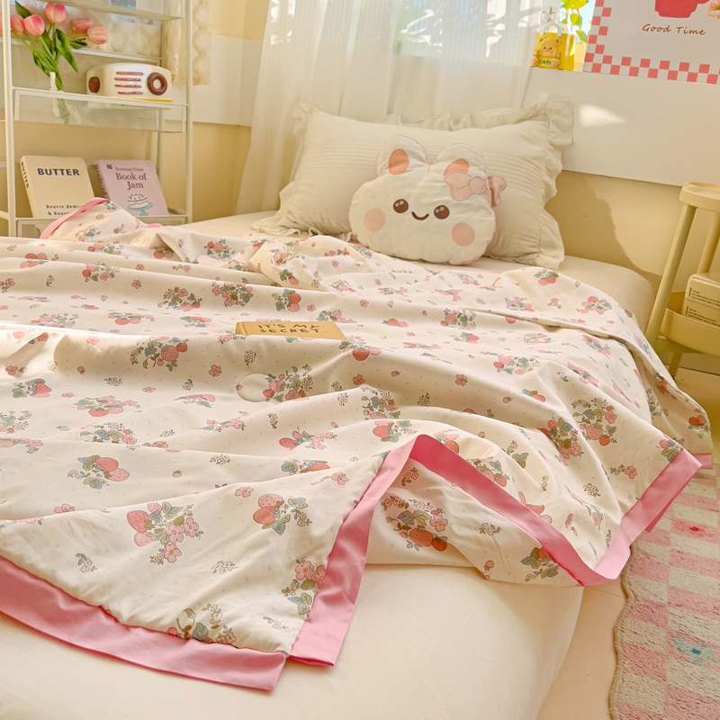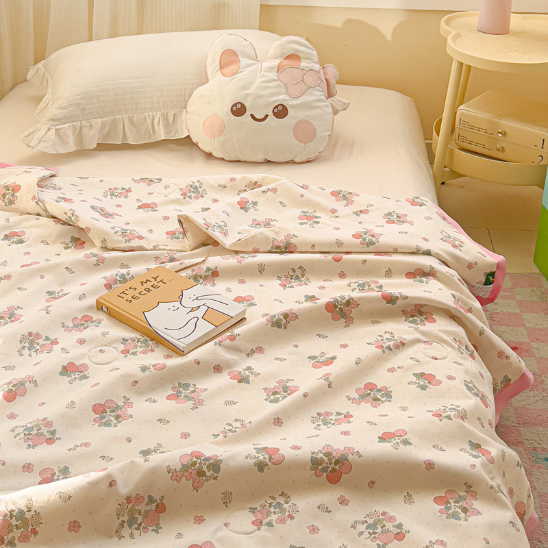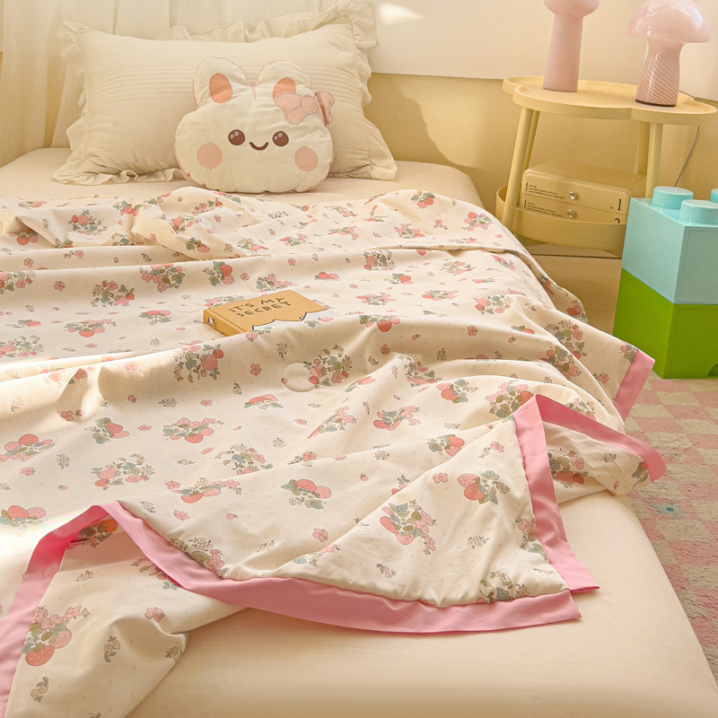 商品名称:十九色 2025新款液态硅胶飞边凉感奶嘴同源硅胶微重力贴身凉爽儿童夏被 草莓多多