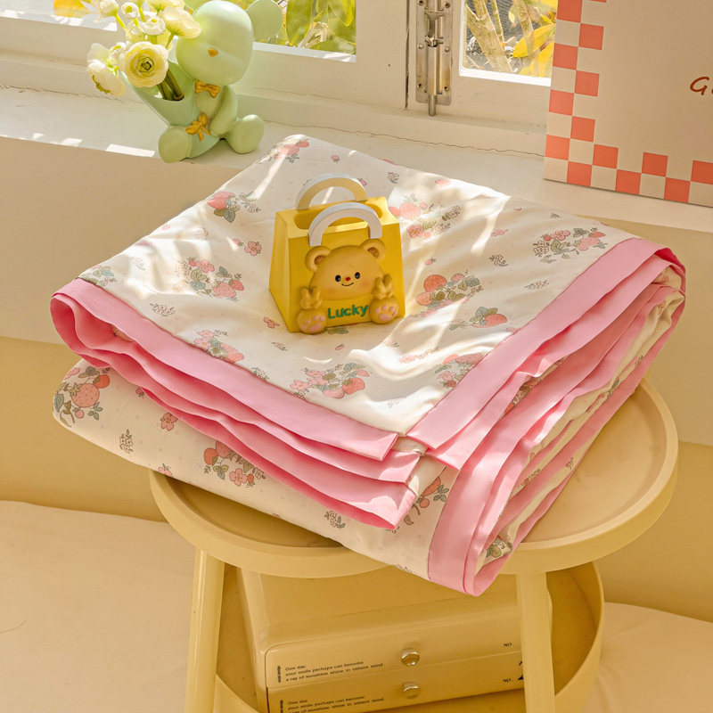 十九色 2025新款液态硅胶飞边凉感奶嘴同源硅胶微重力贴身凉爽儿童夏被 草莓多多