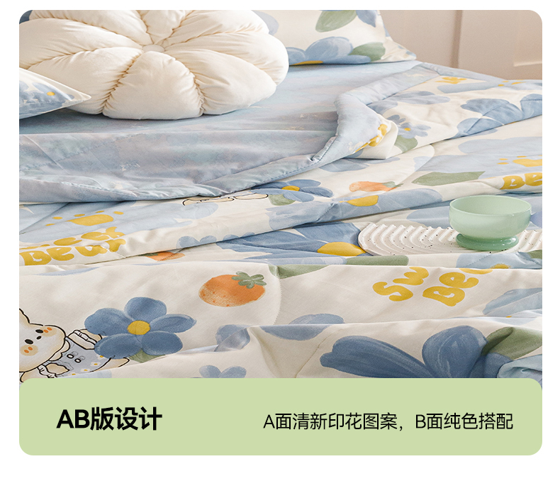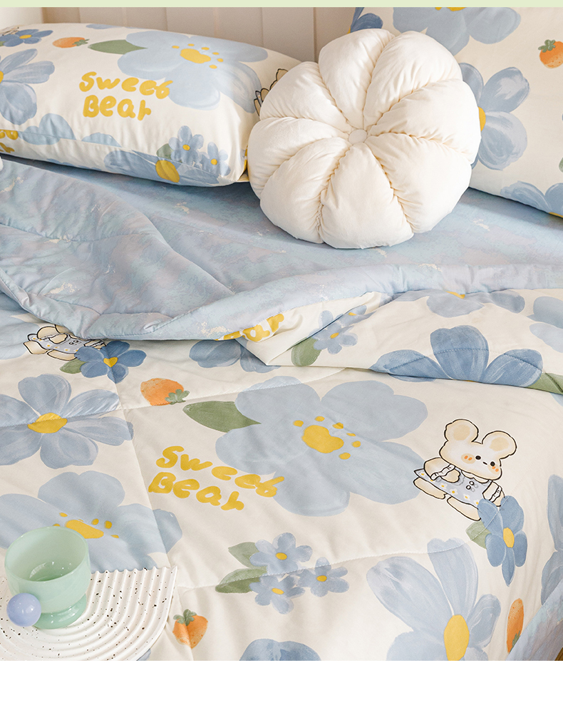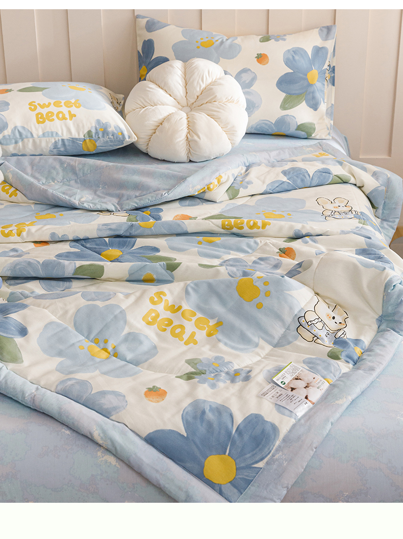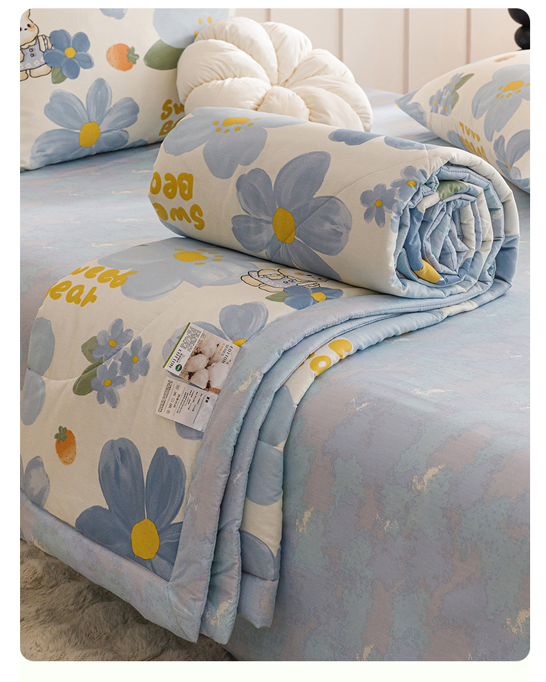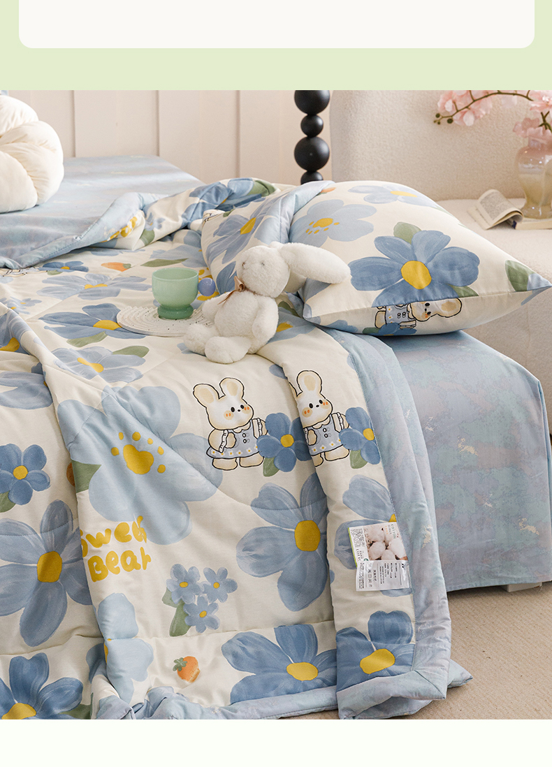 恬思语家纺 2025新款全棉印花棉花夏被花涧小兔-蓝