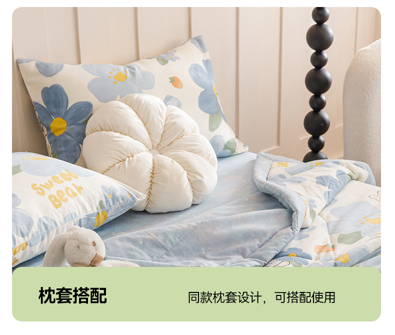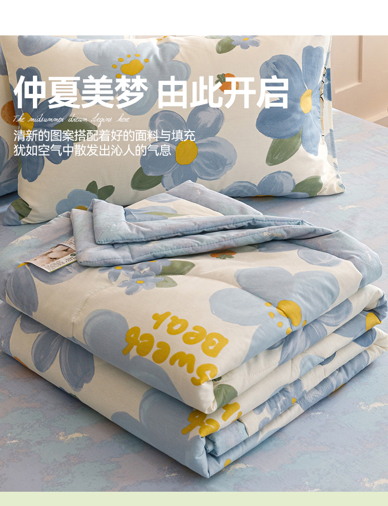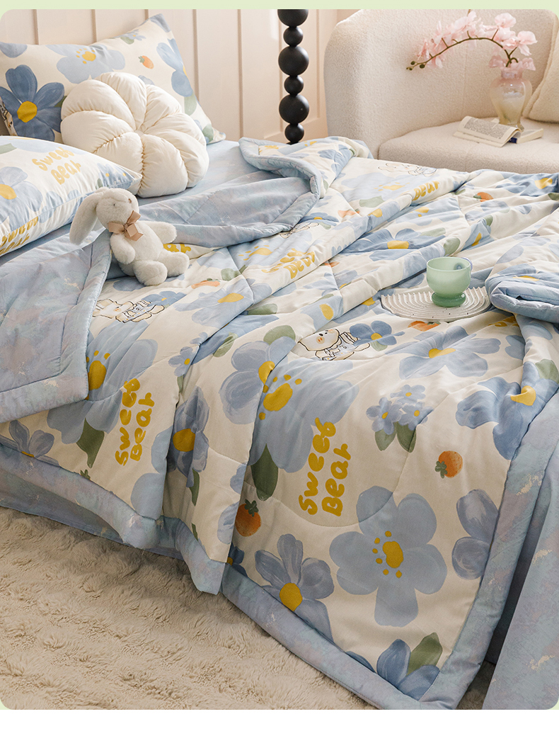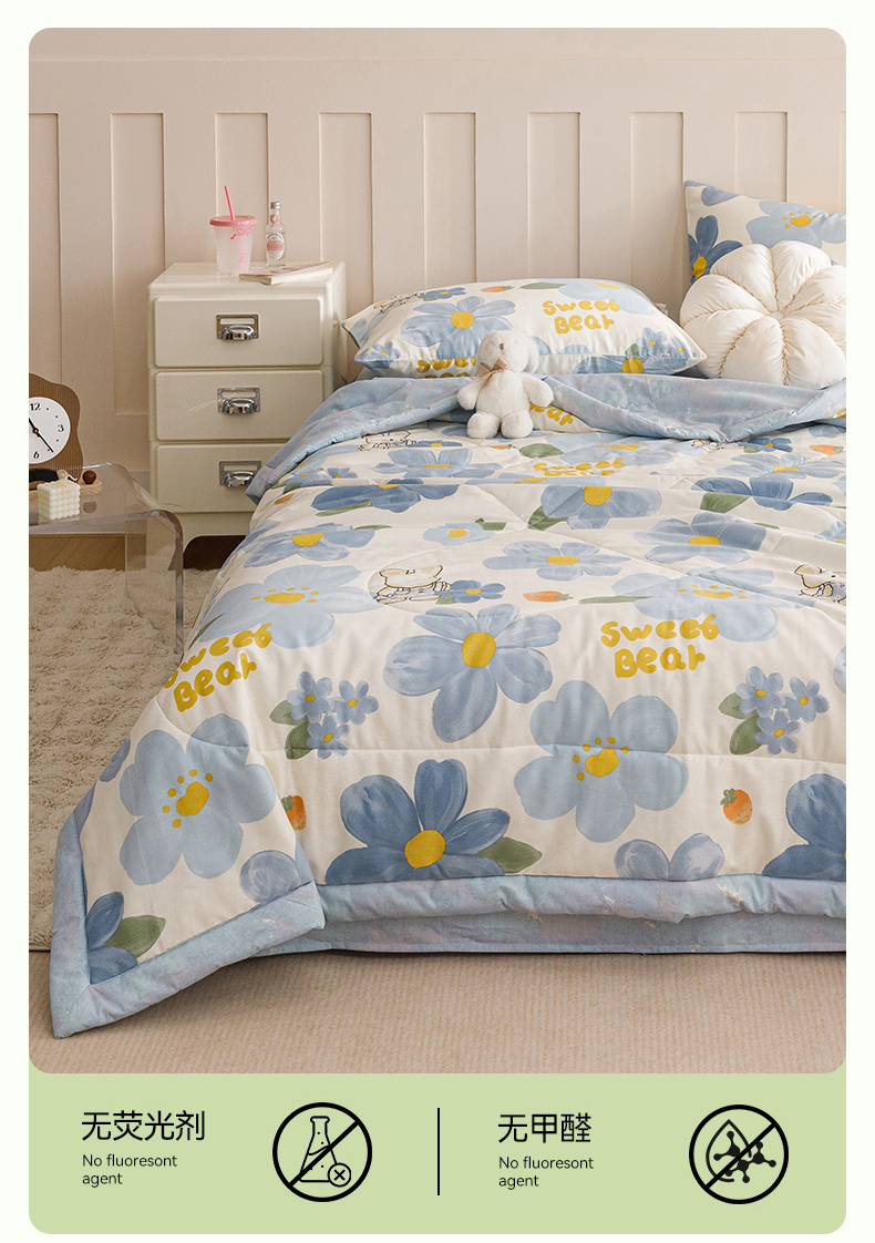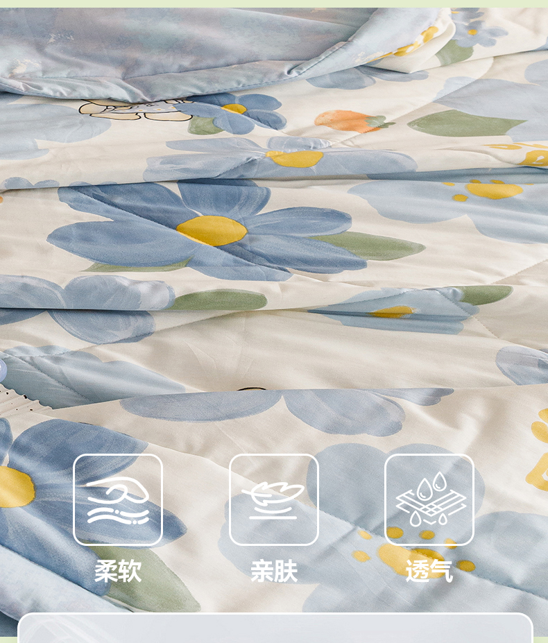 恬思语家纺 2025新款全棉印花棉花夏被花涧小兔-蓝
