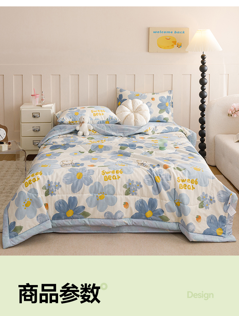 商品名称:恬思语家纺 2025新款全棉印花棉花夏被花涧小兔-蓝