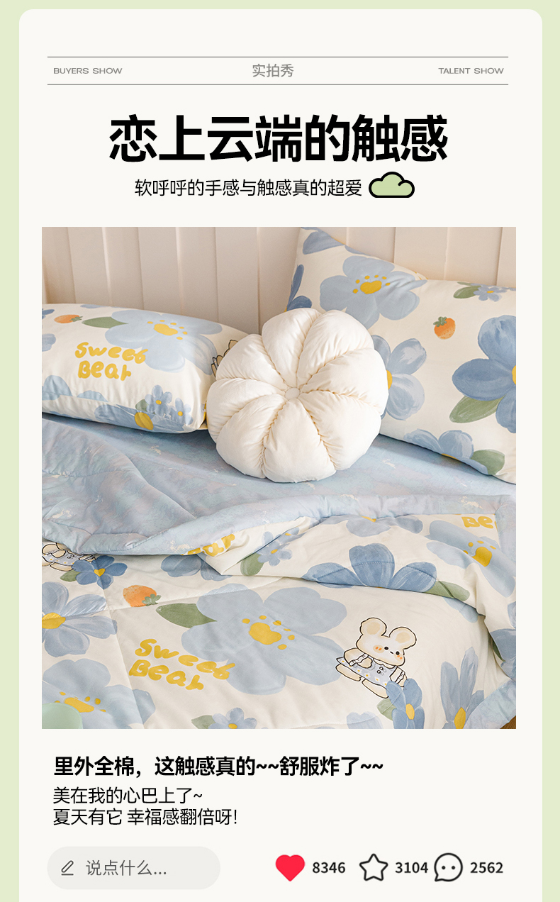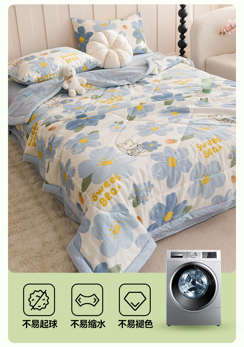 (总)恬思语家纺 2025新款凉感抱抱熊大豆夏被 ,翠绿,浅草绿,浅灰,浅绿,天空蓝,樱花粉