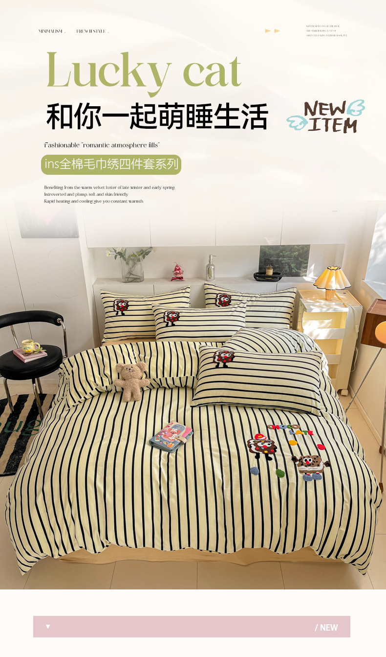 寐居家纺 2025新款全棉13070毛巾绣四件套 曲奇豆
