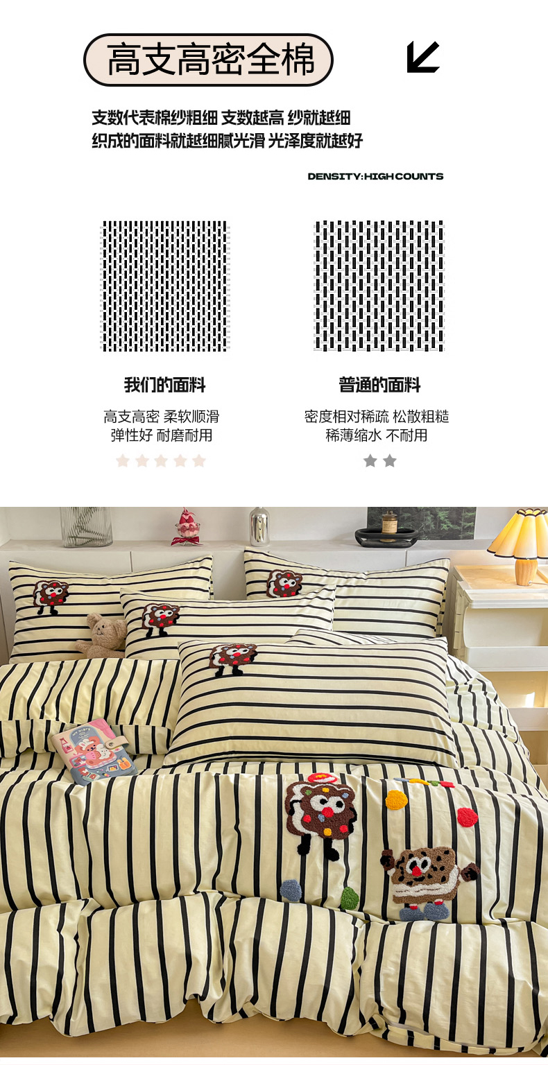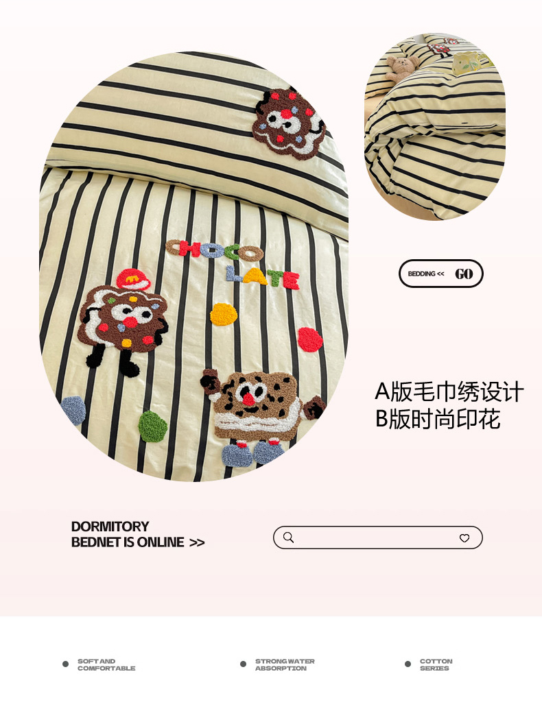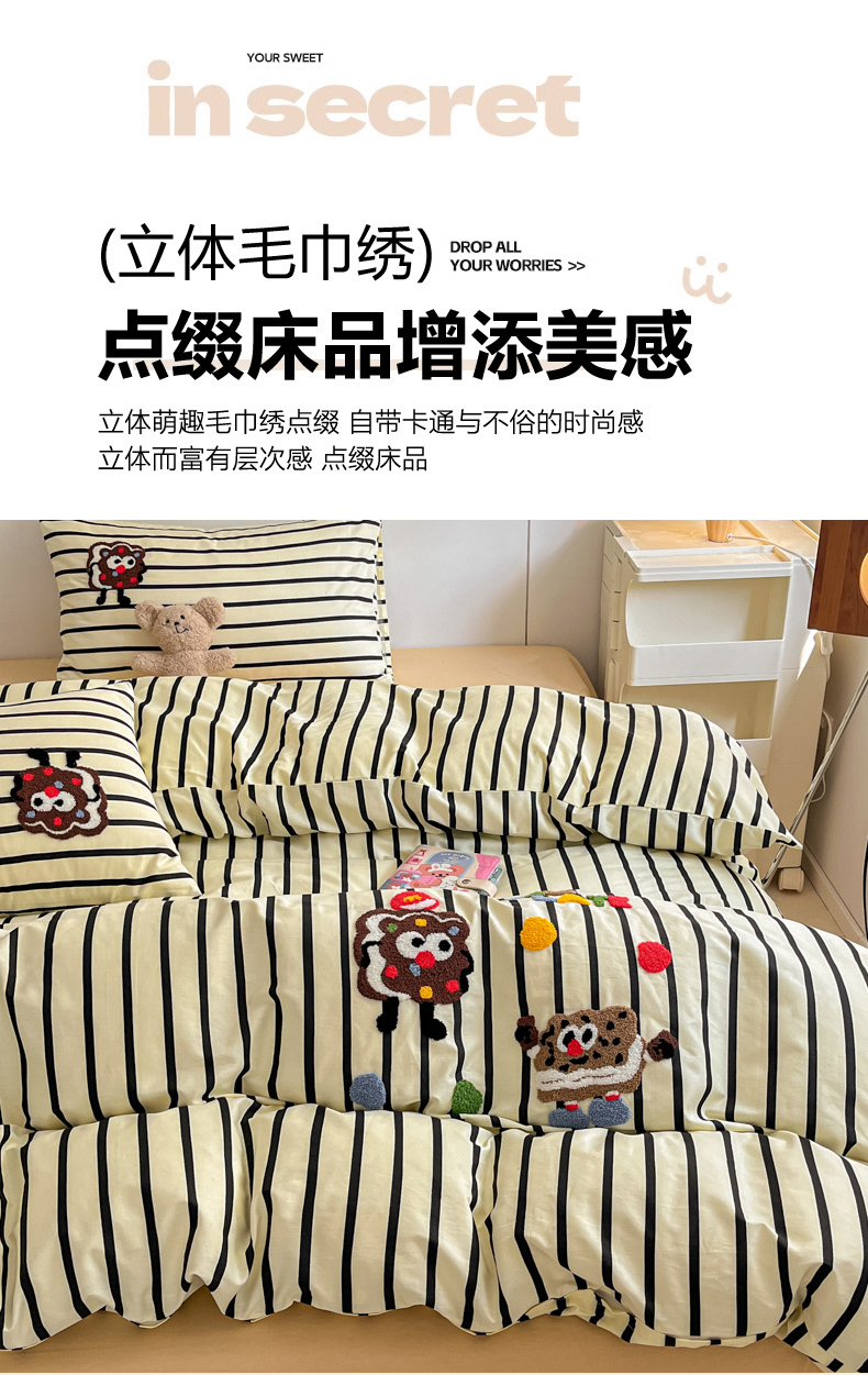 商品名称:寐居家纺 2025新款全棉13070毛巾绣四件套 曲奇豆