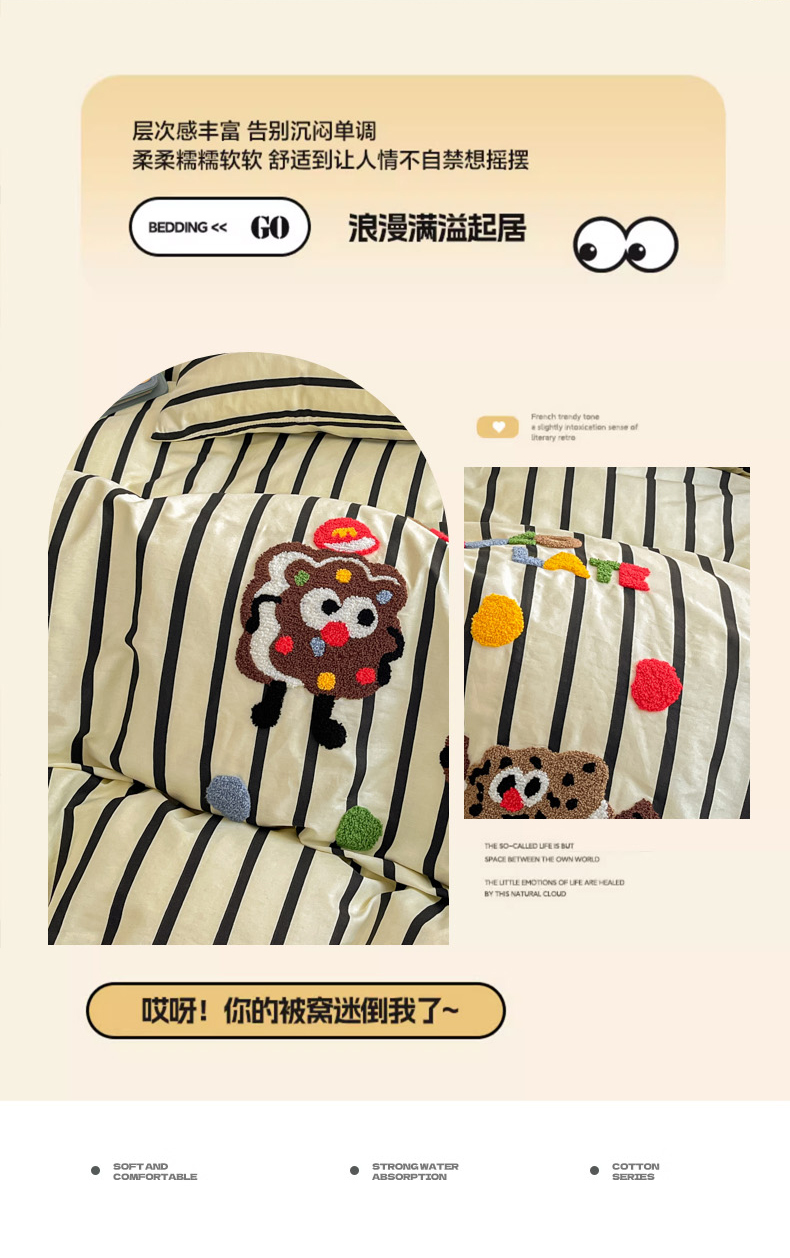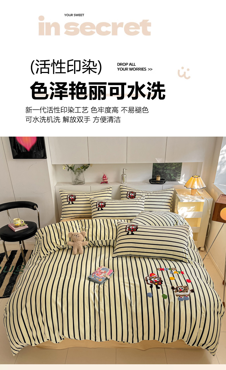 (总)寐居家纺 2025新款毛球毛巾绣牛奶绒四件套,毛球球·巴克汪仔,毛球球·豆蔻女孩,毛球球·奶黄拉布,毛球球·心动KT喵,组合图仅供展示不可下单