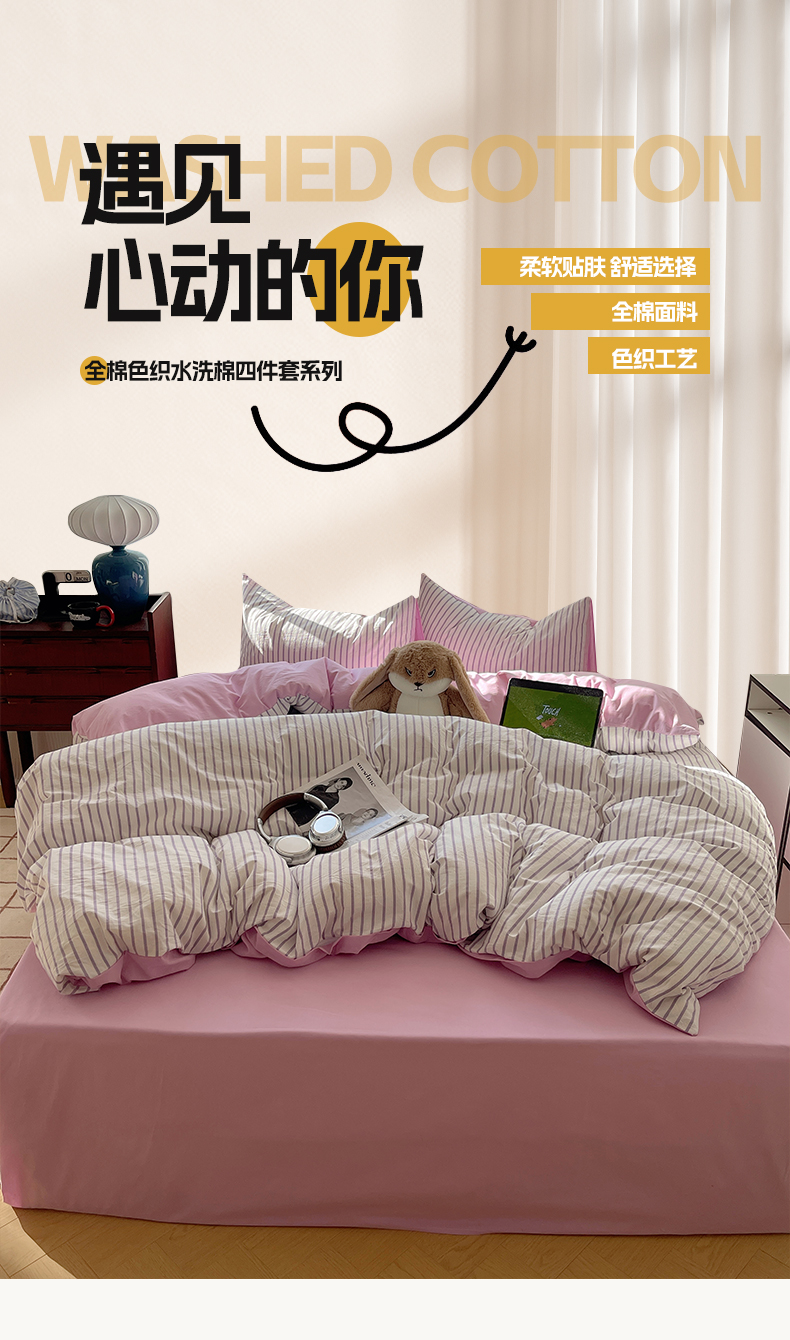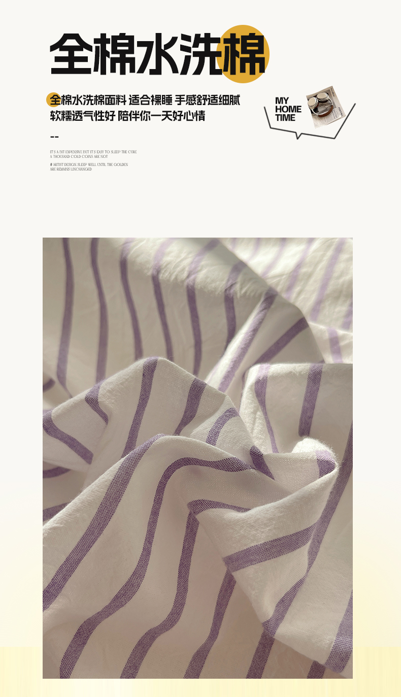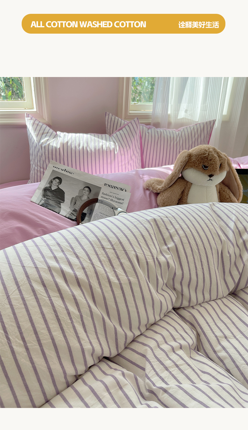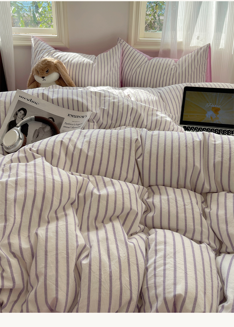 当前位置: 91家纺网 > 商品网购 > 床品套件 > 四件套 > 全棉普通四件套 > 雅居纺家纺 2025全棉色织水洗棉四件套 竖条紫