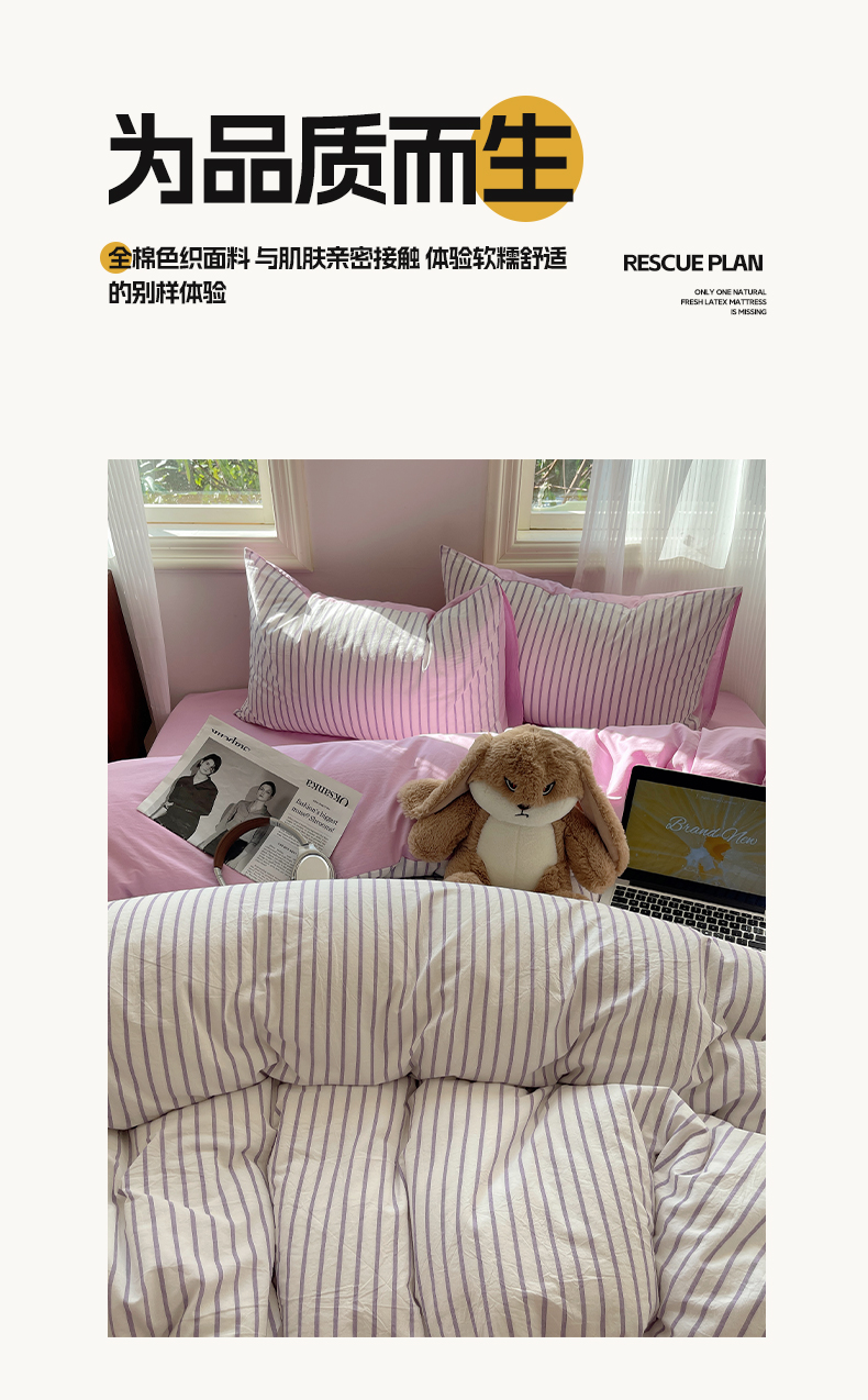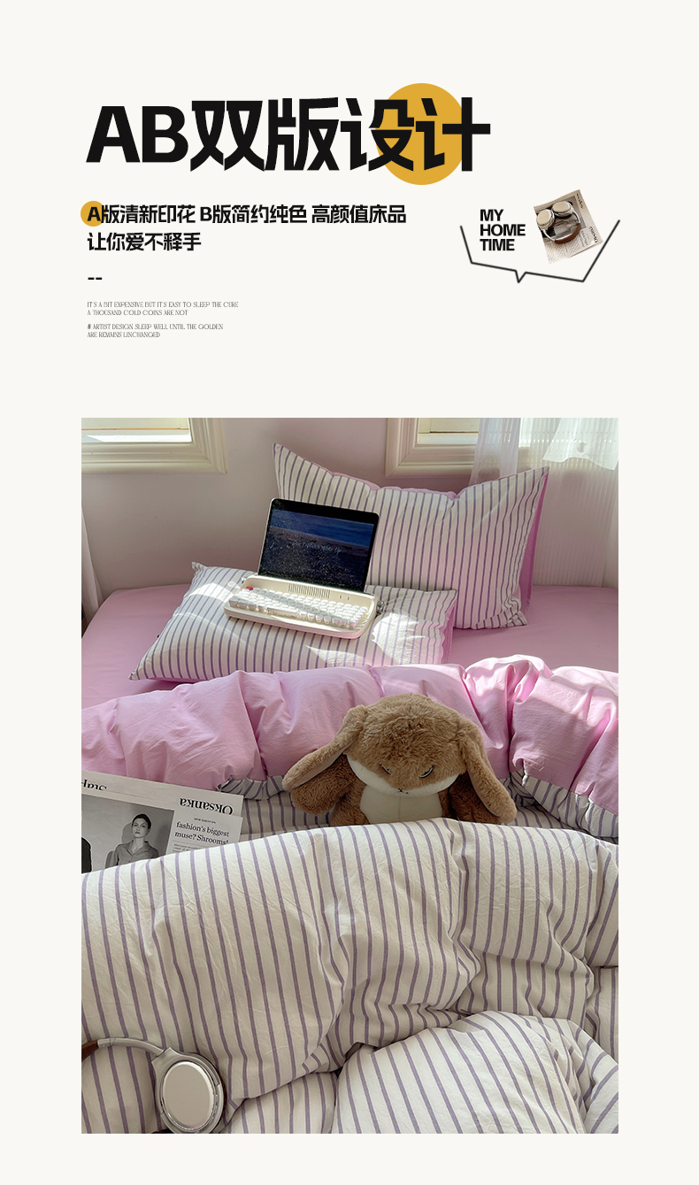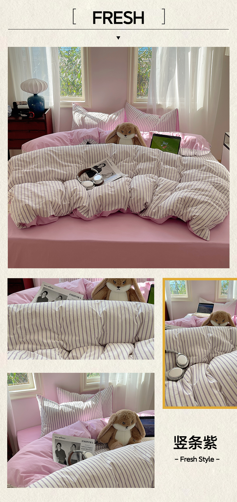 当前位置: 91家纺网 > 商品网购 > 床品套件 > 四件套 > 全棉普通四件套 > 雅居纺家纺 2025全棉色织水洗棉四件套 竖条紫