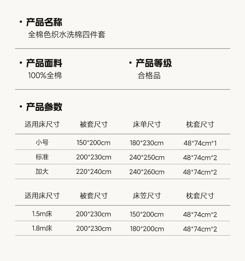 1.5m床笠款四件套 | ¥115.00 |