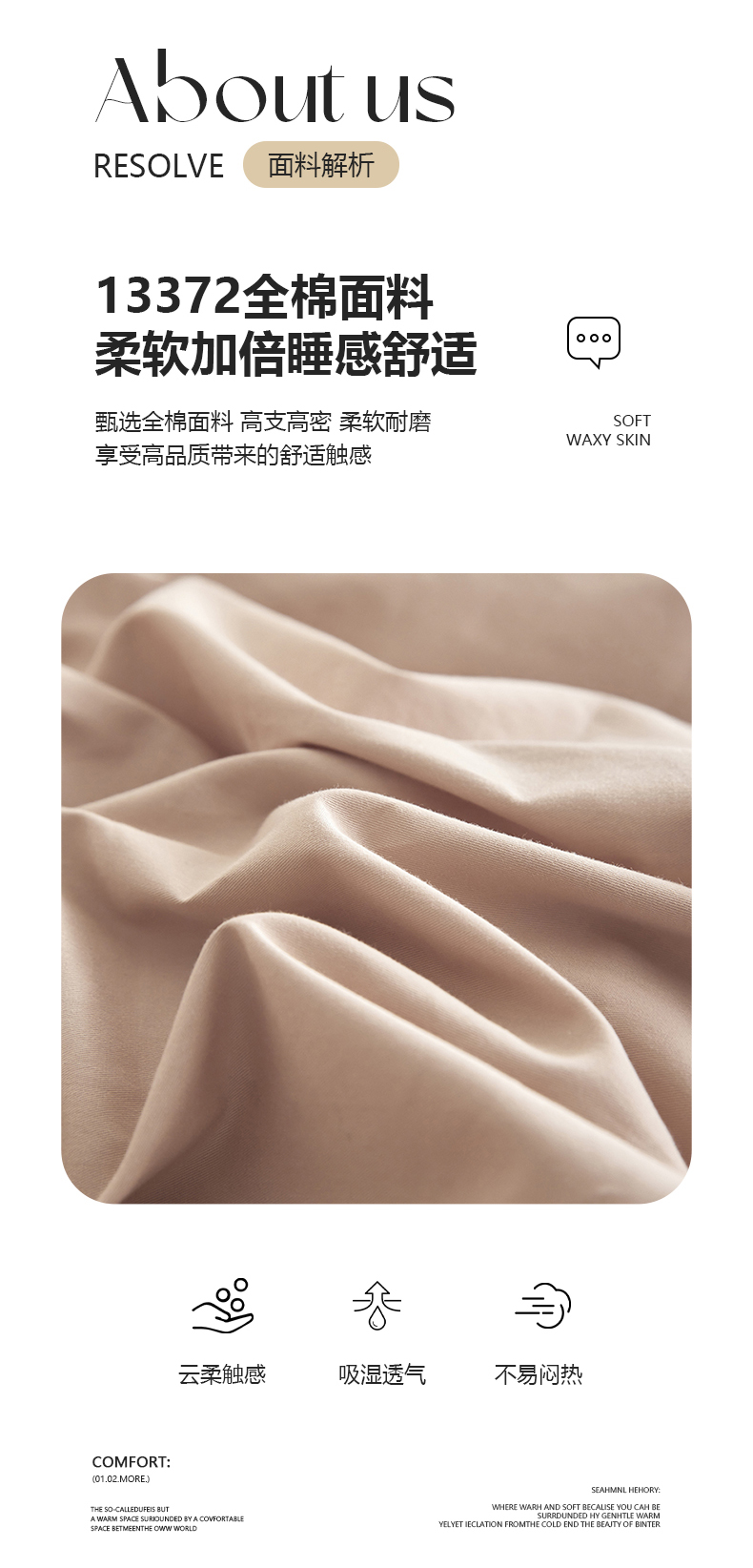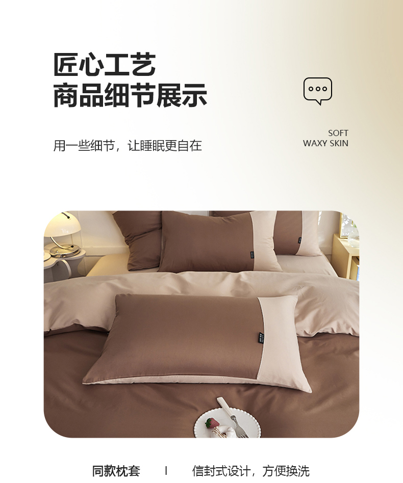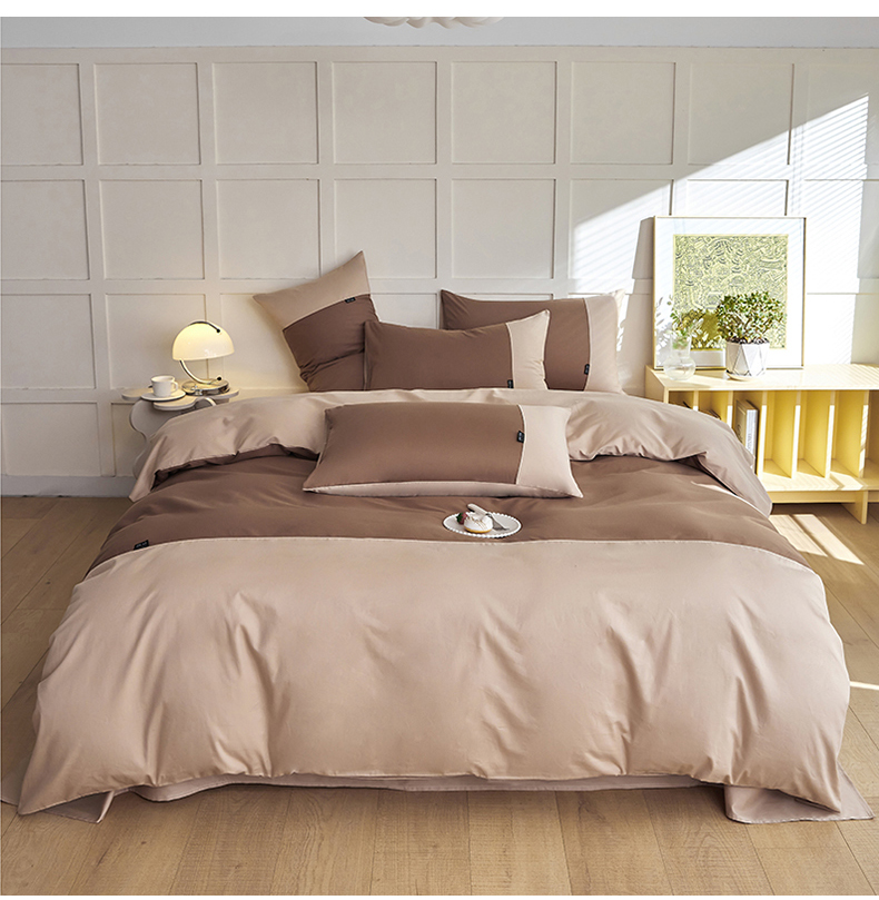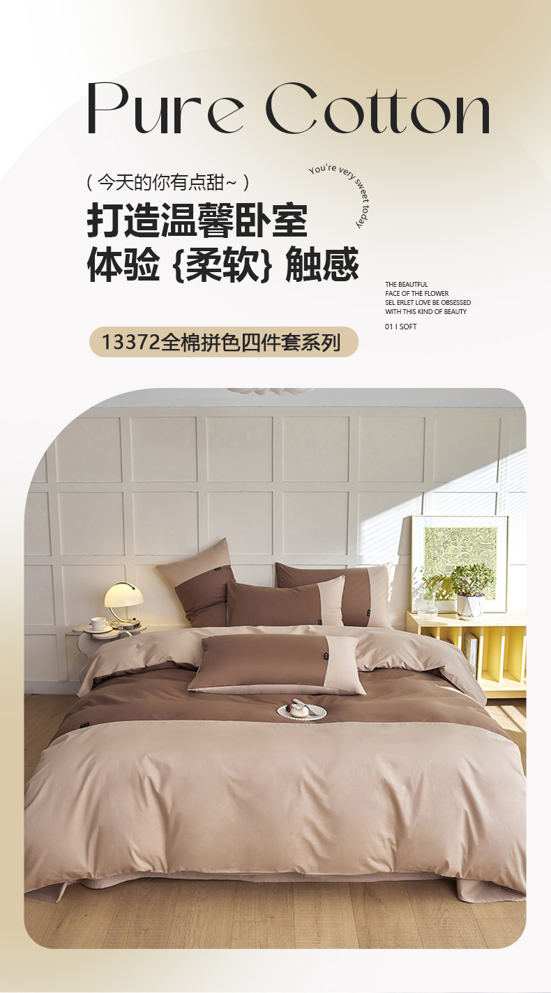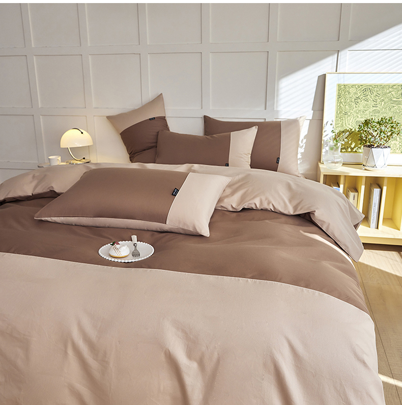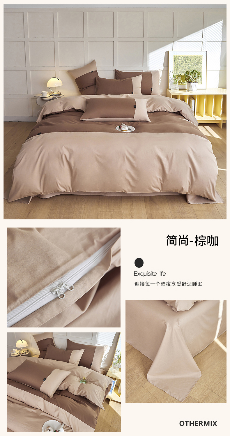 商品名称:慕希2025新款13372全棉拼色正拼四件套系列-简尚 简尚-棕咖