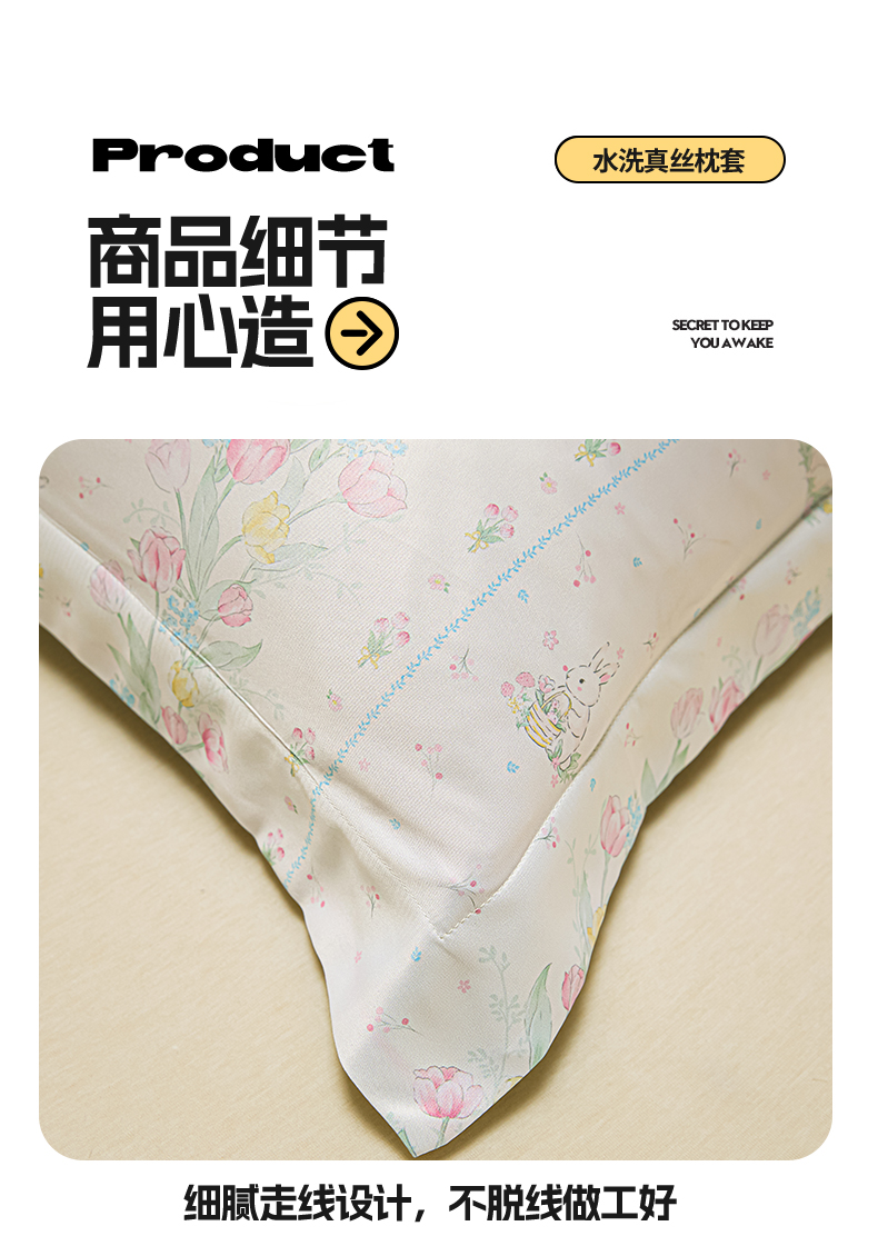 商品名称:笙意家纺 2025新款水洗真丝数码印花卡通枕套 花丛小兔