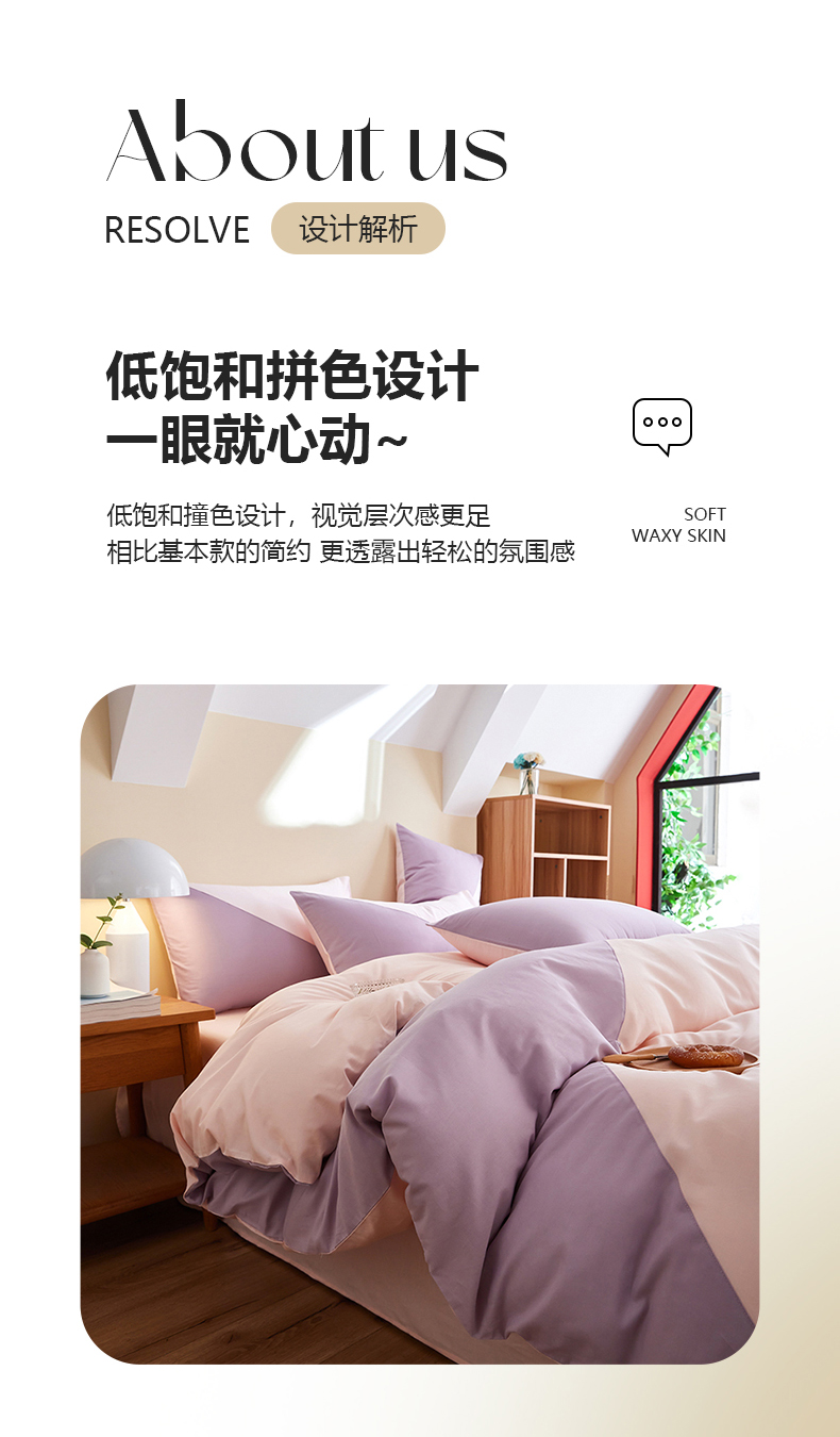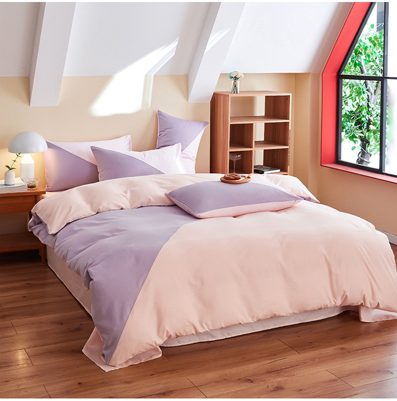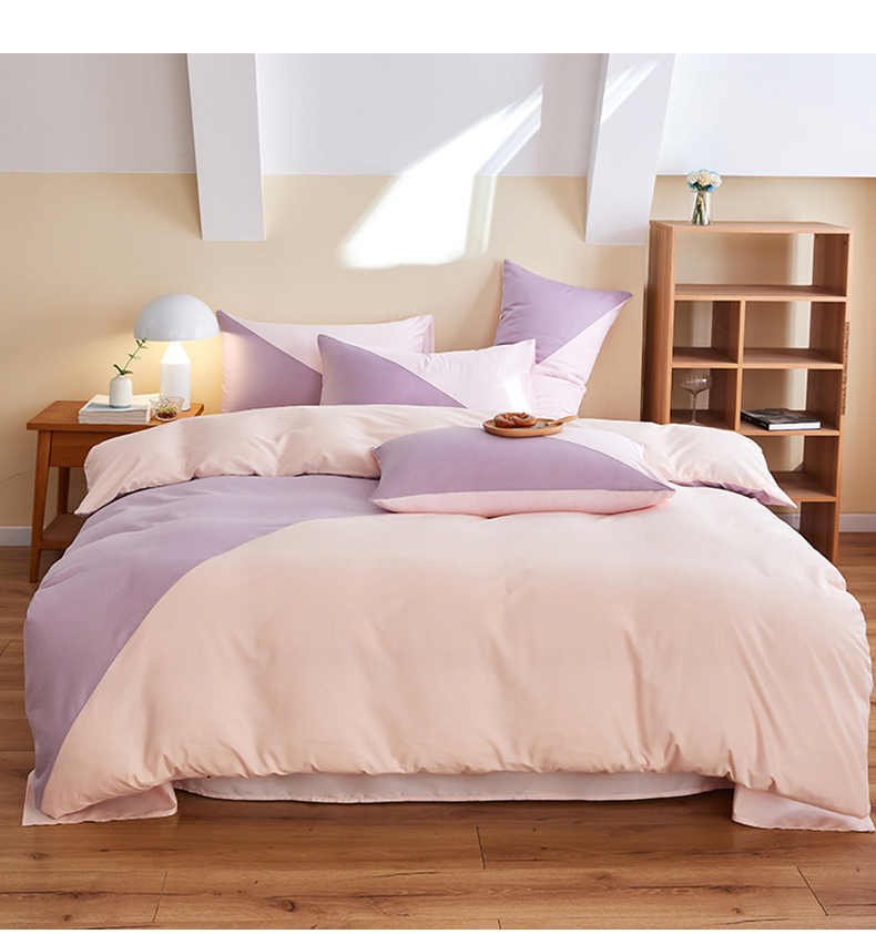慕希2025新款40S全棉喷气13372简约三角拼四件套 简约-浅紫玉