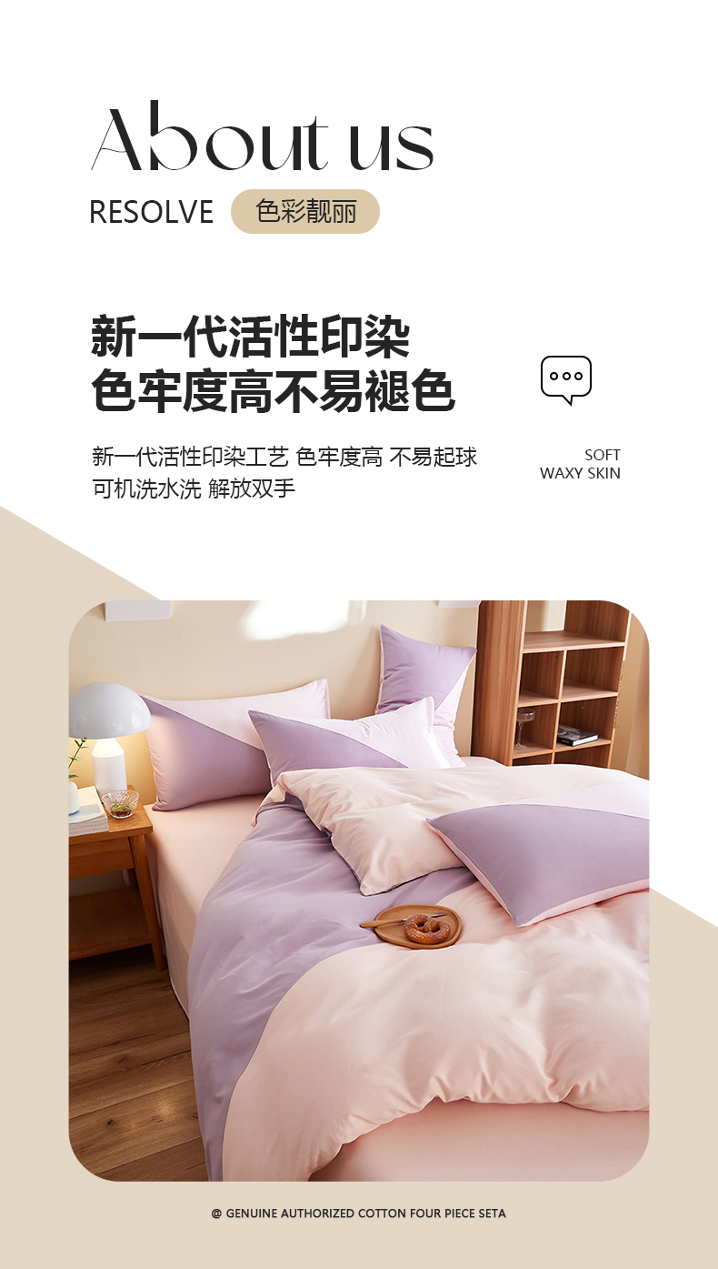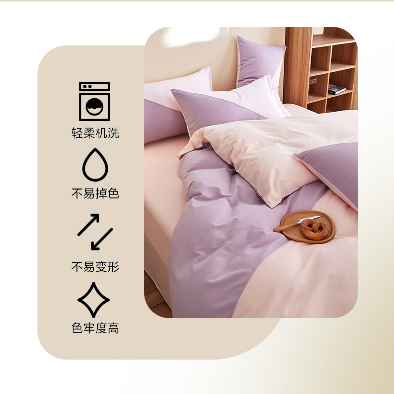 商品名称:慕希2025新款40S全棉喷气13372简约三角拼四件套 简约-浅紫玉