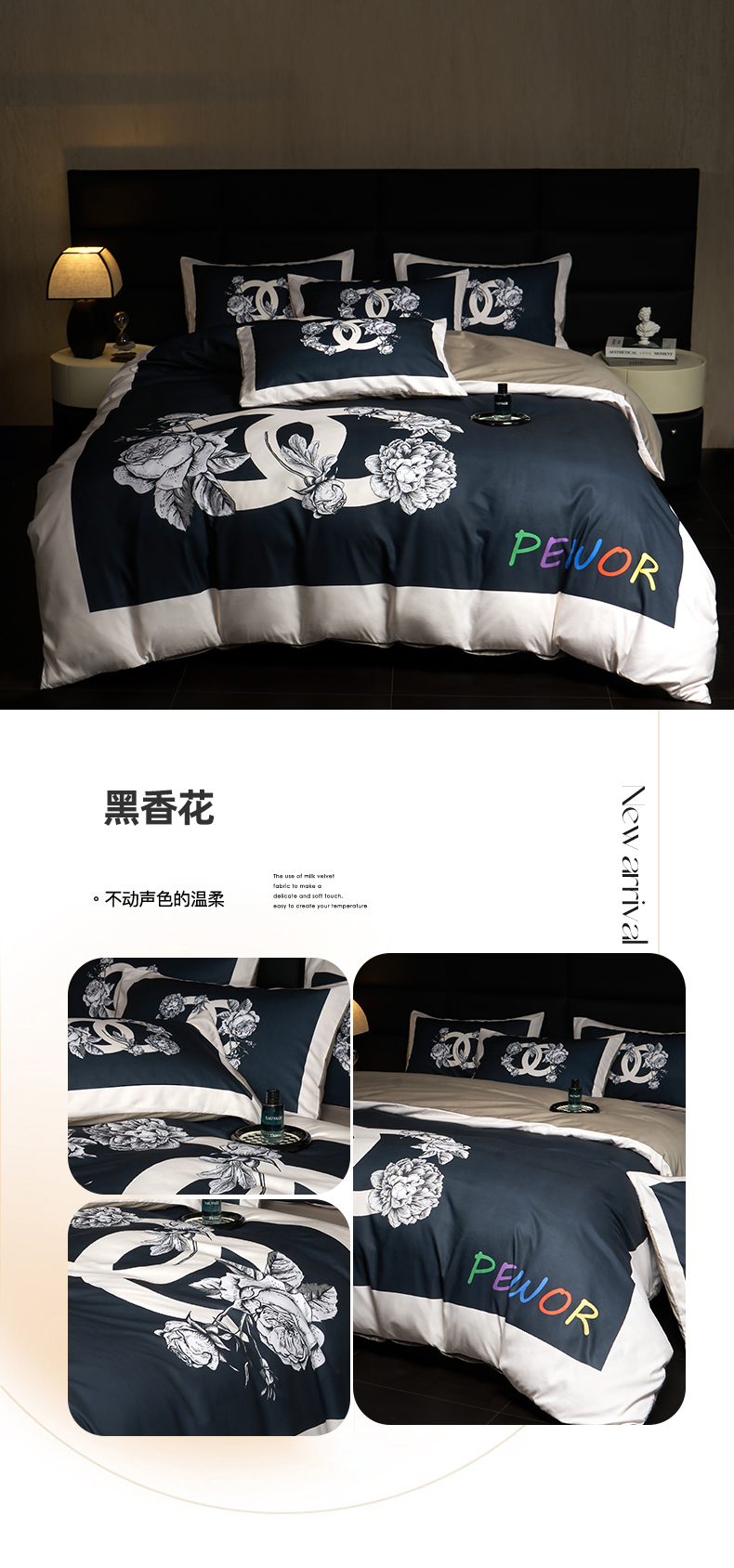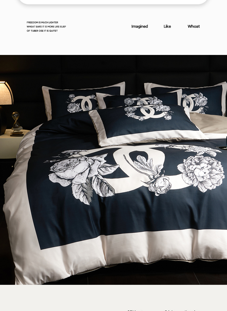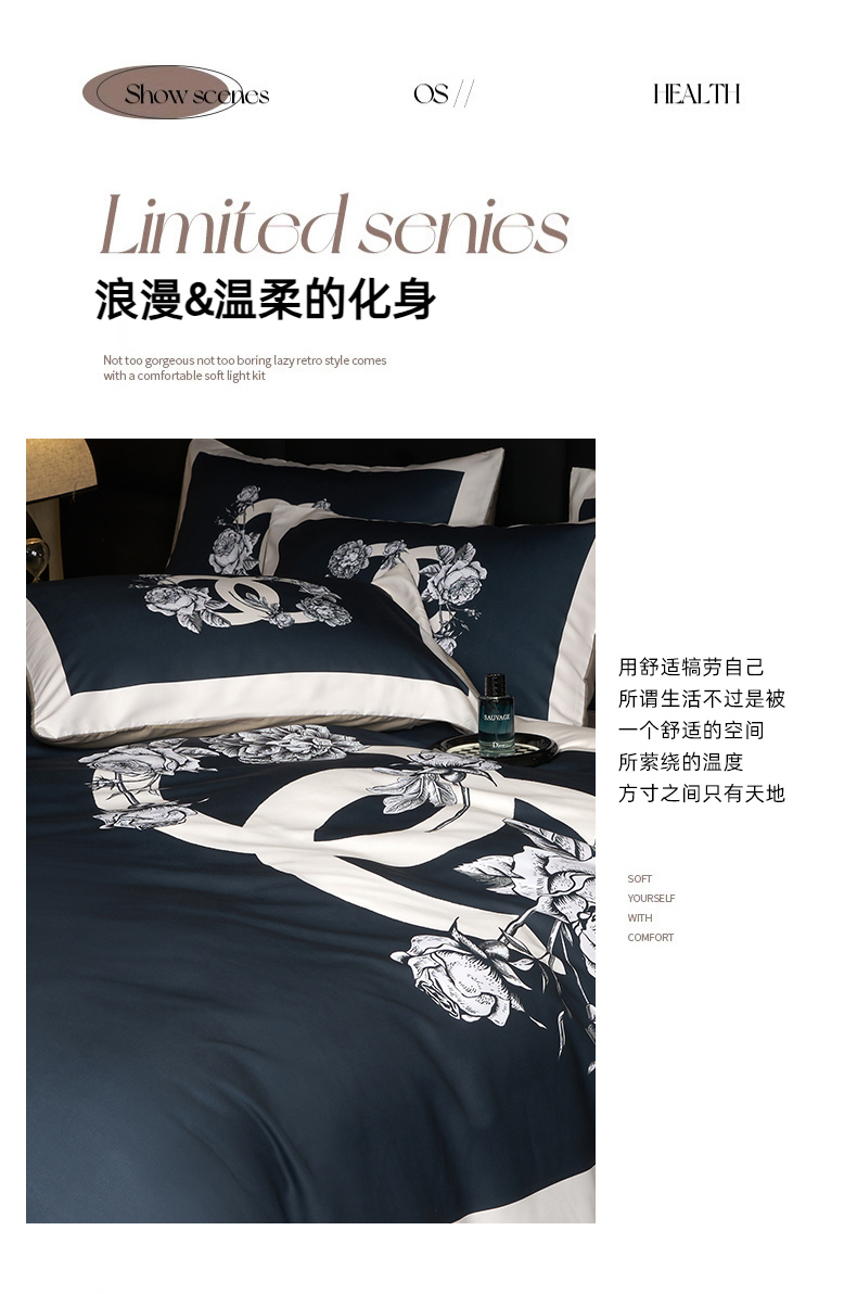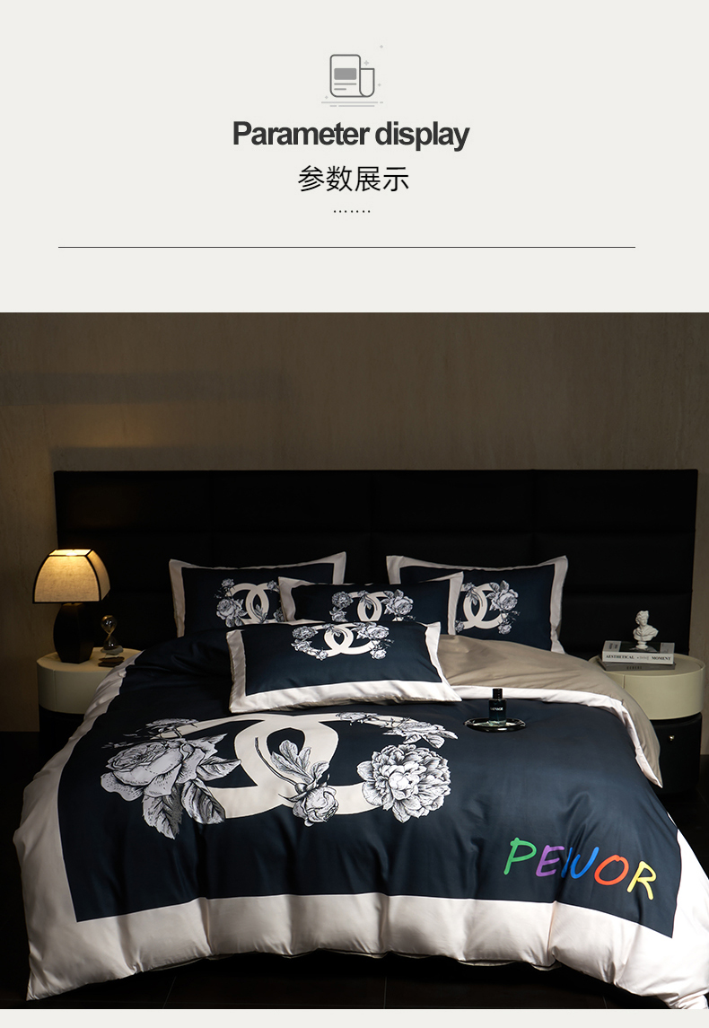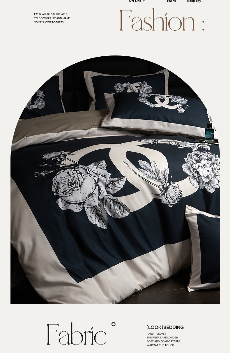 当前位置: 91家纺网 > 商品网购 > 床品套件 > 四件套 > 全棉普通四件套 > 花沐 2025新款轻奢潮牌亲肤棉纯棉四件套 黑香花