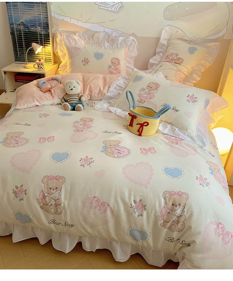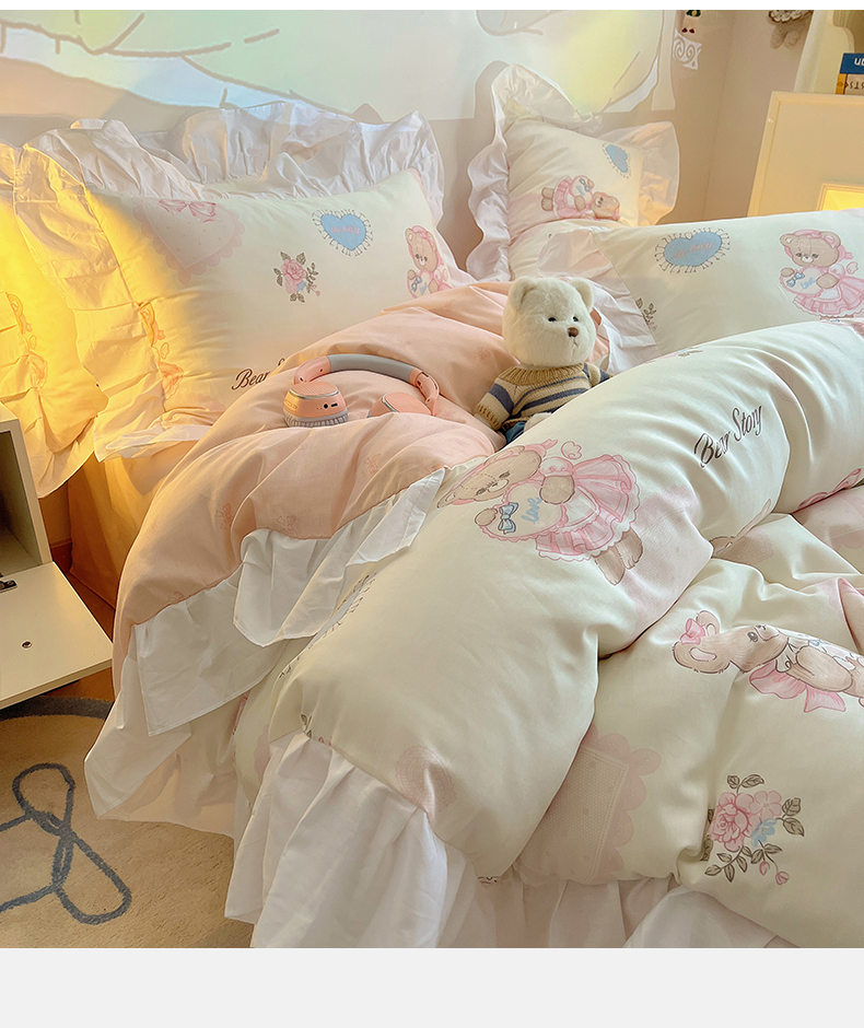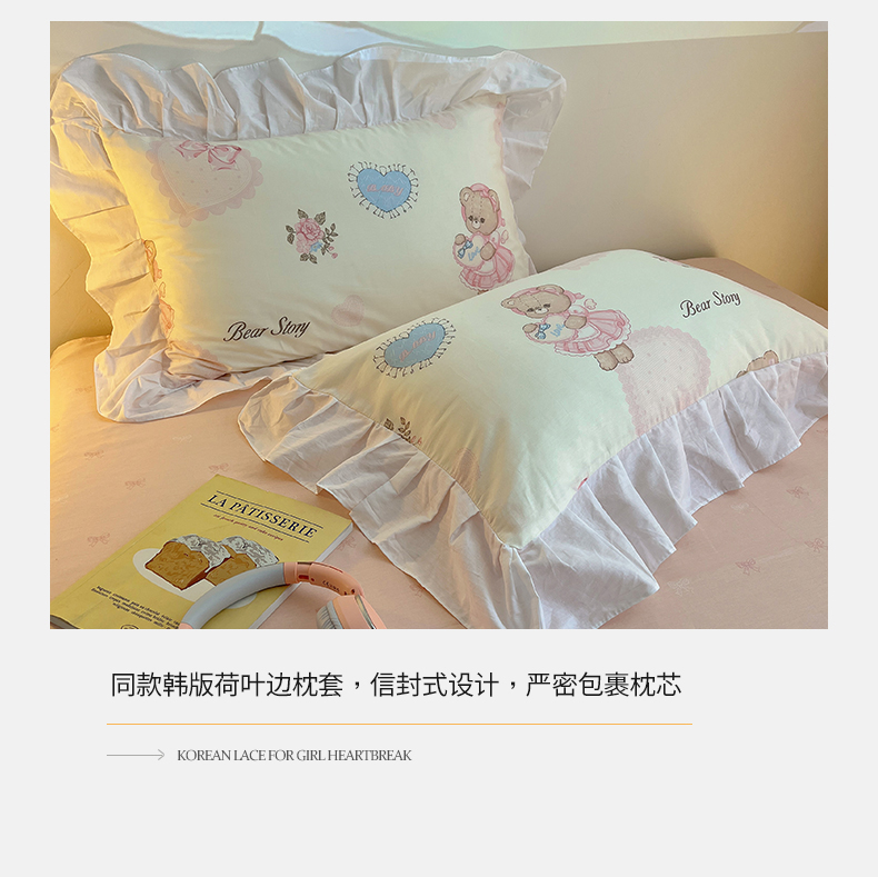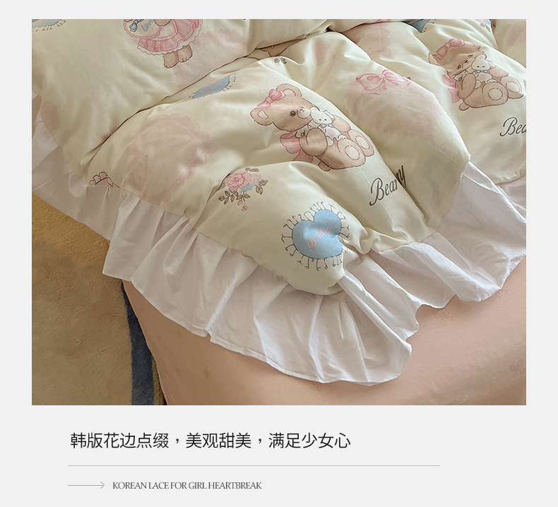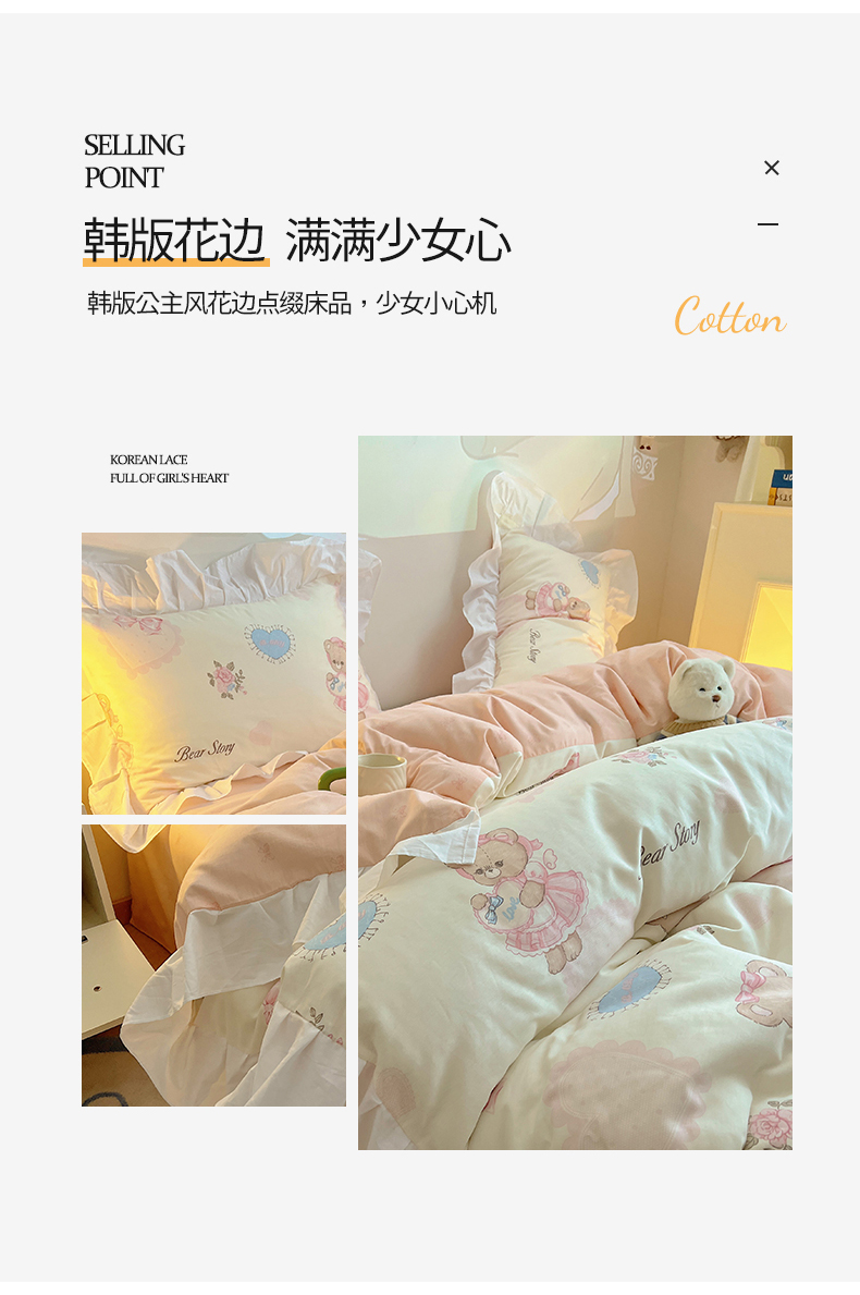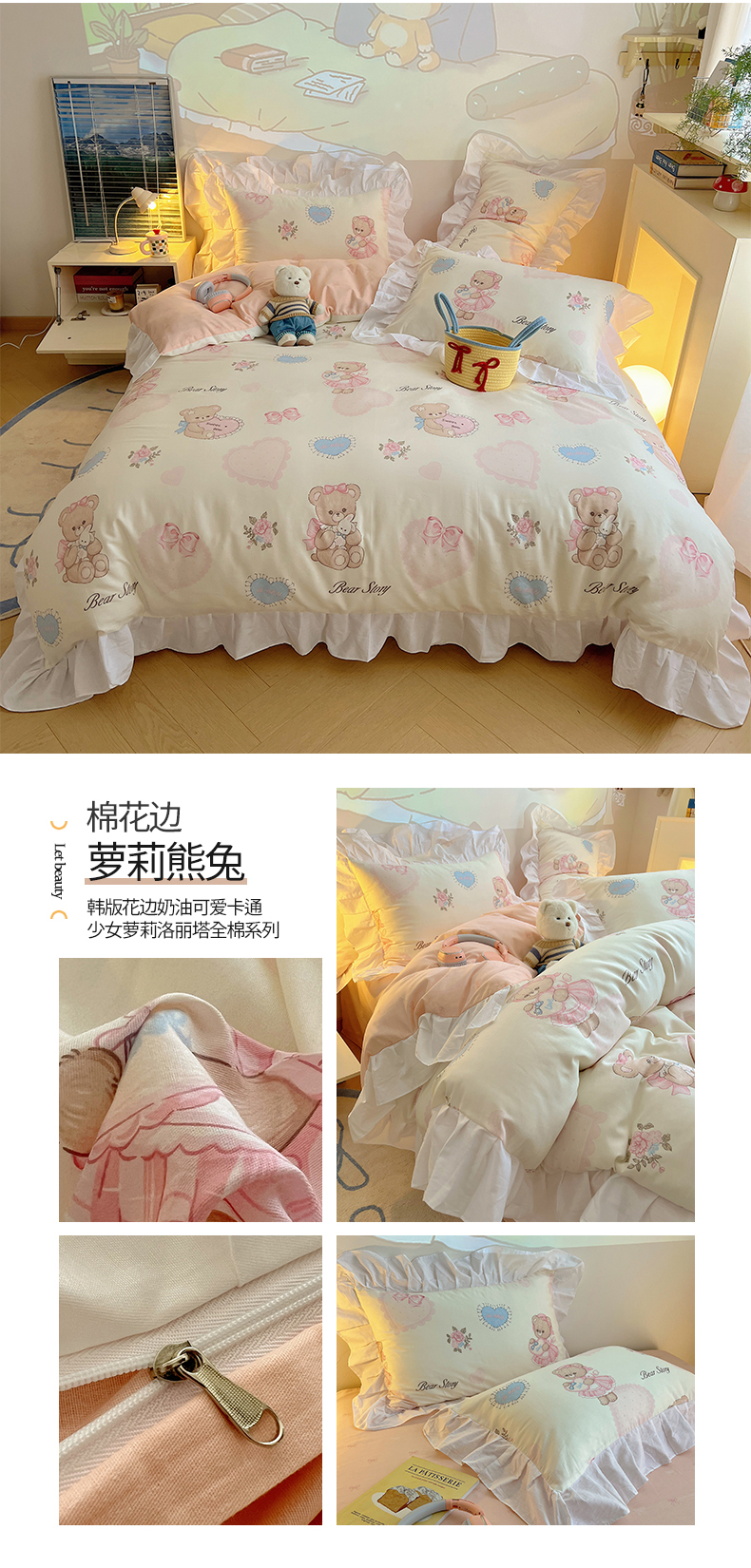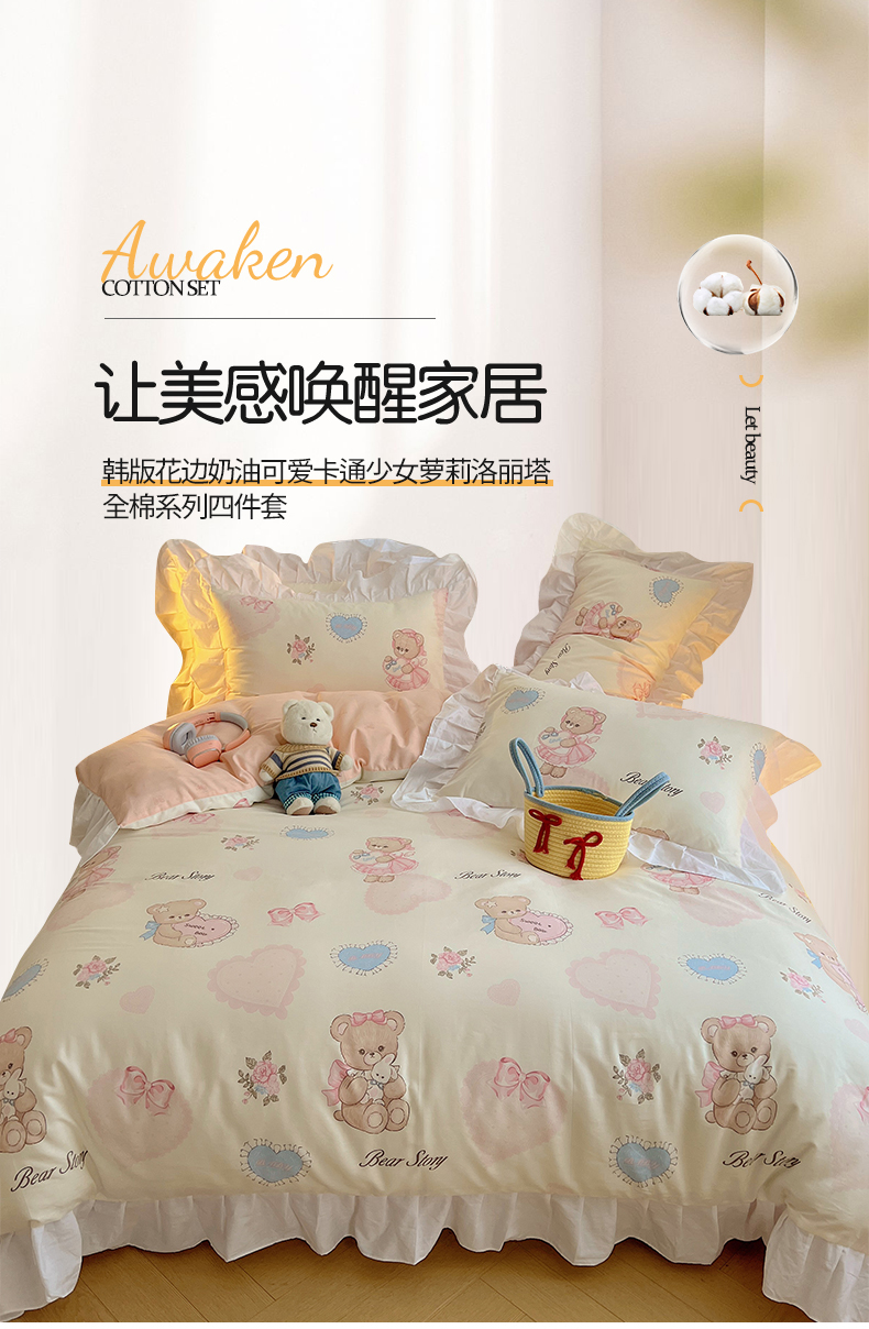 商品名称:2025纯棉韩版花边奶油可爱卡通少女萝莉洛丽塔系列全棉卡通四件套 棉花边-萝莉熊兔