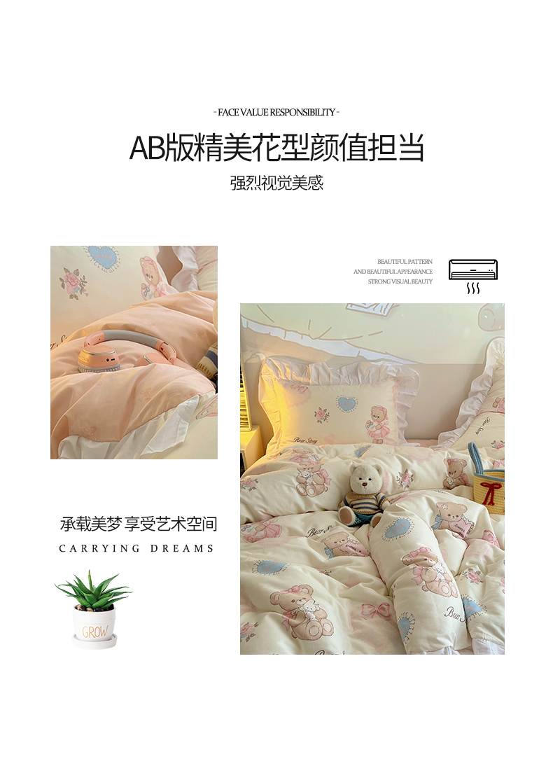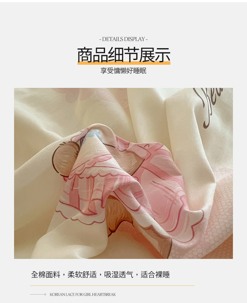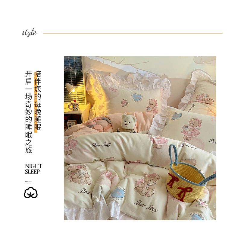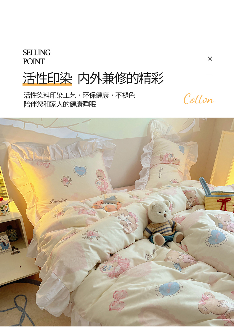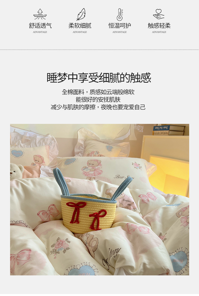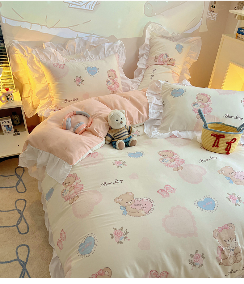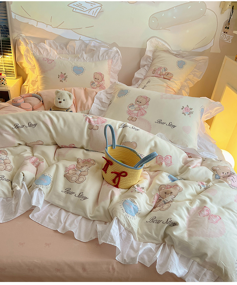 商品名称:2025纯棉韩版花边奶油可爱卡通少女萝莉洛丽塔系列全棉卡通四件套 棉花边-萝莉熊兔