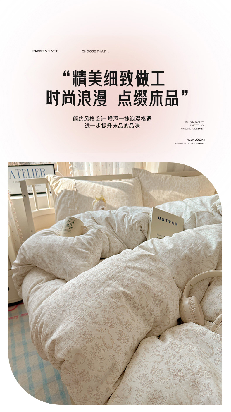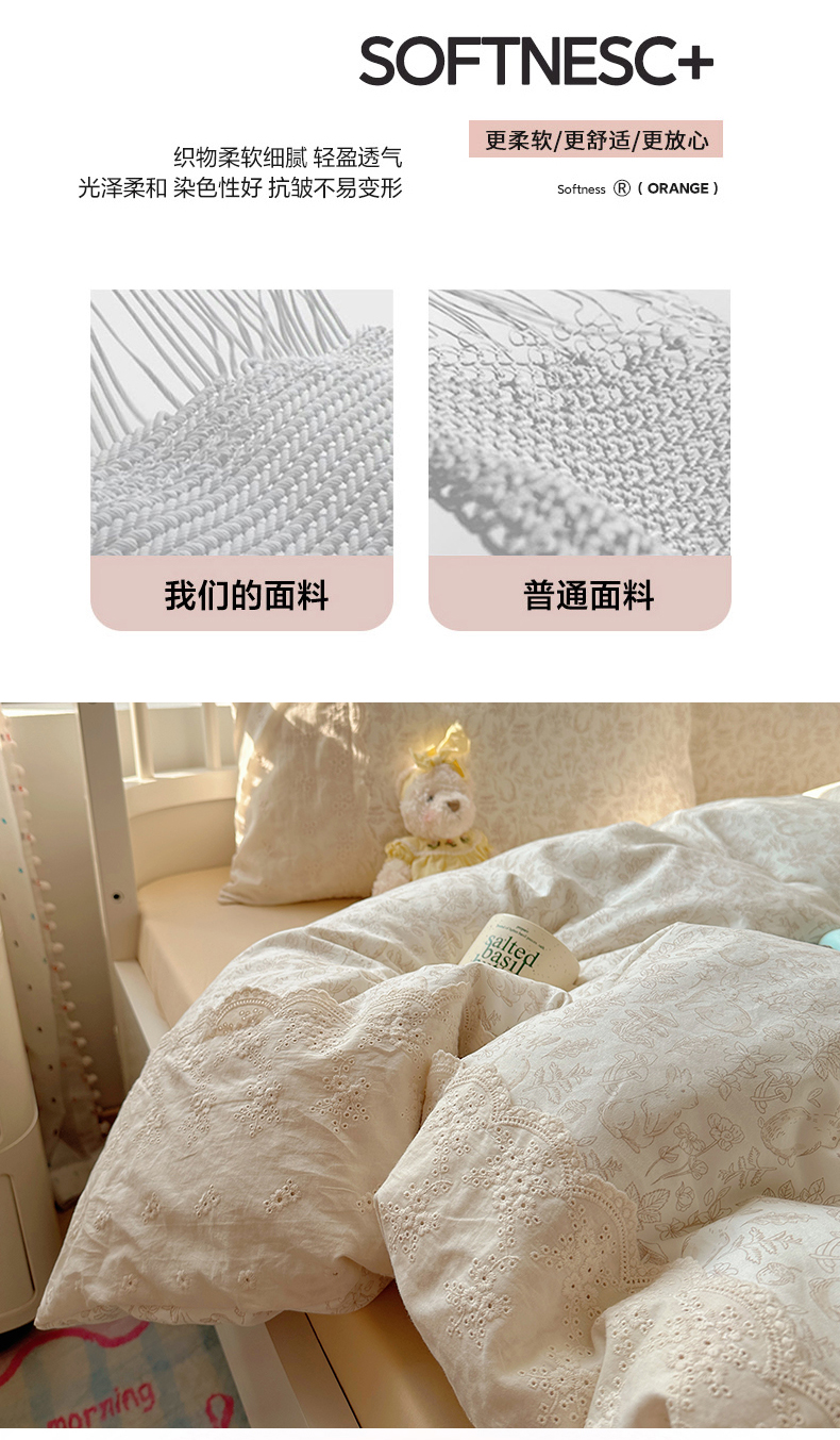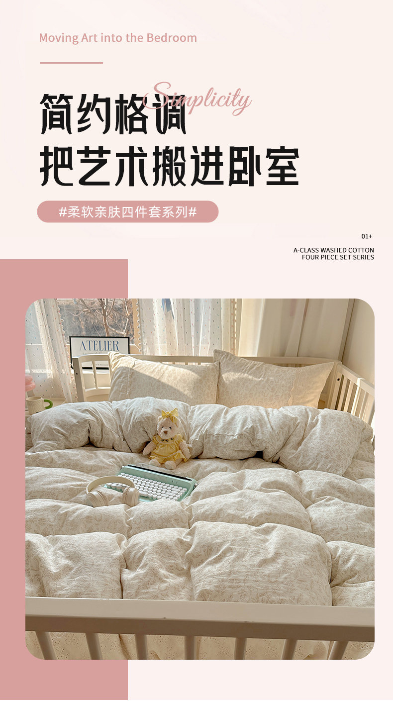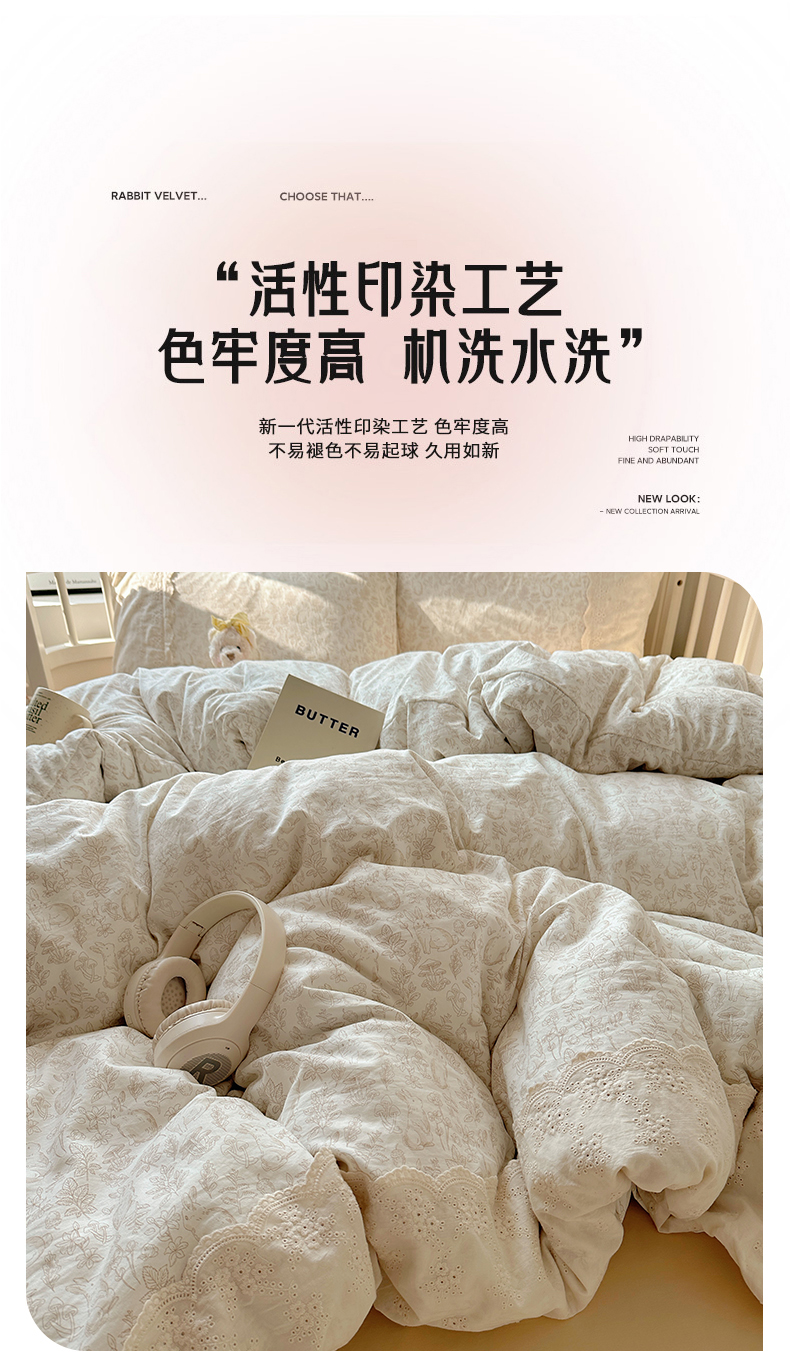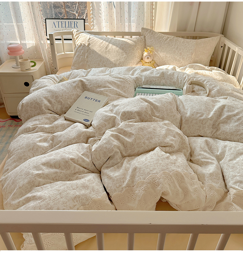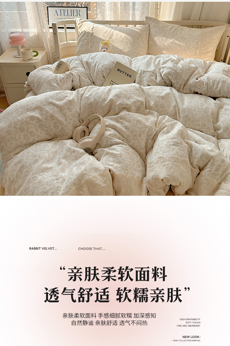 当前位置: 91家纺网 > 商品网购 > 床品套件 > 四件套 > 水洗棉四件套 > 盼季家纺 2025新款A类法式小清新皱皱纱花边蕾丝水洗棉床上四件套宿舍床笠三件套 蕾丝花边-兔兔密语