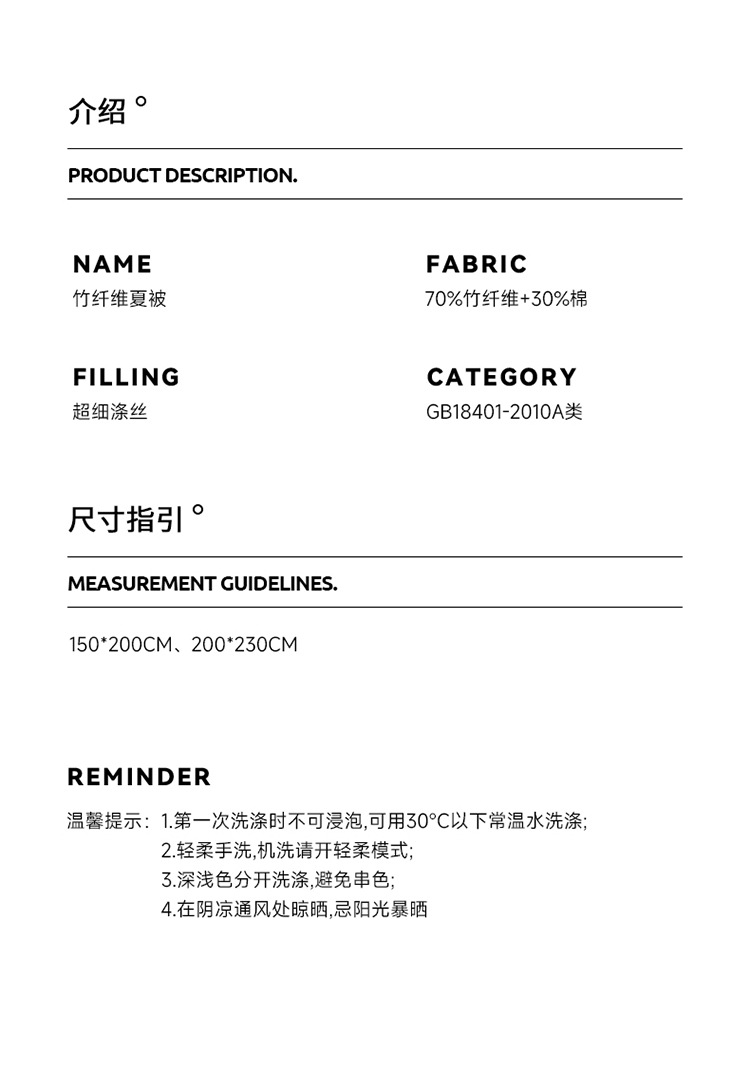 商品名称:(总)良品汇馆 日式无印A类竹纤维良品透气夏被纯色夏凉被空调被夏季薄被可机洗