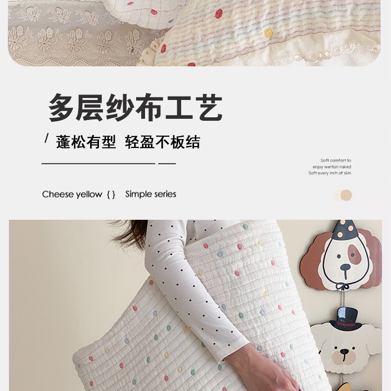 (总)麻依 2025新款安心棉枕巾四层全棉纱布枕头皮,布朗兔,彩虹点点,点点蝴蝶结-粉,点点蝴蝶结-米白,搞怪猫,韩系小樱桃,焦糖草莓,兰溪,漫语,木栖,天猫精灵,小波点,组合图