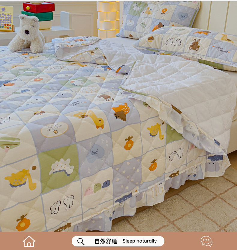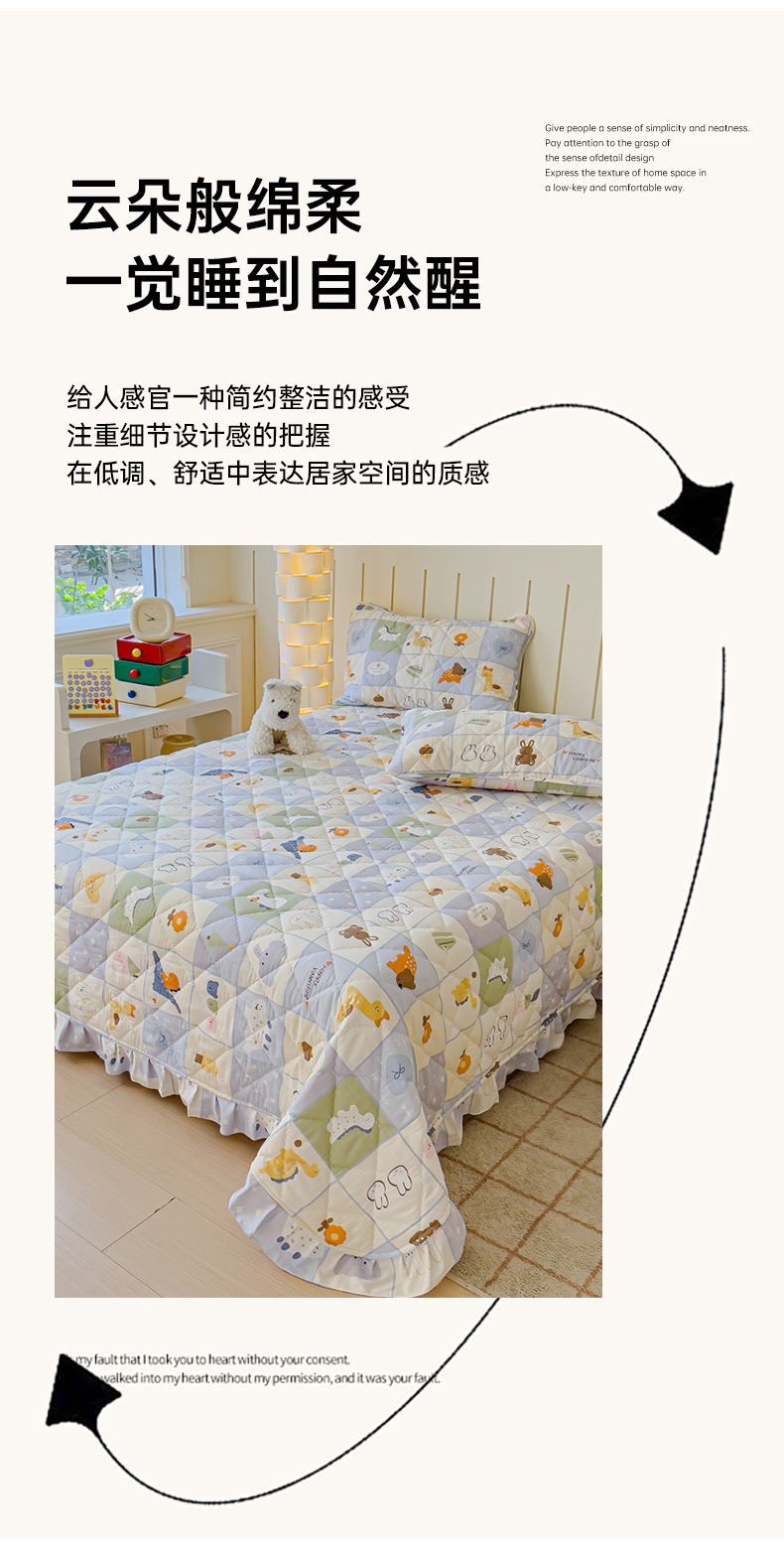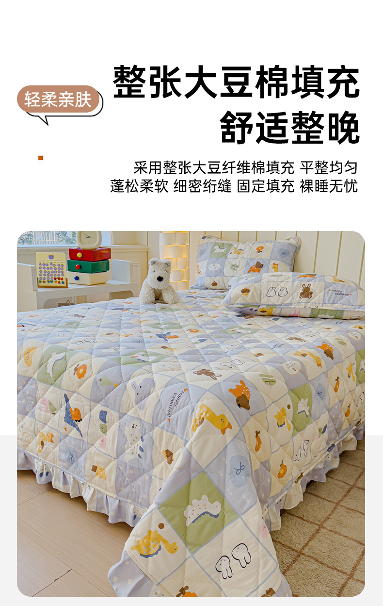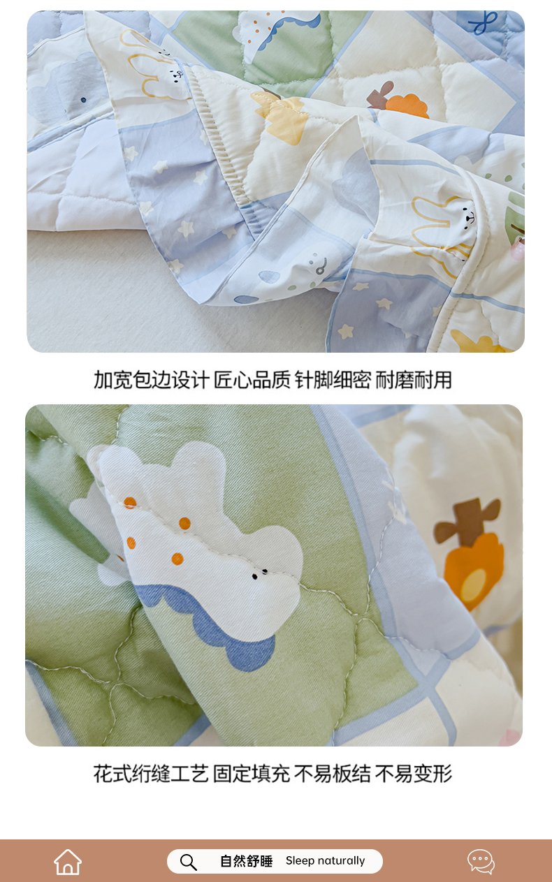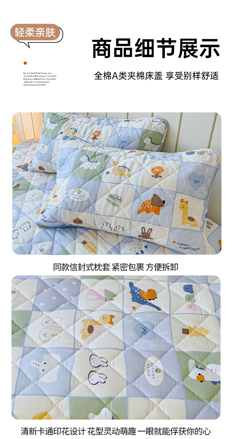 商品名称:U品汇 2025新品A类全棉夹棉床盖纯棉100%棉绗缝三件套炕垫褥子13372 G蜡笔画